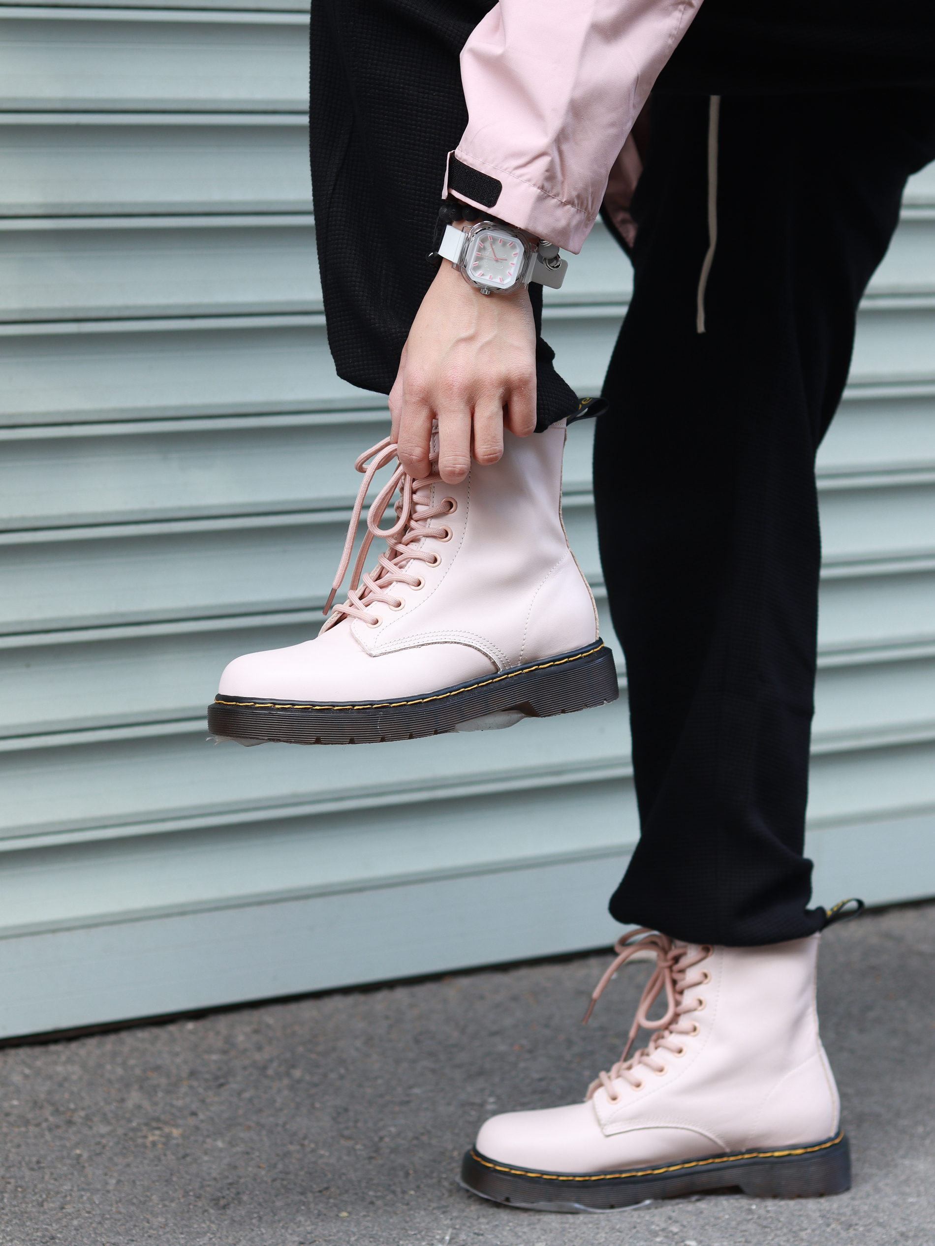 于是就更喜欢户外运动了! 哈喽大家好,这里是@章鱼小丸子嘟 👚: CAMEL骆驼 粉色冲锋衣 👖: CHINISM 华夫格长裤 👢: 波尔谛奇 粉色马丁靴 当一个不喜欢户外活动的的人学会了好看的户外穿搭,就更加喜欢户外运动了!冲锋衣跟马丁靴可以说是户外穿搭的标配,看腻了黑色马丁靴那就来看看粉色的。 一件粉色冲锋衣加上一双粉色马丁靴,这简直就是女孩子的户外穿搭标配!波尔谛奇家的鞋子做...