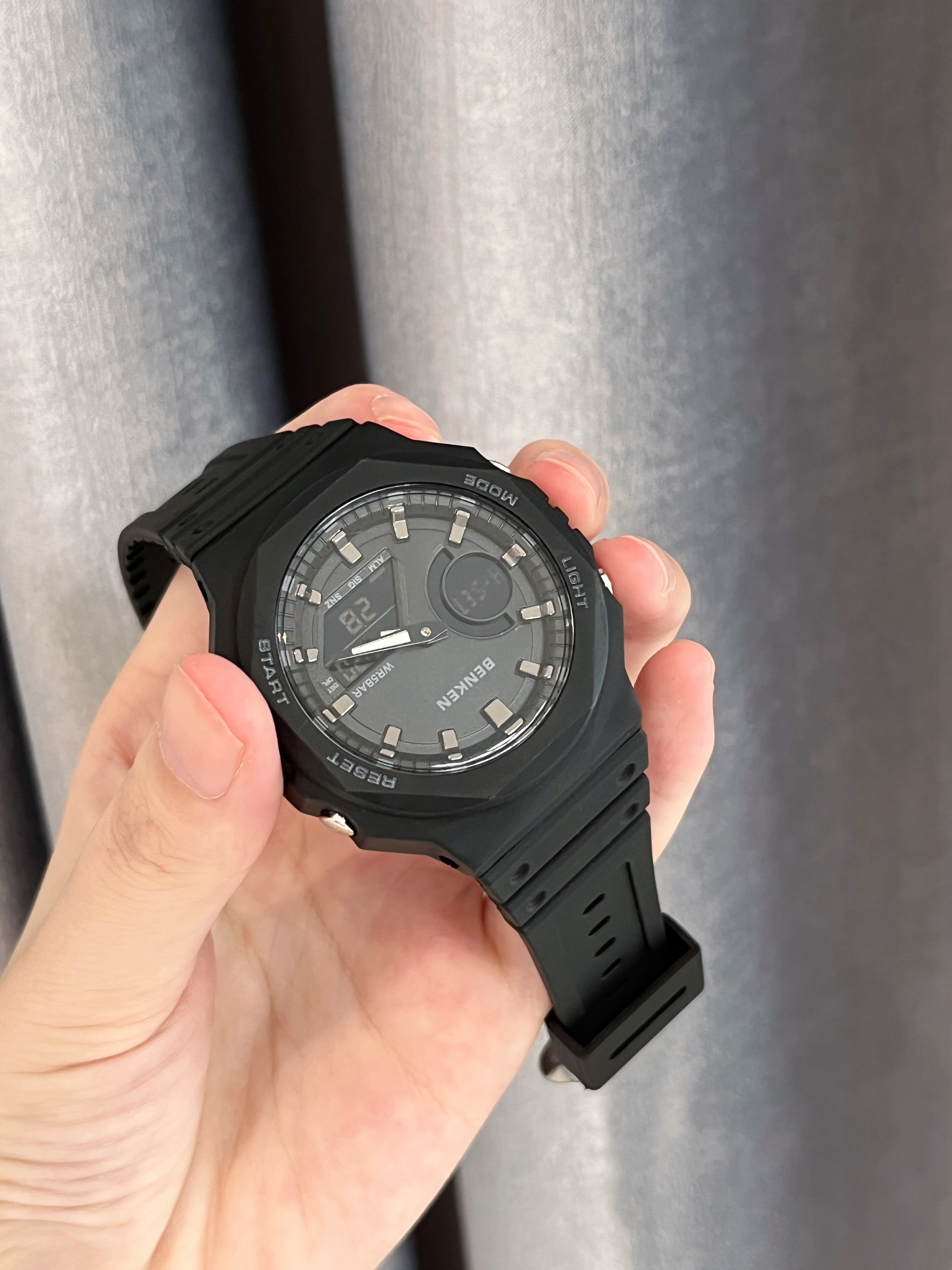 本篇笔记关联了BENKEN 电子夜光时尚多功能户外运动防水双显八角农家潮牌智能情侣石英男女同款腕表 全黑等商品,为用户提供真实的使用体验和购买参考。