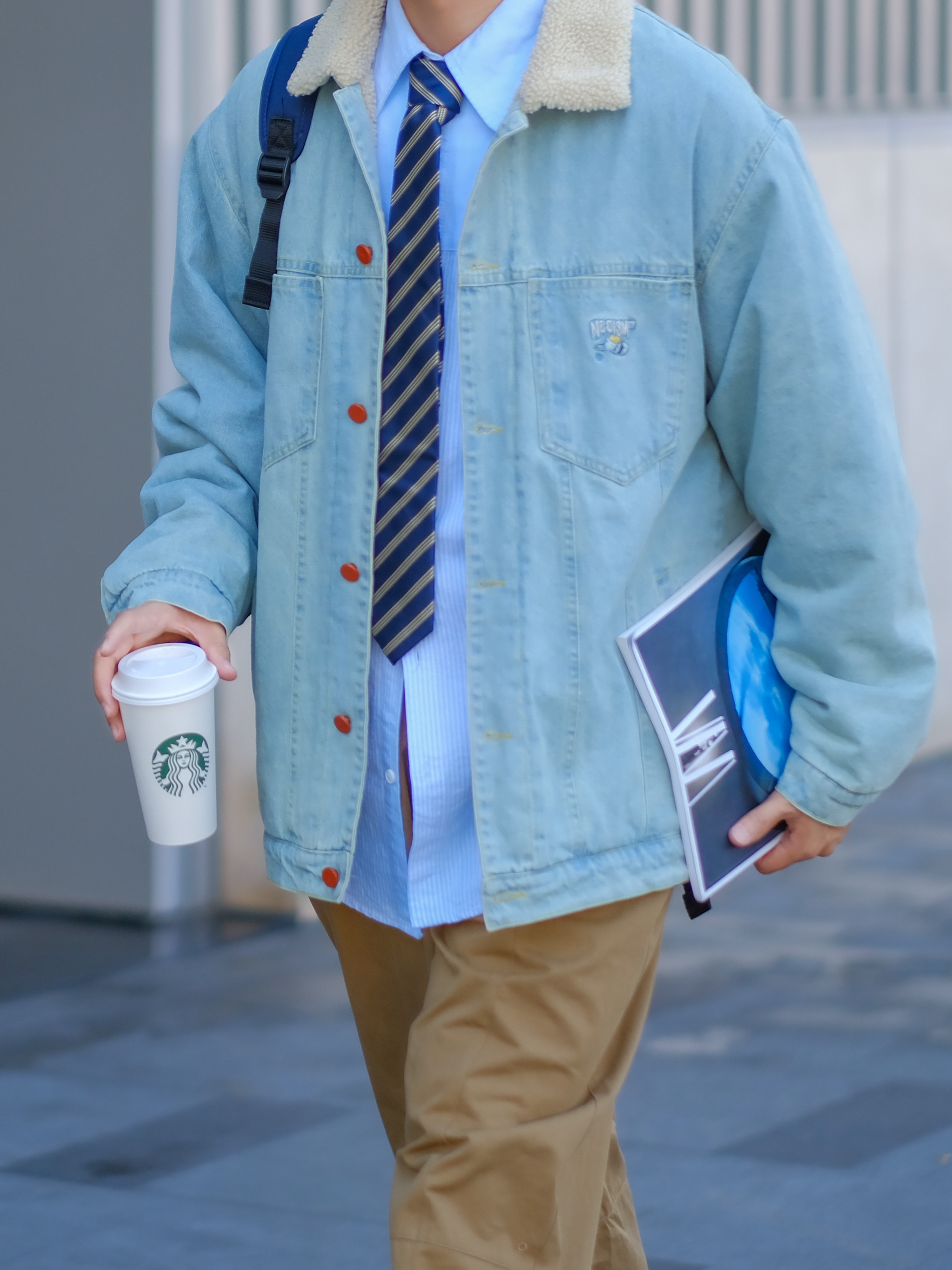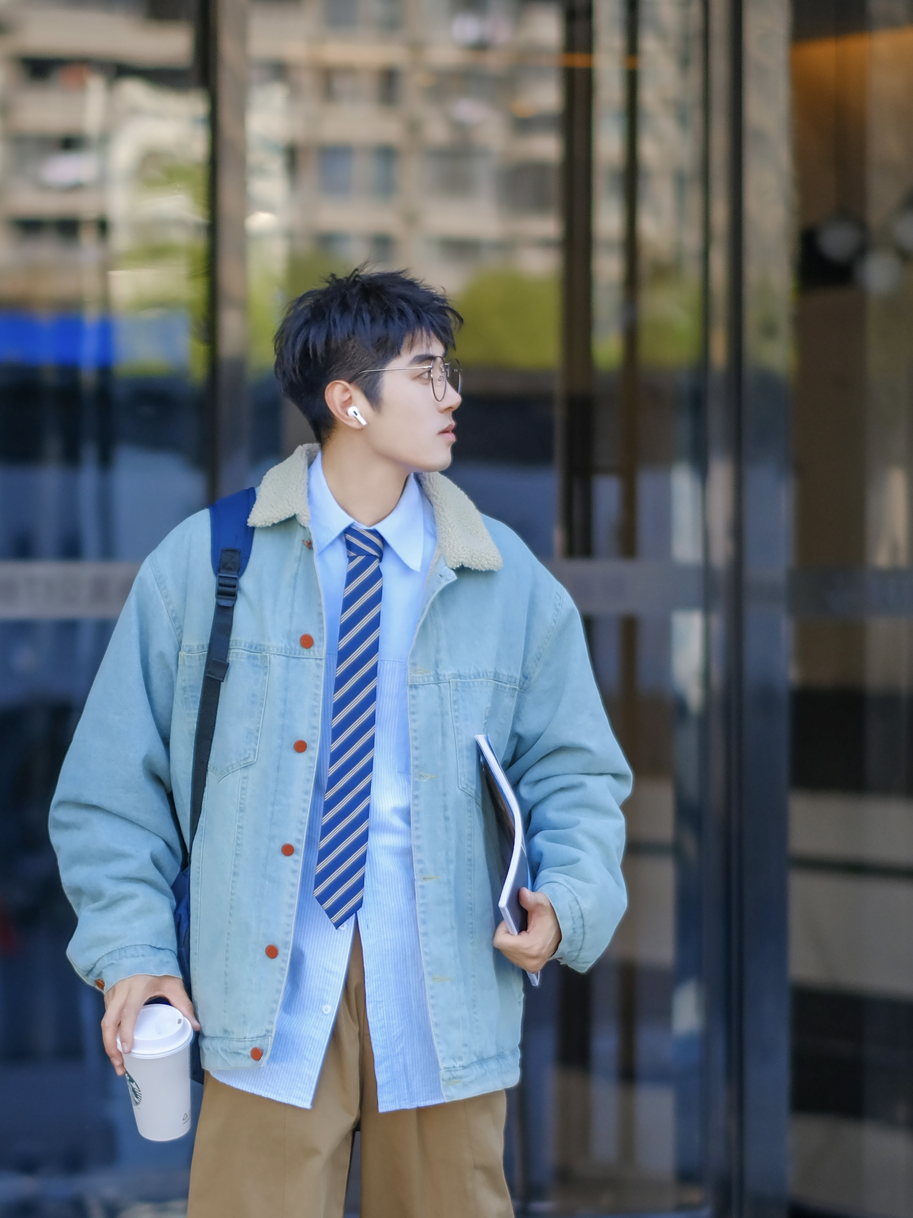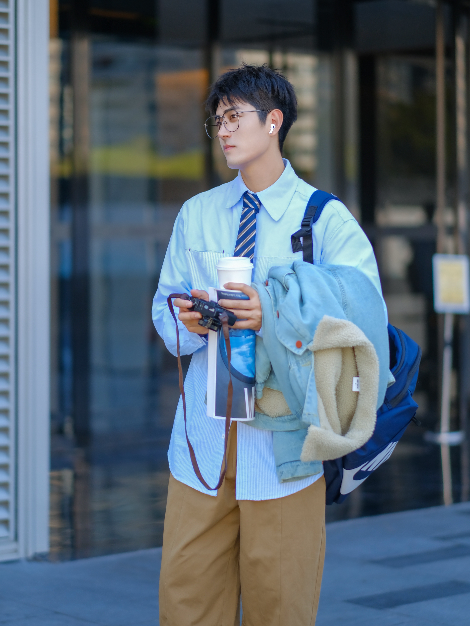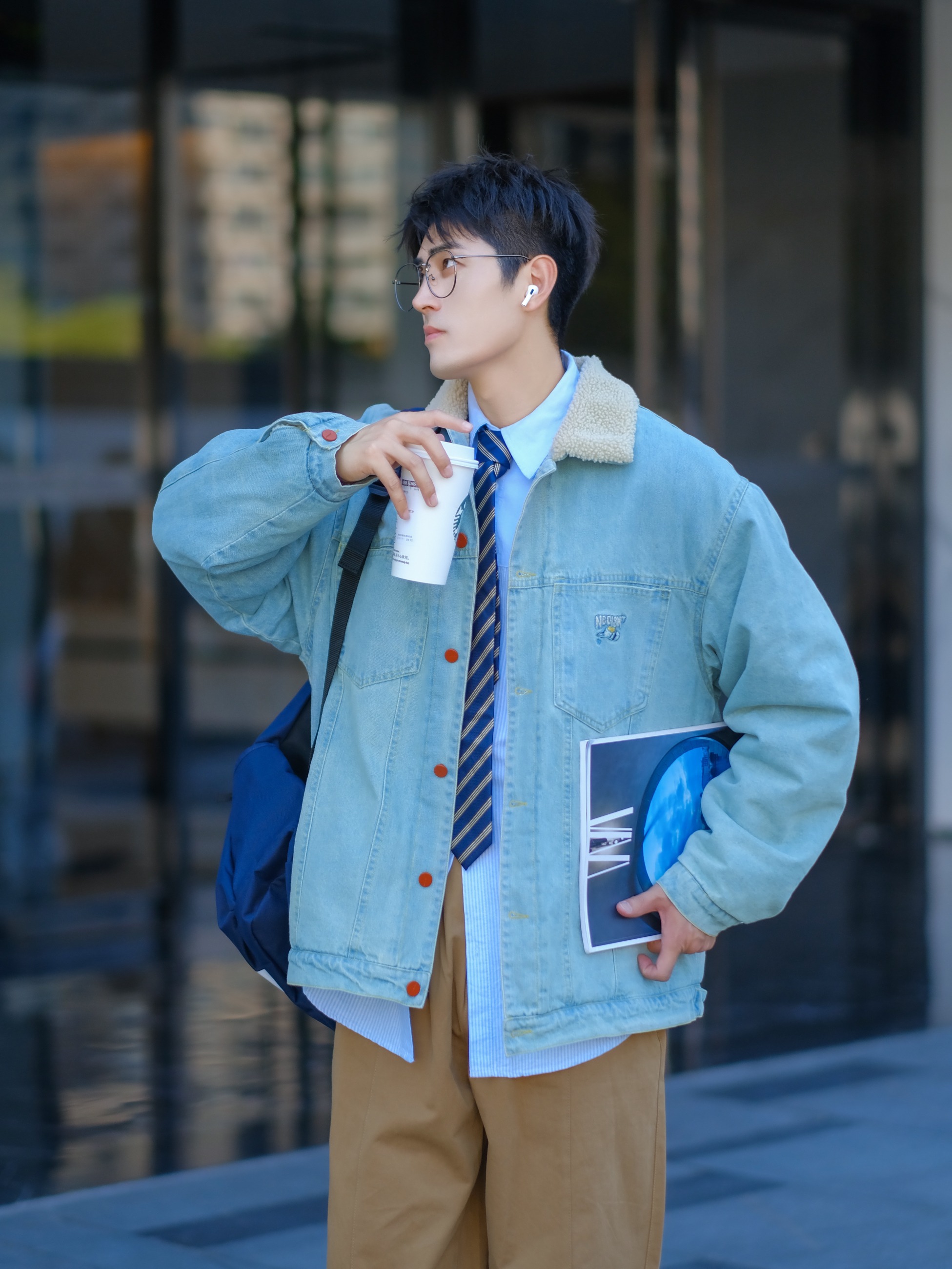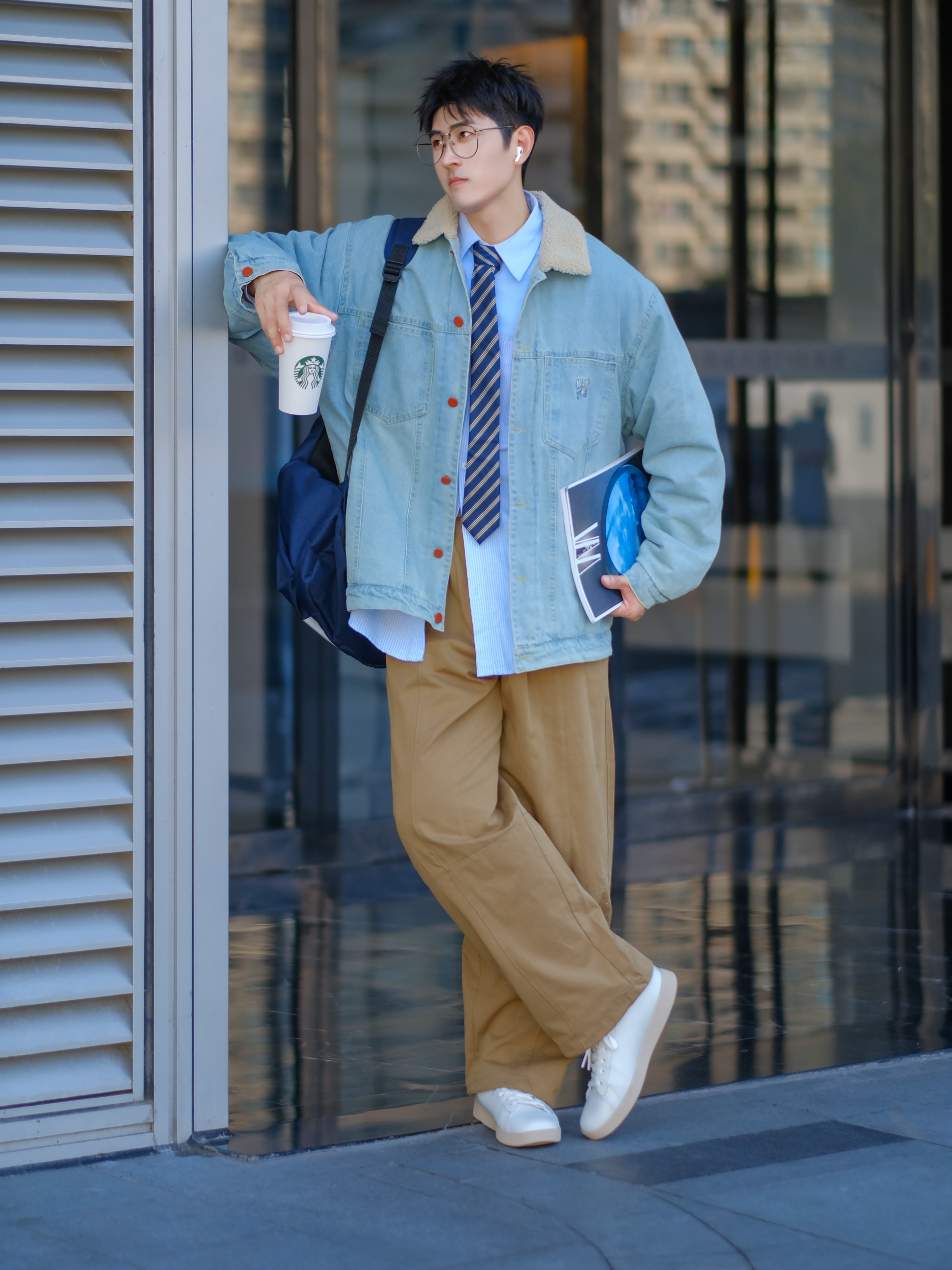 🔹周末快乐啊!😊✨……今天尝试一个新look!“New Vintage”新复古潮流穿搭!“新”衣服+“旧”工艺!真的太喜欢这种“水洗做旧”的牛仔外套了!主打的就是一个“复古学院风穿搭”!帅的帅的!真的帅的!🌀💤 — 🔹今日份秋冬色彩搭配:“蓝白卡”三色搭配!🔵⚪️🟠……深浅“蓝色系”单品叠穿,搭配一条卡其色工装直筒裤,穿上一双小白鞋,简简单单,就可以帅气出街过周末咯!周末快乐啊!😊✨…… — 🎒:...