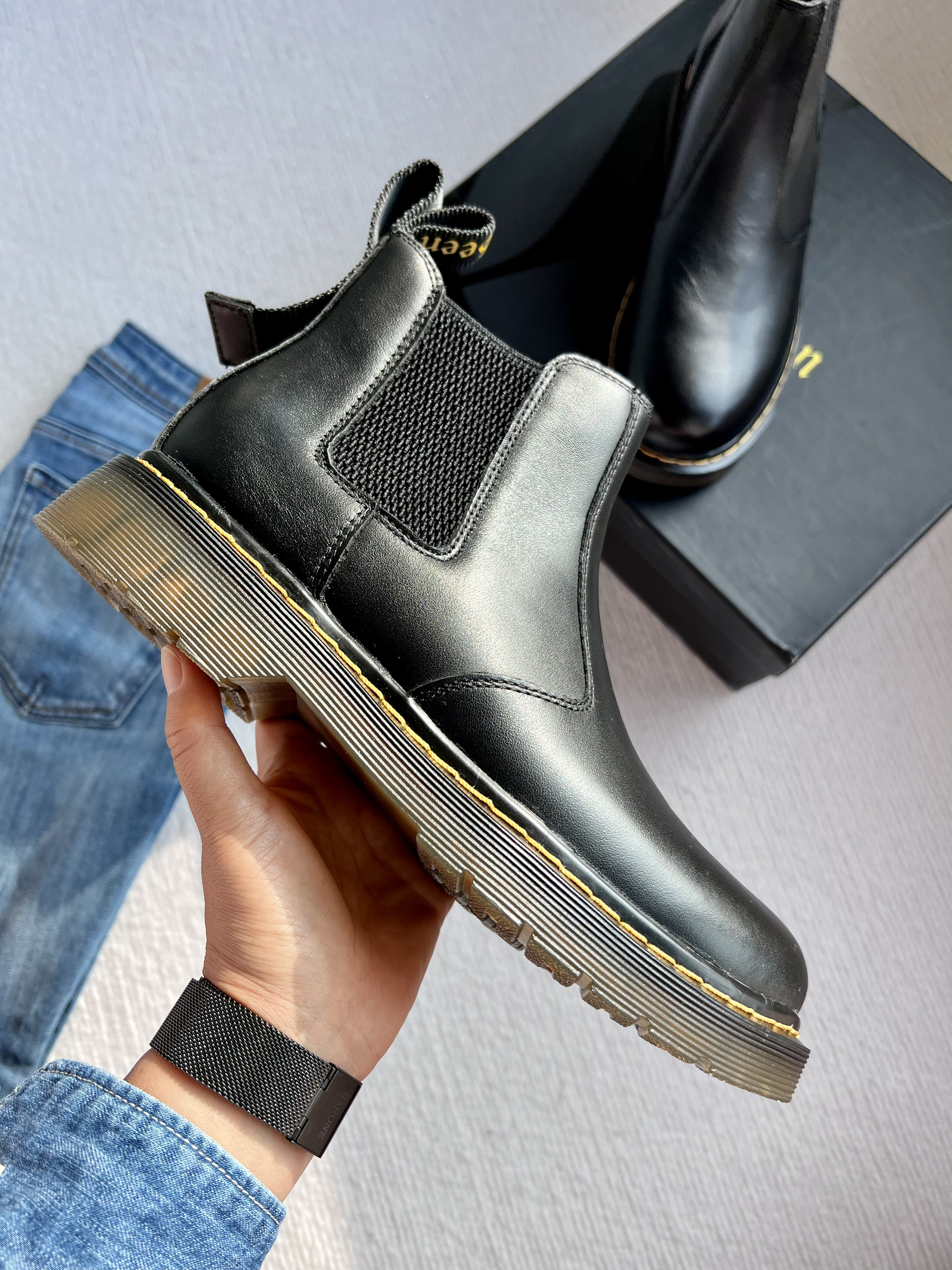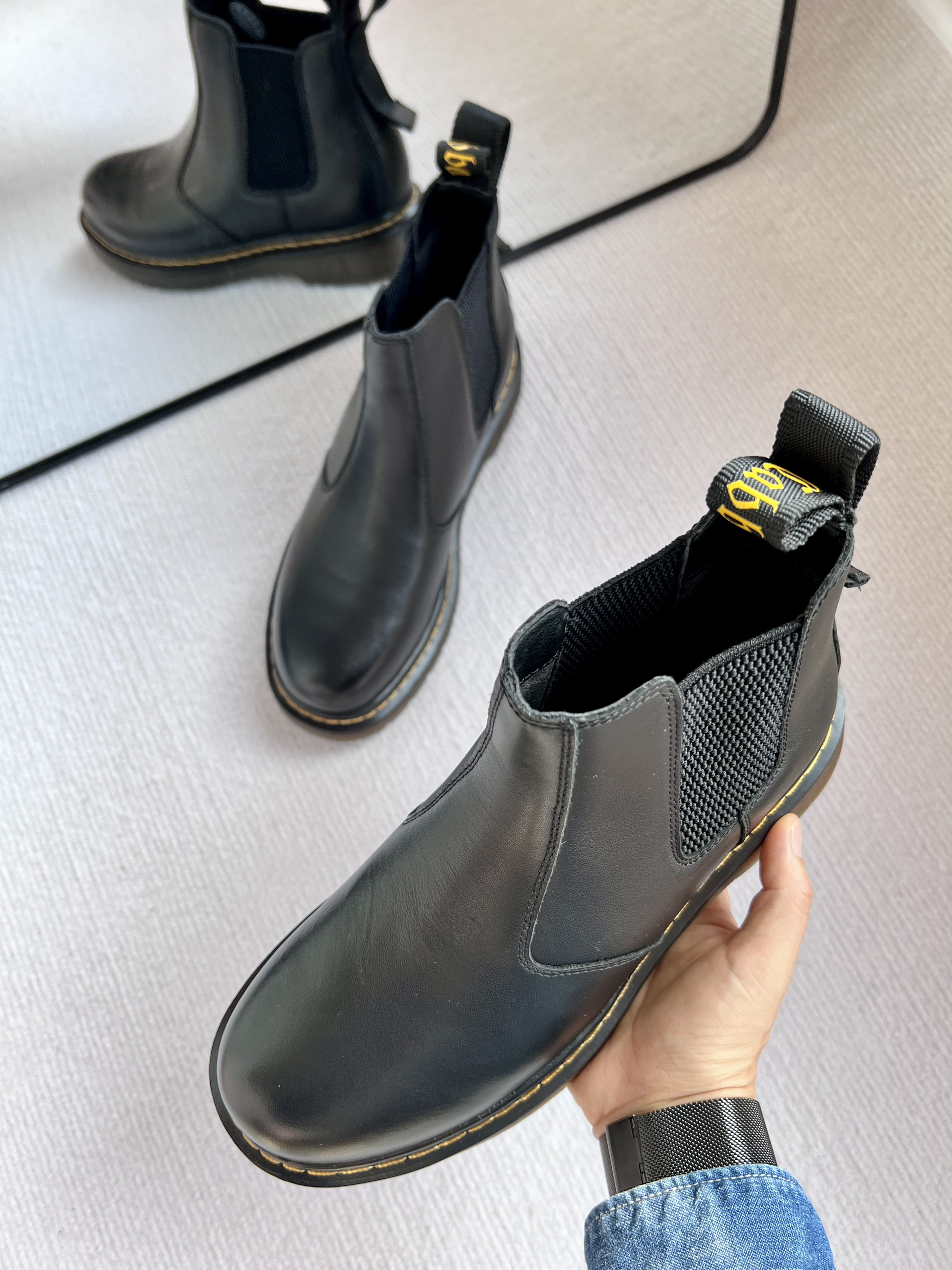 🍀今天开箱一双 卡宾 黑色中筒切尔西靴,虽然是男款,鞋码38-44,只要鞋码合适,女生也可以穿哦👫 🍀设计亮点: 优质头层牛皮,不仅彰显品质,还是防水材质,遇水自然滑落,好打理; 半透明的落日黄PVC大底,凹槽纹理设计,具有稳定抓地力; 后跟双鞋提设计,穿脱方便,同时也使这双简约帅气的靴子多了几分灵动🪇 🍀鞋码建议: 此款是标准皮鞋码,按照自己平时穿的皮鞋尺码选择即可; 需要注意的...