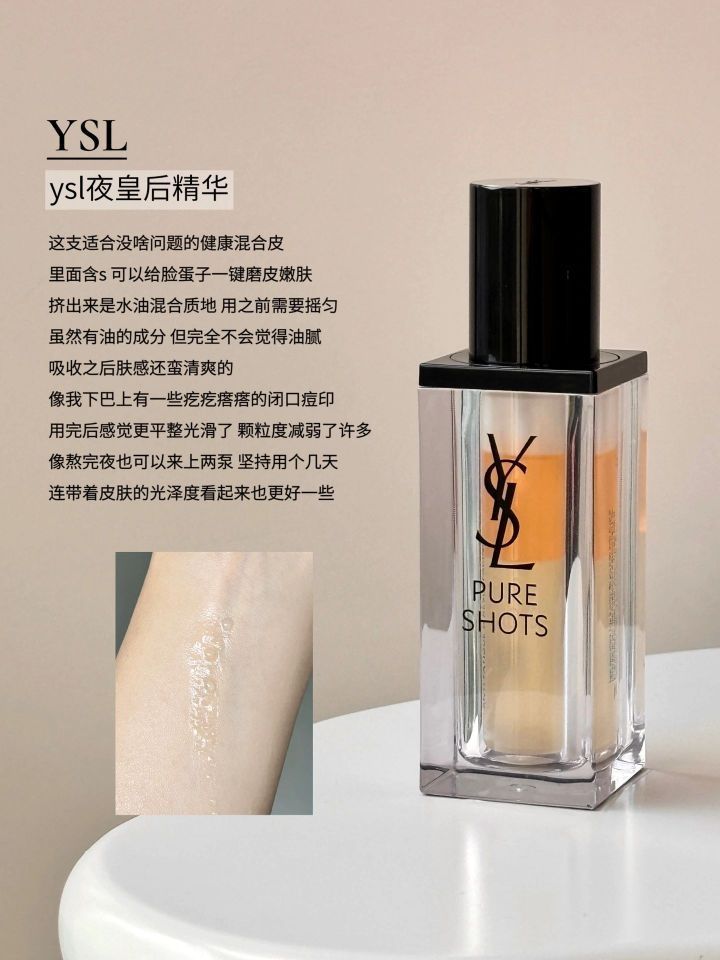 按照惯例先交代肤质! 混合皮冬混干夏混油T区平时爱出油 两颊微敏 对于精华的选择我更注重的是使用感+效果 在护肤这条路上认准自己的需求才能不走弯路 最终找到适合自己的产品! 希望能给姐妹们提供一些护肤思路~理性种草 稀物集小墨芯精华(抗老紧致)赫莲娜绿宝瓶精华(维稳修护)Ysl夜皇后精华(细腻嫩肤) 兰蔻小黑瓶精华(维稳保湿) 娇韵诗双萃精华(去黄提亮)