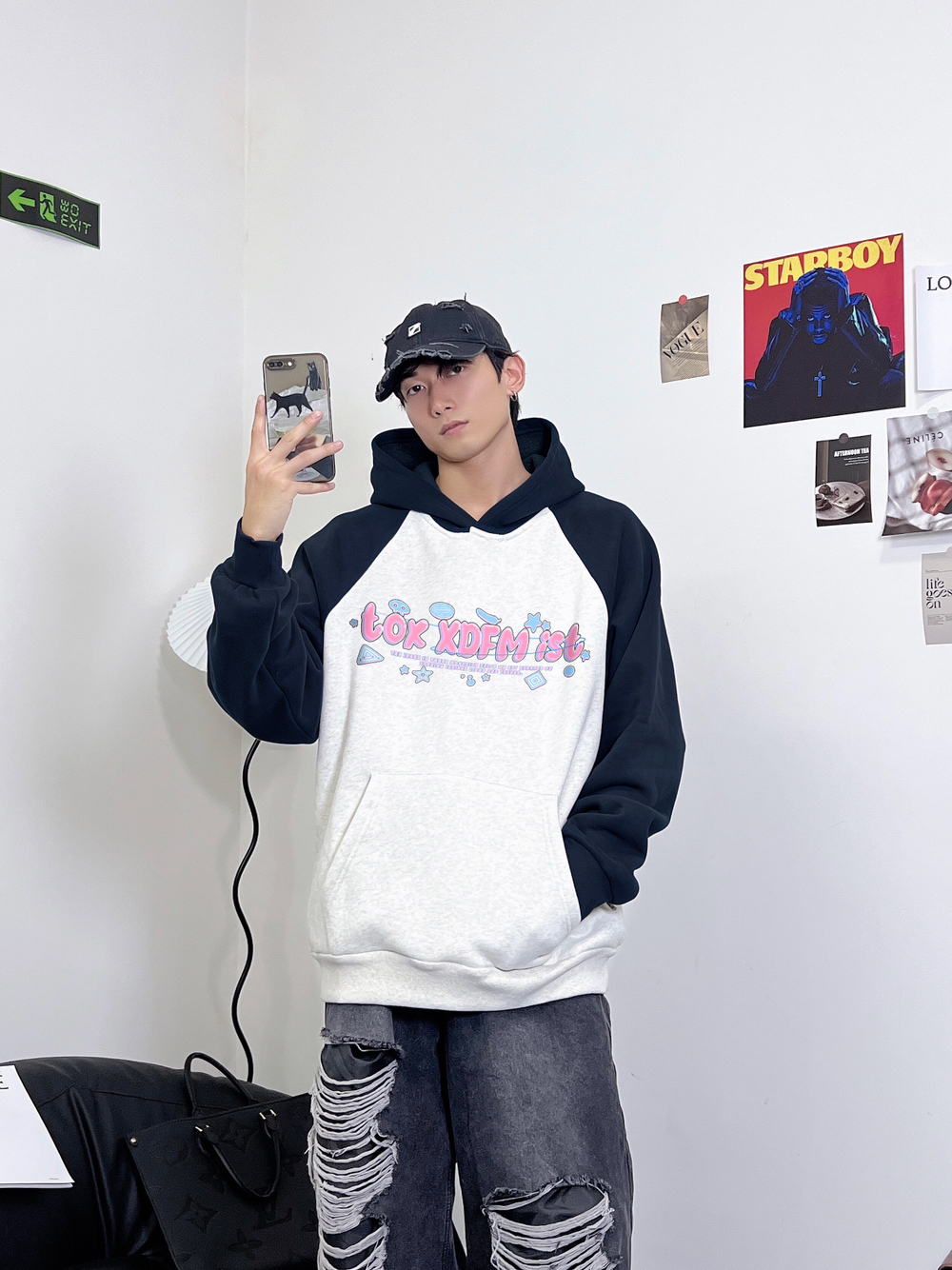 卡通简约的印花设计真的很耐看! 宽松版型插肩袖设计超显瘦 藏青白灰拼色也是妥妥百搭休闲 抗起球的棉质面料 软糯亲肤!越摸越喜欢 男女同款 做情侣装也很🉑 性价比嘎嘎高 XDFM
