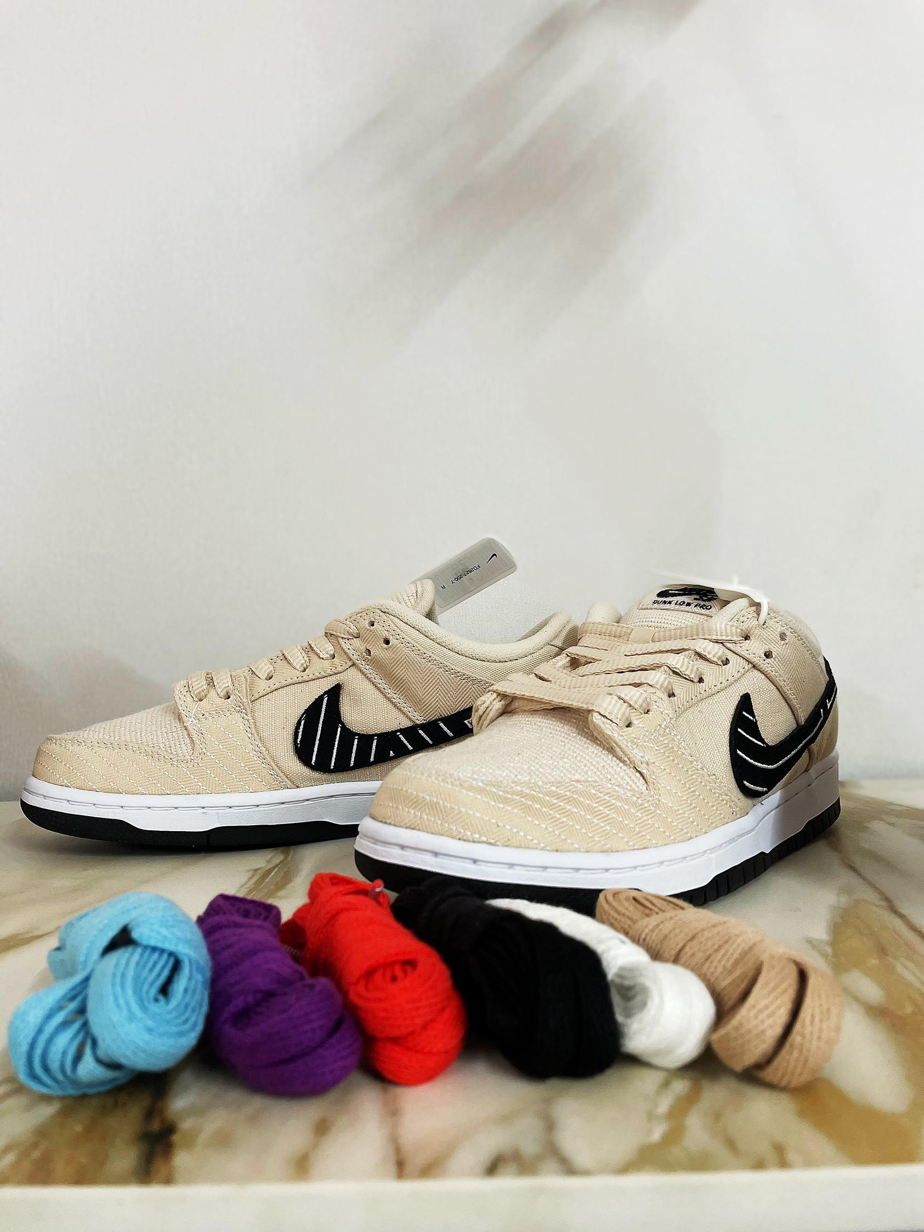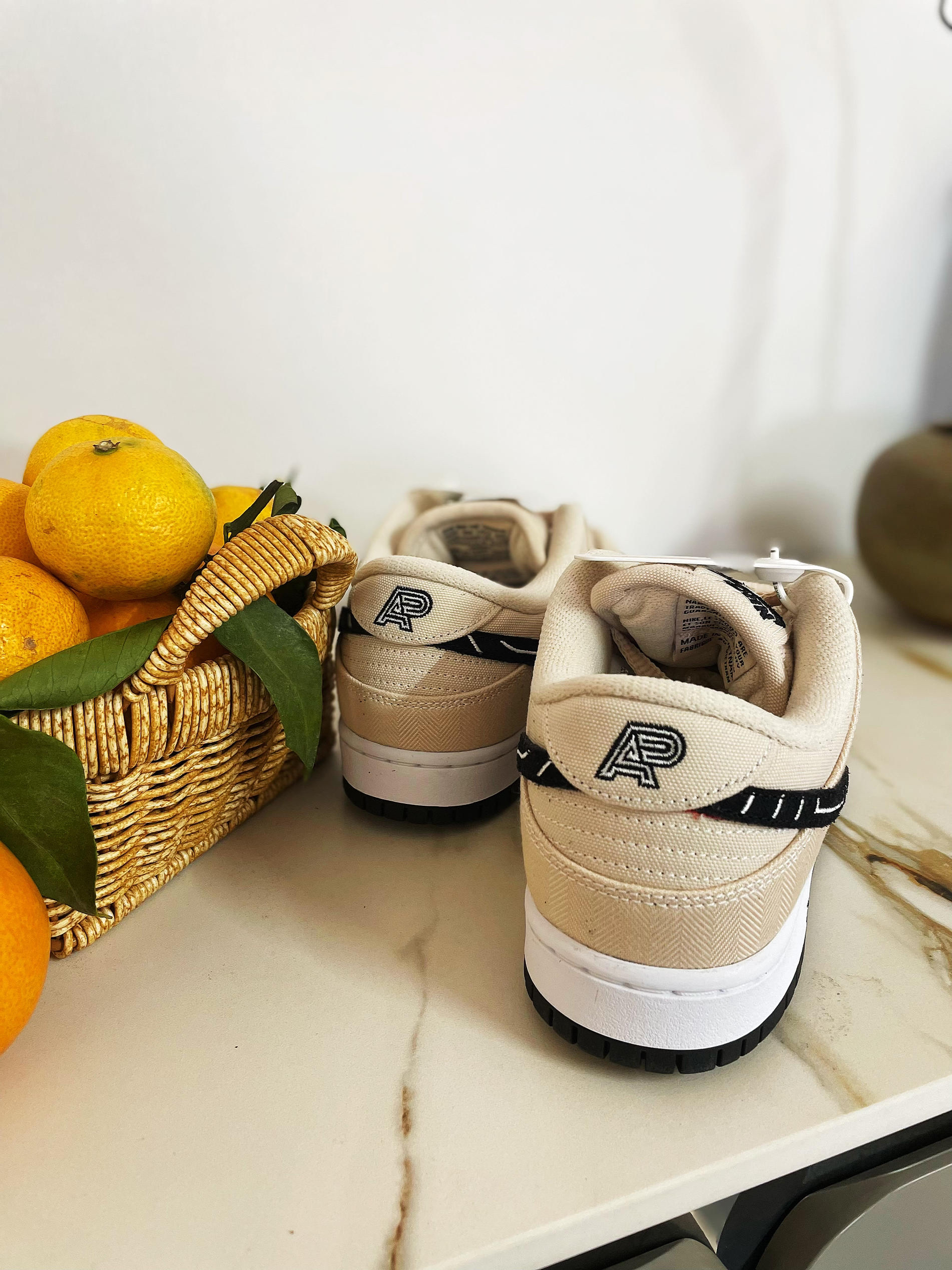 Dunk联名款层出不穷,调色板属性太强,让人多少有些审美疲劳。但是,这款联名SB,自穿,还是非常给力的。 💖鞋面材质为针织物,白色走线,这点有些对不起这个价位。橡胶外底。米黄色的主色,颜值还是不错的。 💞一款在原价位徘徊的SB款,性能还是相较于普款更高的,颜值也在线,自穿还是非常合适的。干净的配色,百搭的款式,上脚效果还是非常棒的。需要注意,勤打理,减少在雨雪天气时穿搭