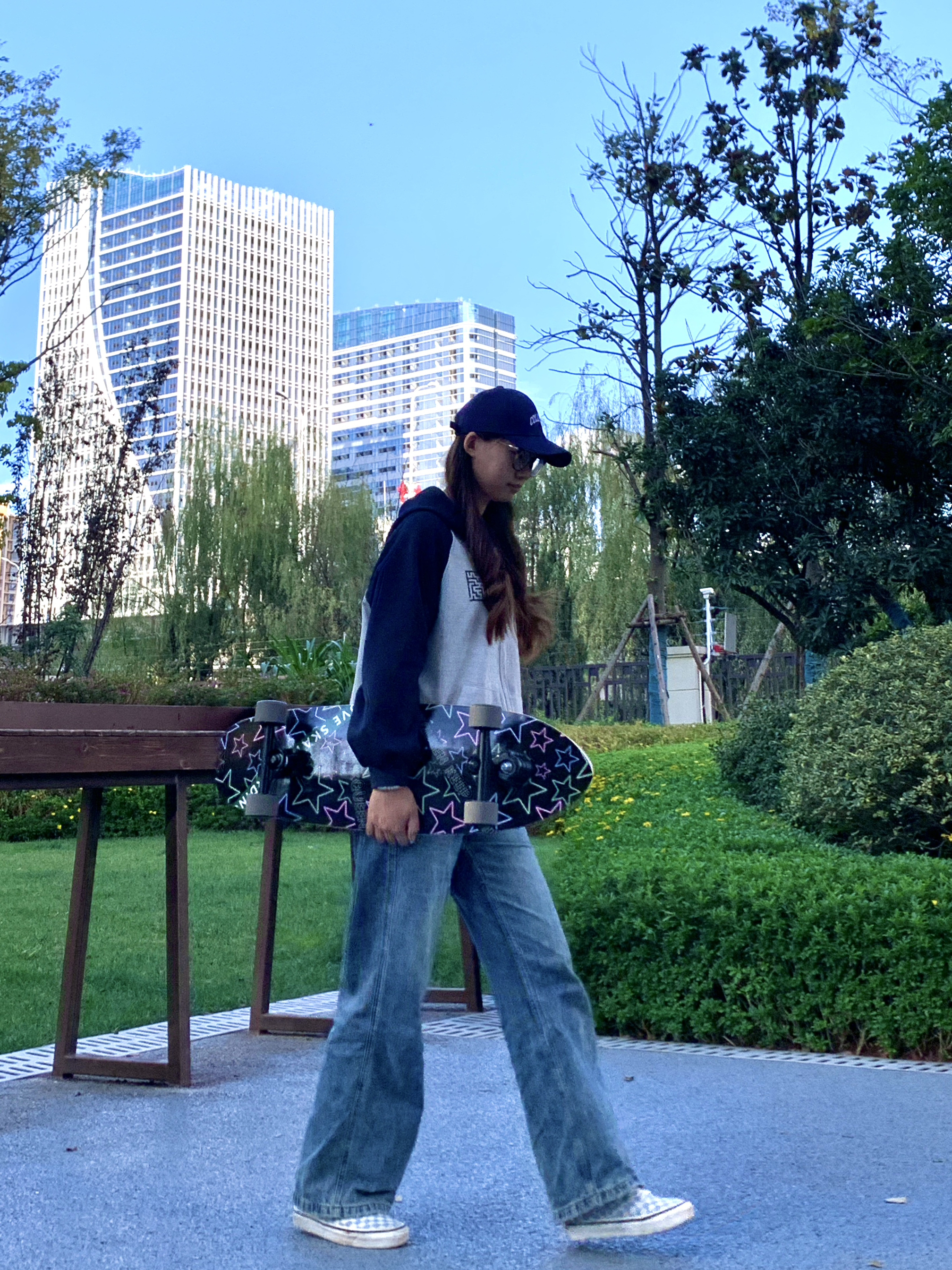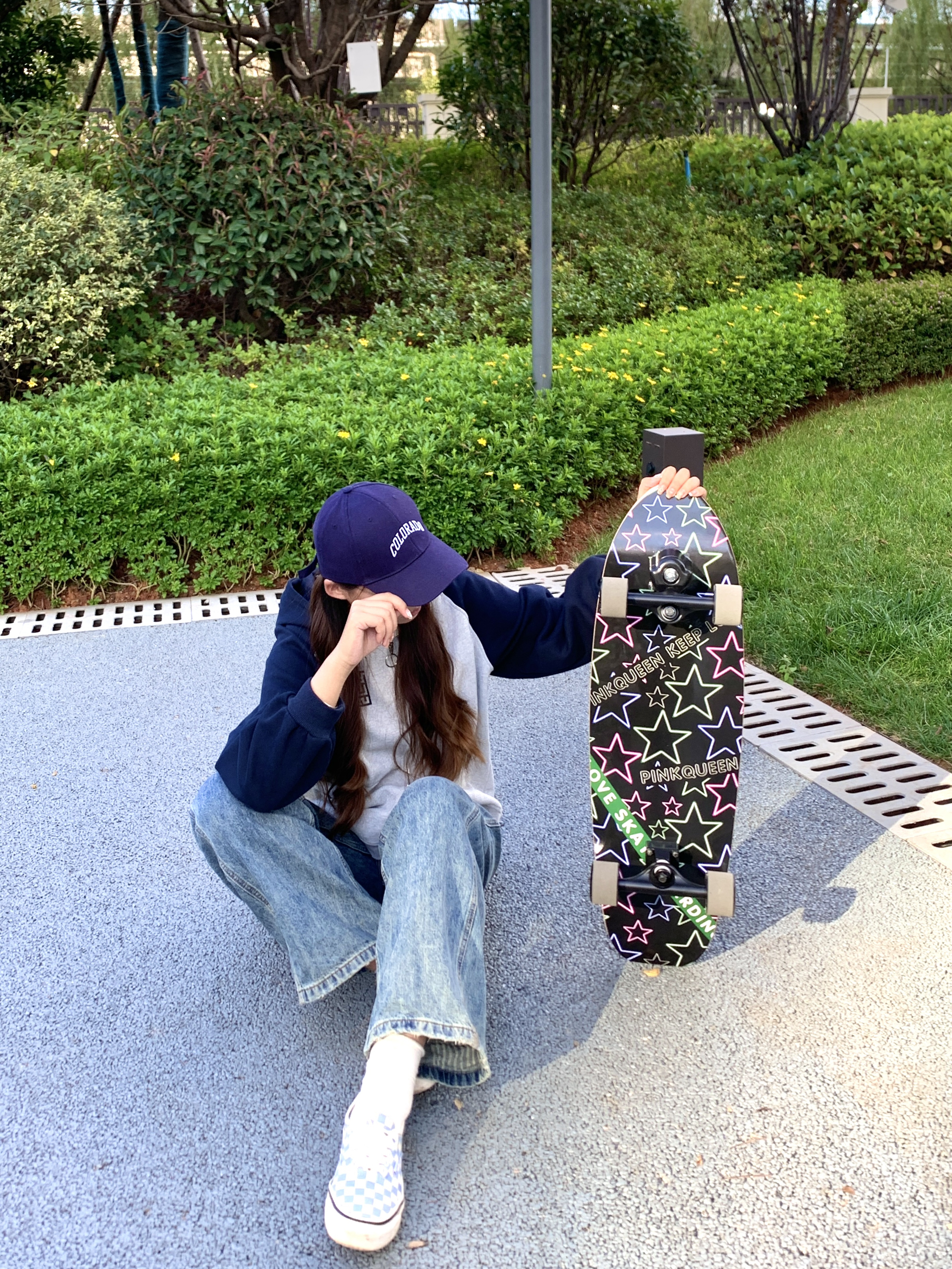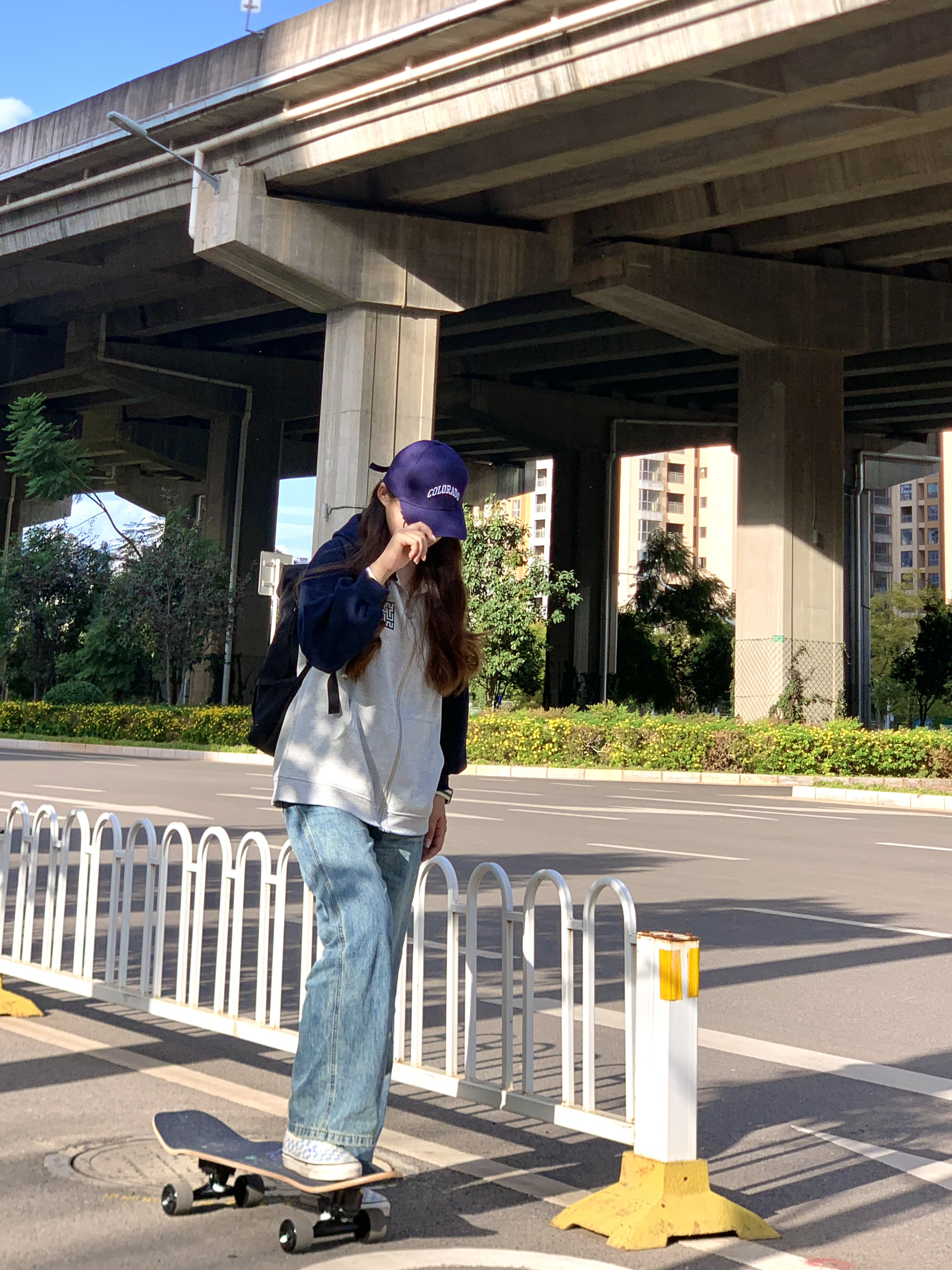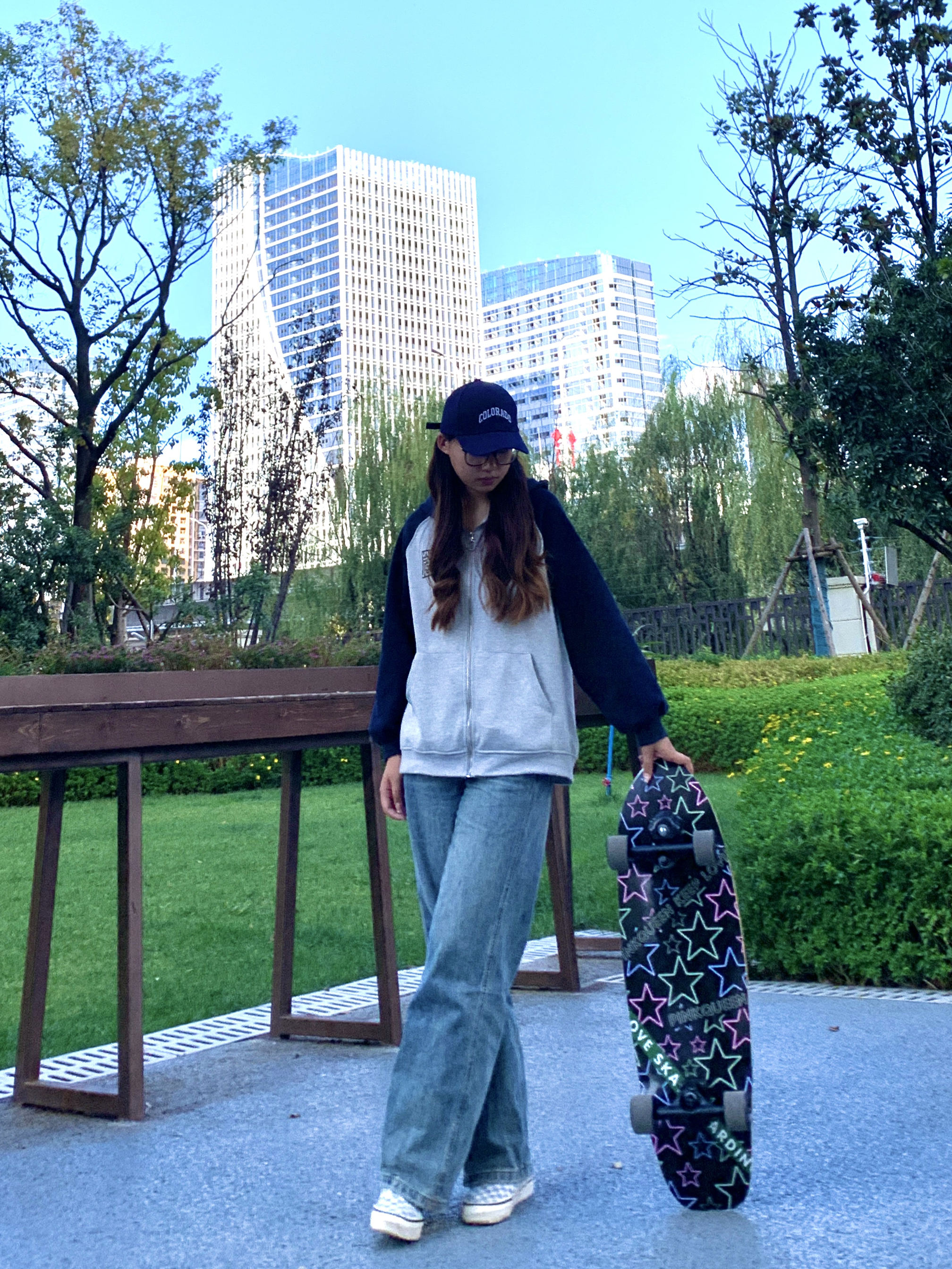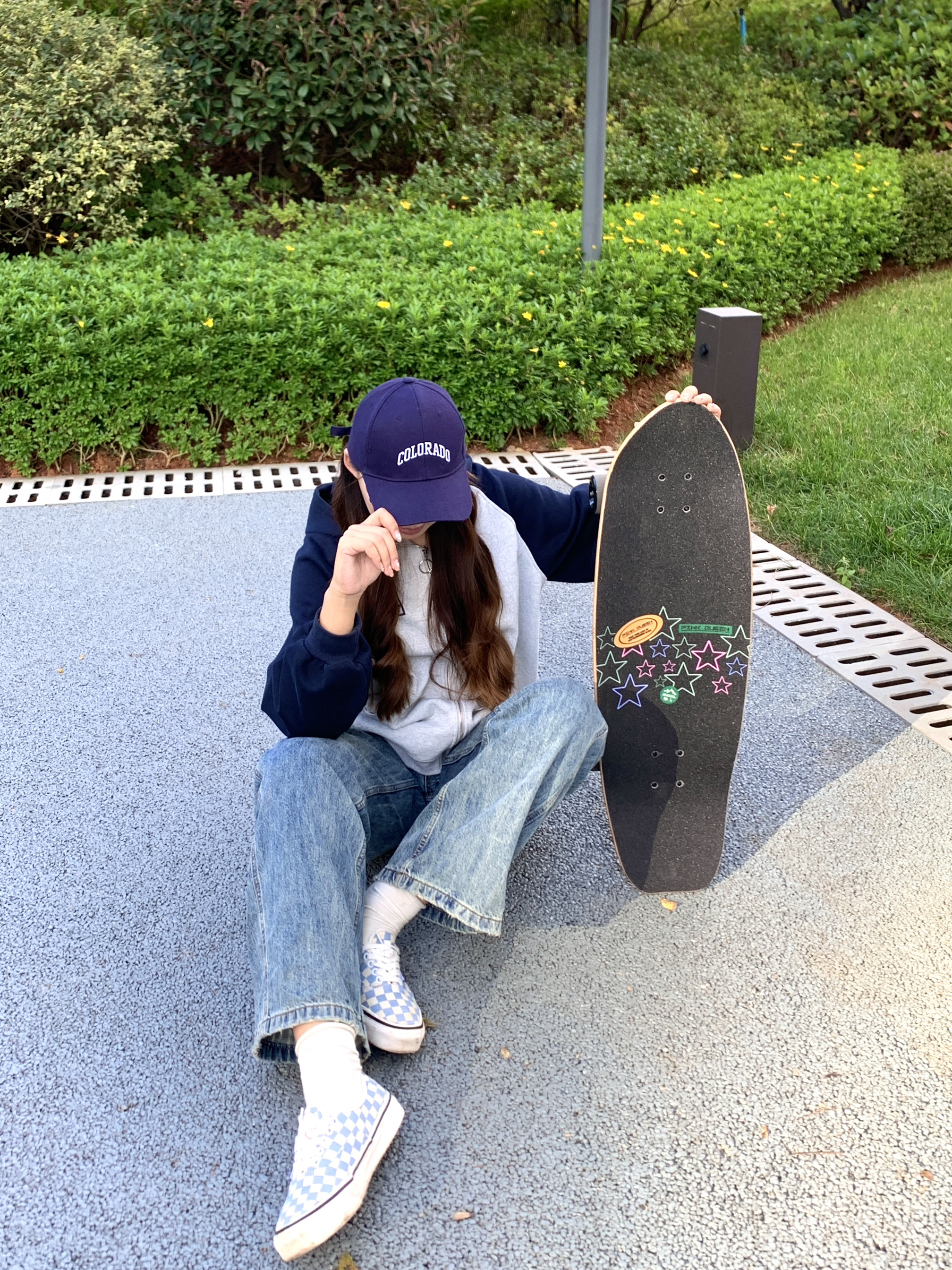 身高|体重:173/55 🧍♂️ 穿搭风格:运动风 👔 上衣:灰蓝插肩袖卫衣 👖 下装:拖地牛仔裤 👟 鞋子:vans棋盘格 🎒配饰:藏青色帽子&陆地冲浪板 玩滑板的时候穿的舒适最重要啦🥰 一身休闲的同时也不缺乏美感 开心做个🆒girl啦😎