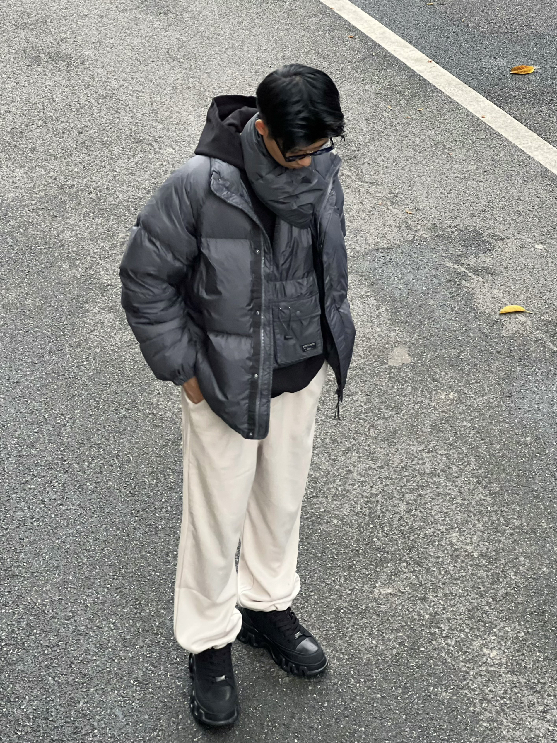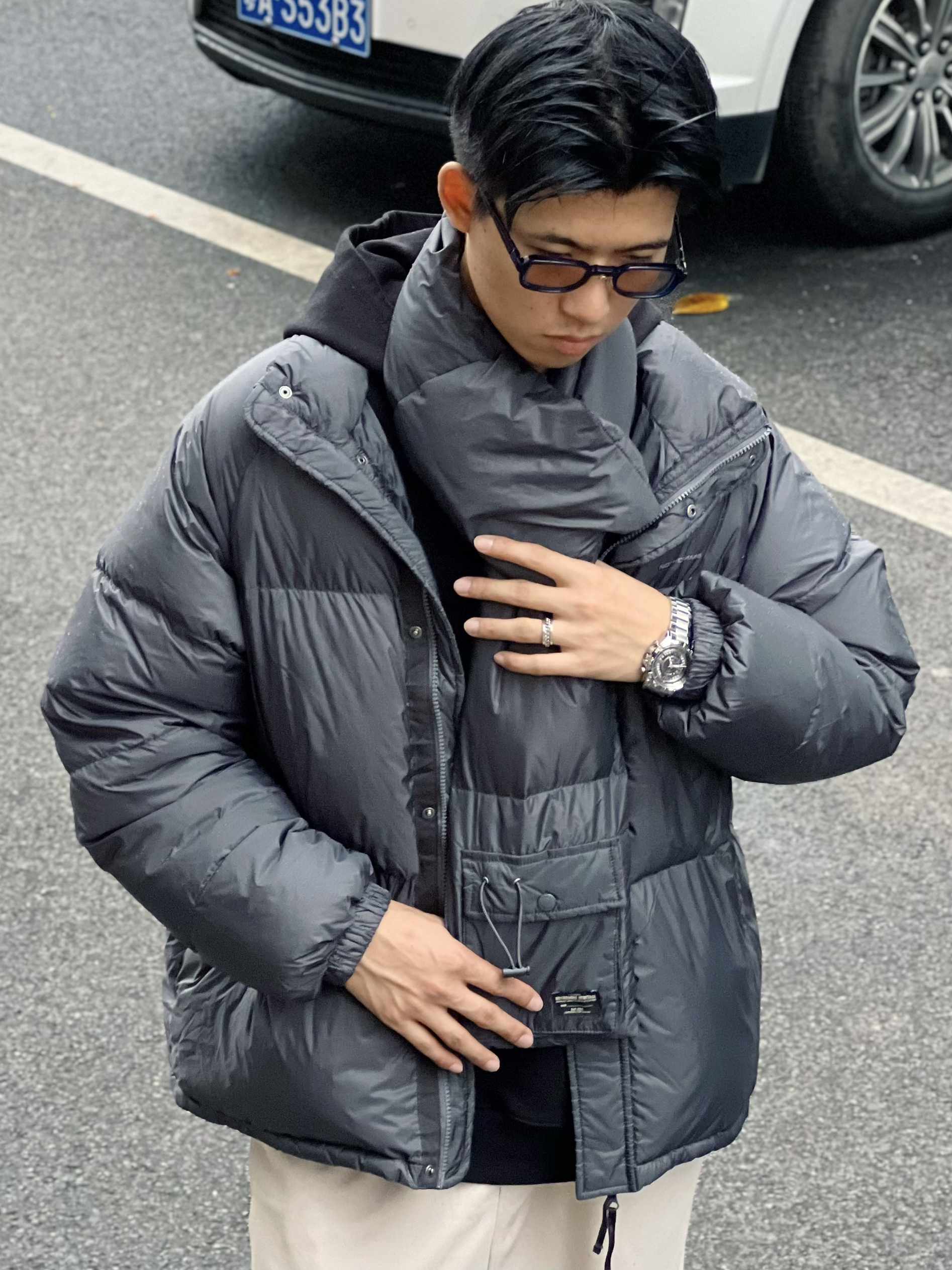 小希同学187/75,穿的x 天气,真的在逐渐变冷啦~ 业公主,王子们入冬装备准备了嘛 •今天的这件深色系羽绒服真的暖和,设计感强,藏青蓝色,冬季耐脏又耐看,还佩有围巾,围巾的设计我爱了,还有个小口袋,以放糖果~ •百搭的运动裤,配上深色系列的羽绒服,使得没有这暗沉,会阳光一些,随便配个运动 鞋,休闲鞋都可呀,带上帽子会更有氛围感 •鞋子也是潮酷品牌,增高了5厘米左右~穿上整个人都精神挺拔了,冬天...
