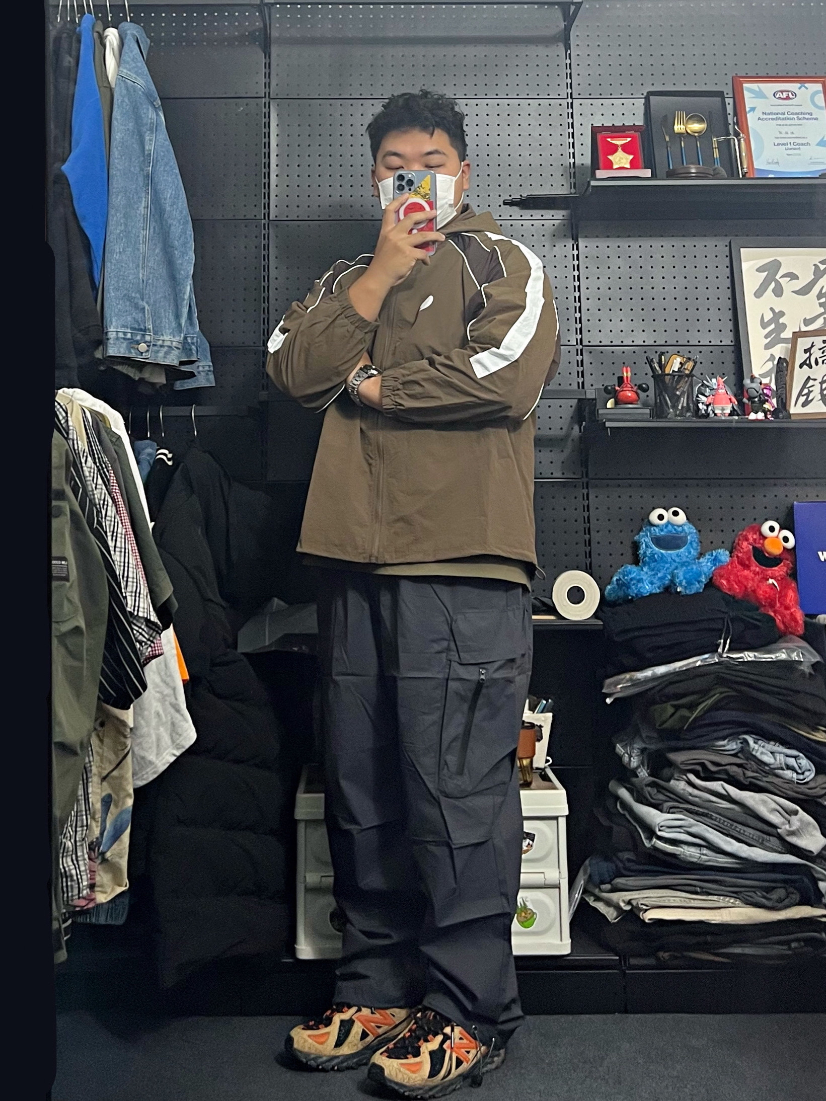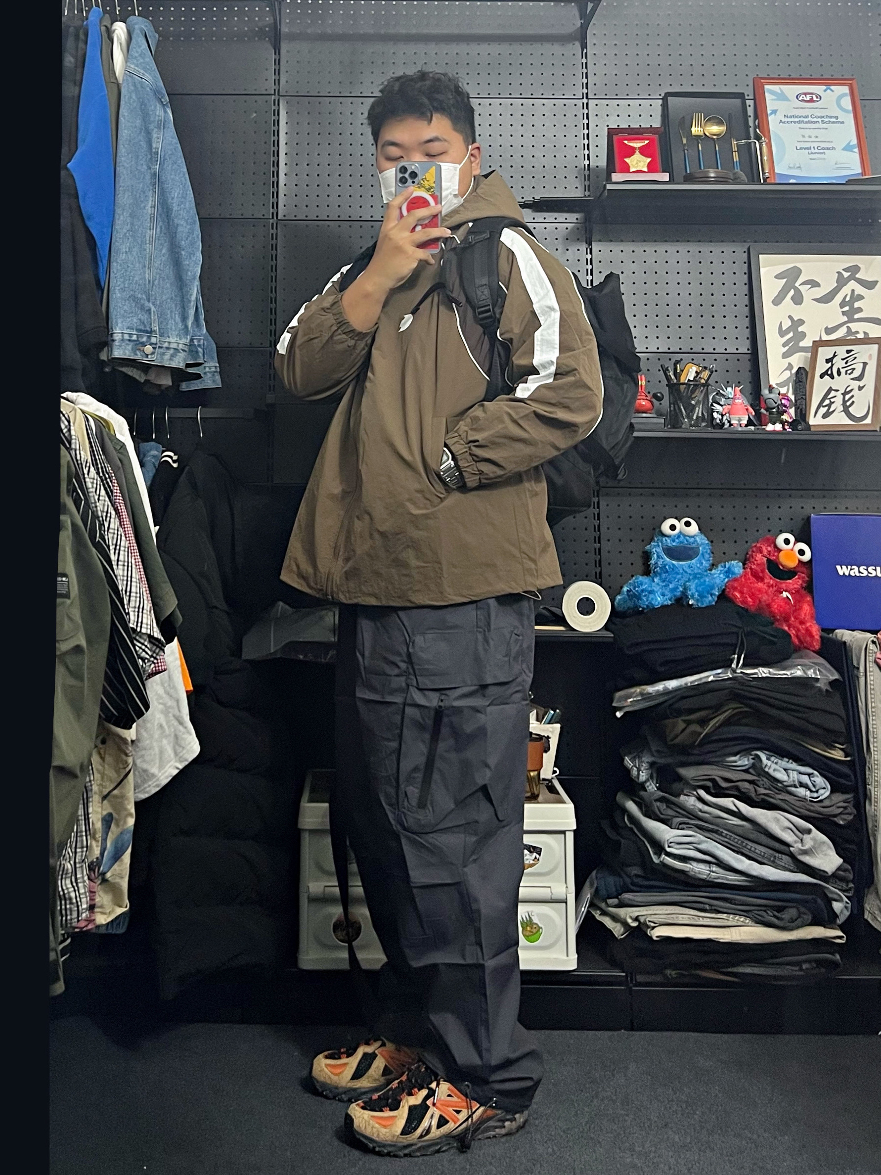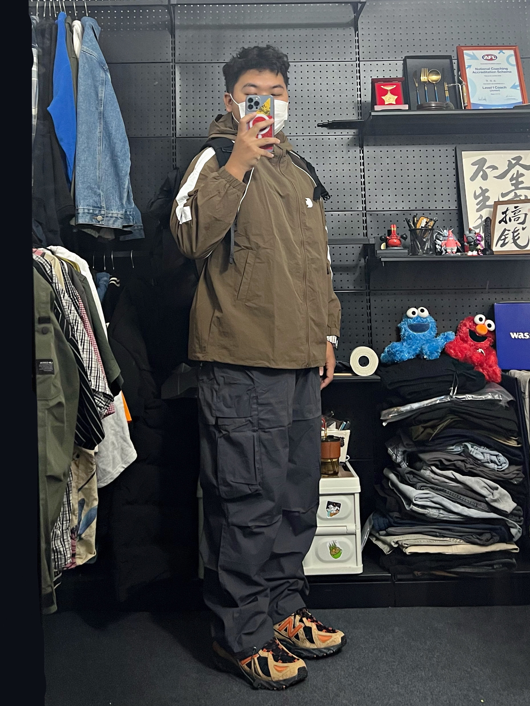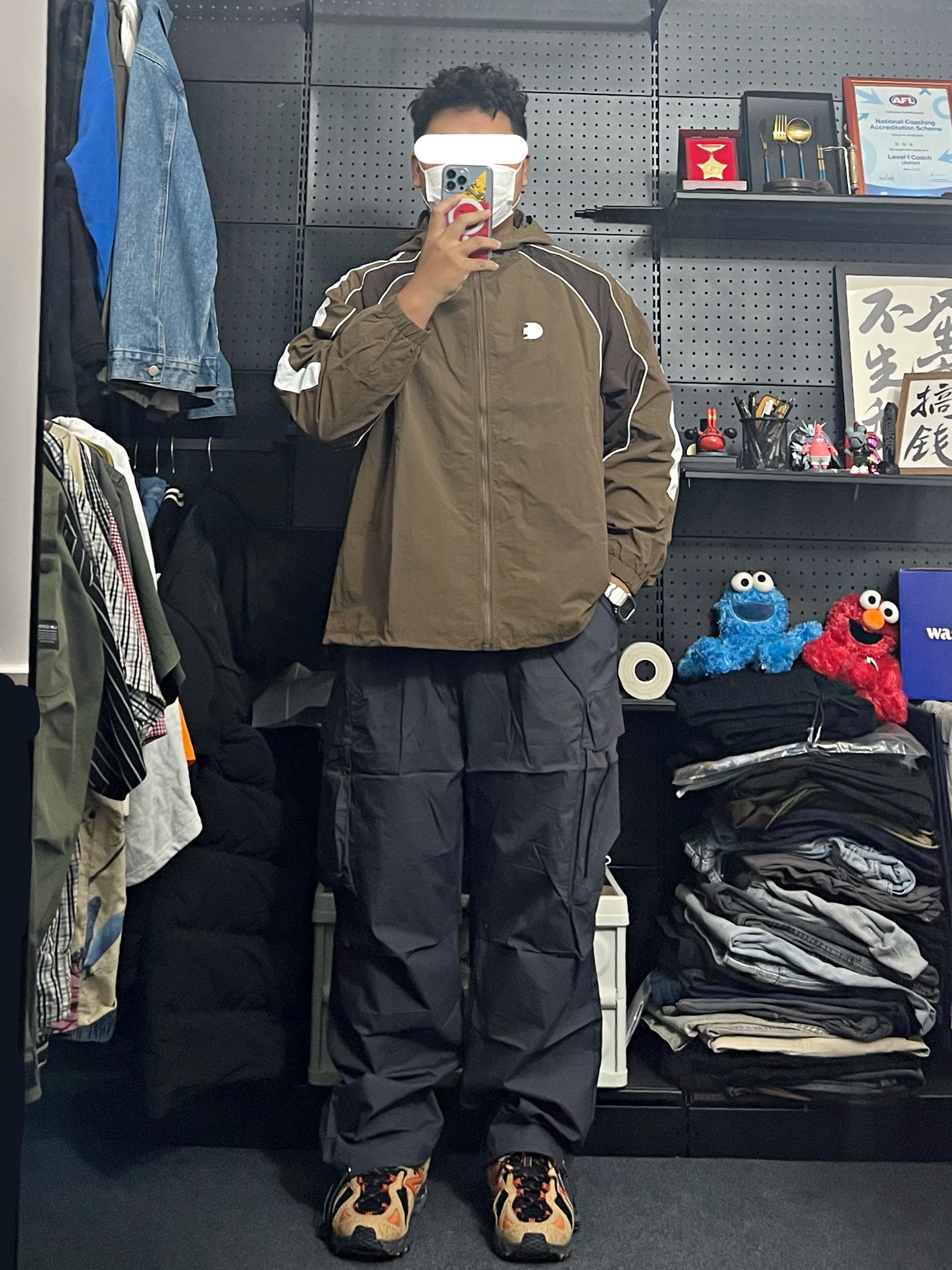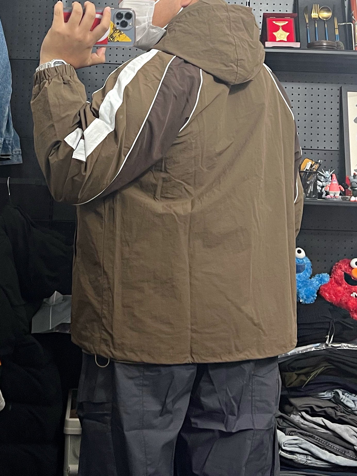 -97kg 尺码上L下5XL -咖色冲锋衣真的很能打 版型不错 裤子宽松百搭 上身很 好搭