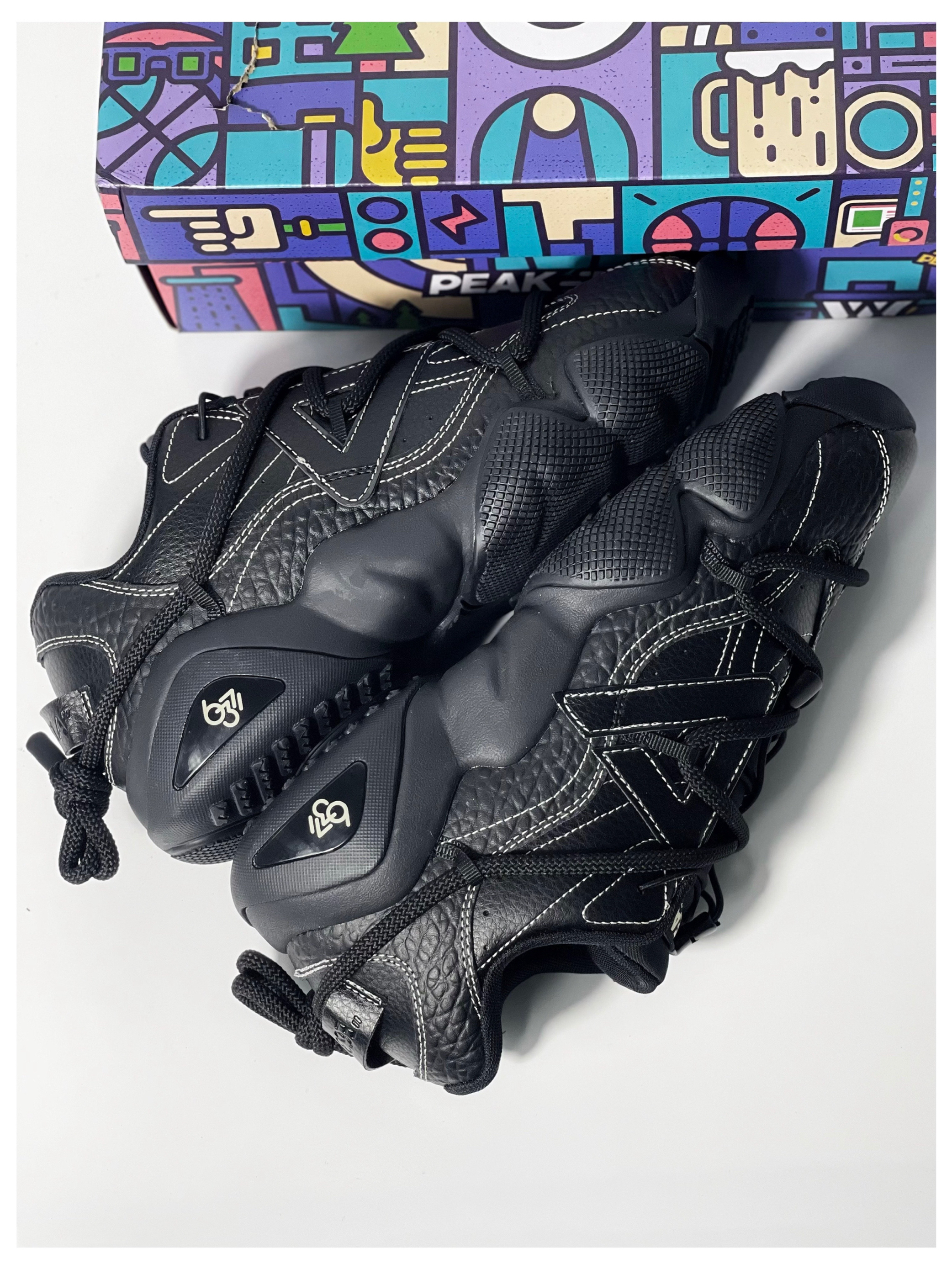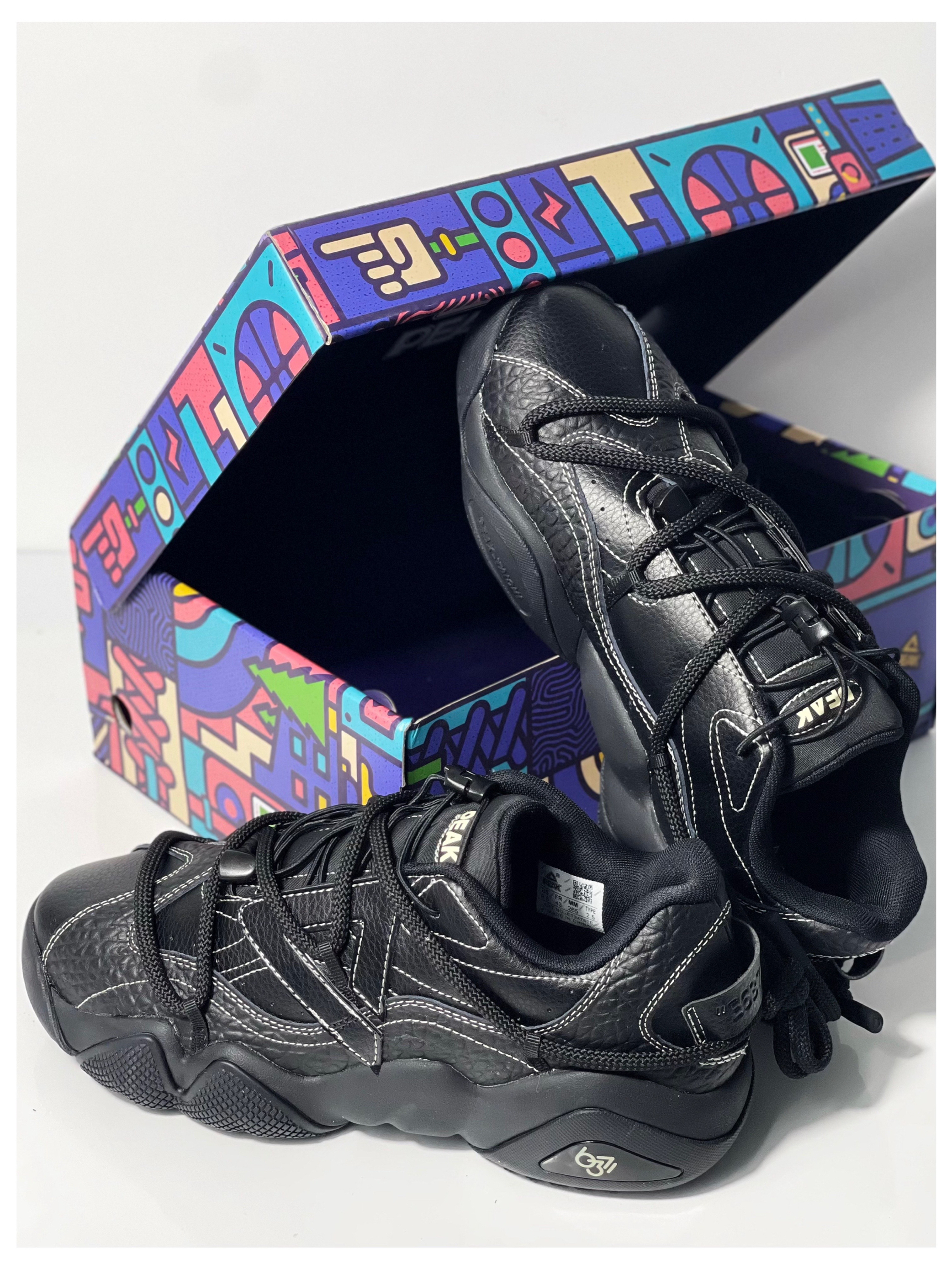 秋天出门随意穿搭,搭配一双点睛的黑色老爹鞋,匹克态极6371设计感出街也是非常吸睛,任何衣服驾驭起来都很酷~ 整体经典的黑色系色调,鞋面由漆皮和荔枝皮材质拼接而成,侧身标志性的大三角logo标,双鞋带绑带设计独具个性,中底全掌采用了态极科技,脚感软弹舒舒适,橡胶外底纹路防滑耐磨,整体包裹感十足。 日常运动或通勤穿都很适合,增高效果也是非常明显,显高显瘦不会闷脚,自穿非常百搭的性价比好鞋。