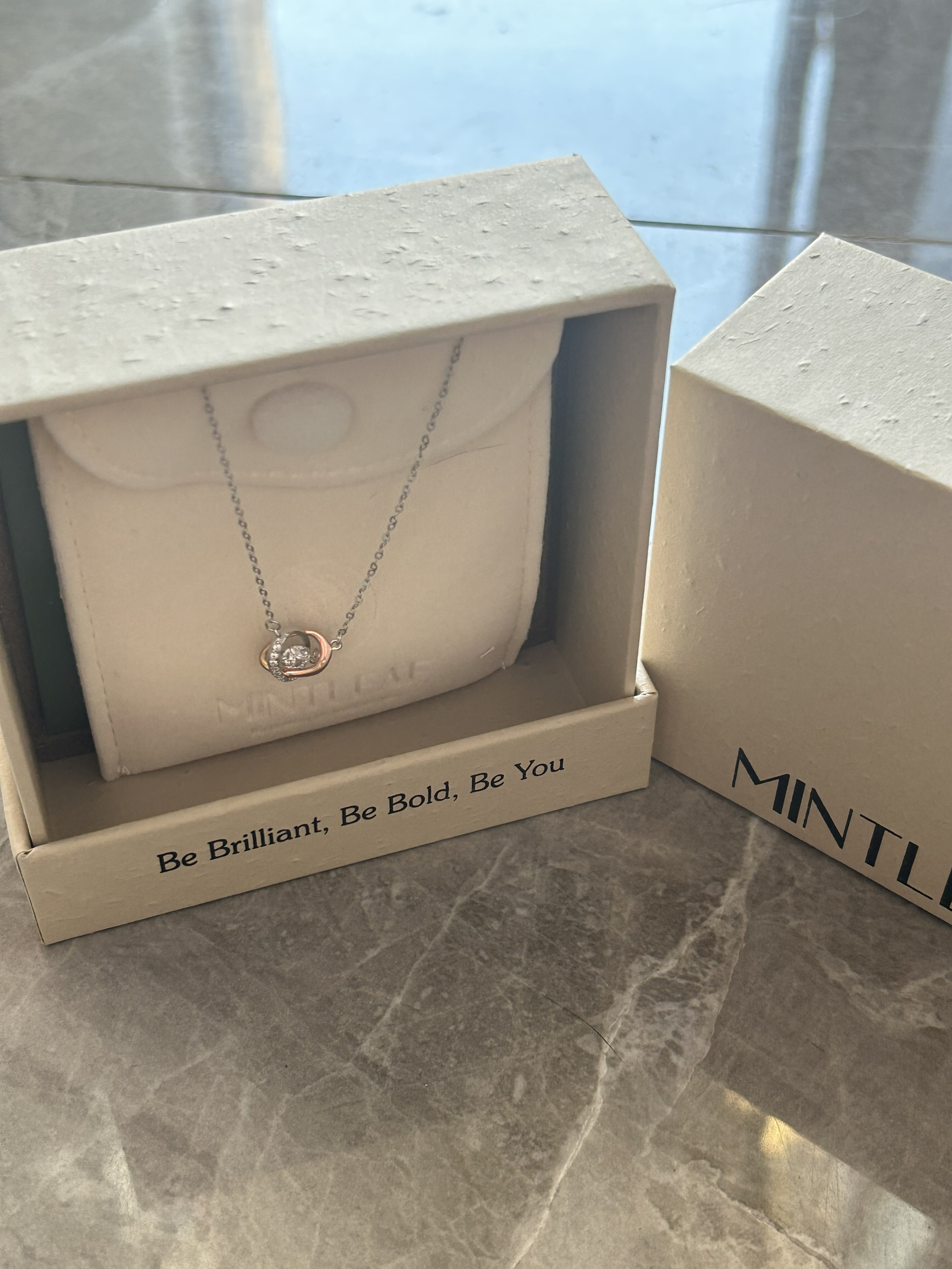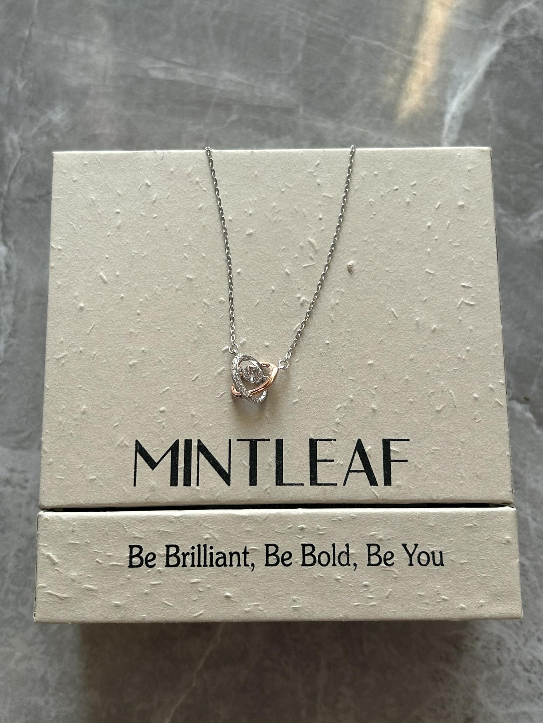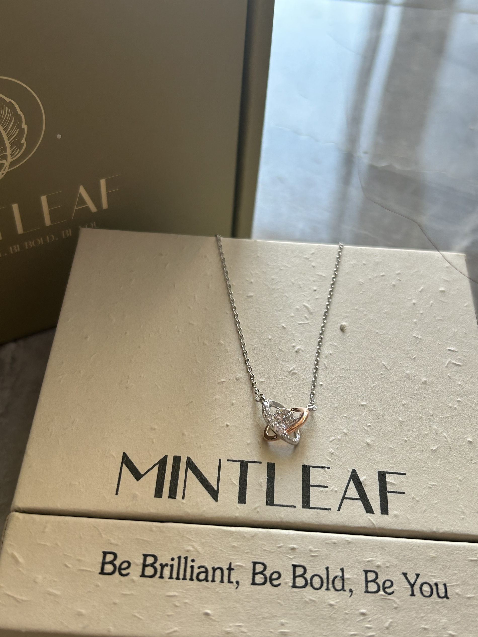 哈喽,家人们,今天的第一款好物分享来喽,是一条最近出去玩很喜欢佩戴滴少女心项链~ 礼盒是以杏色为主体滴,很高级很有秋冬氛围感~ 同心结的设计,搭配短袖也很好看,平时出去玩搭配小裙子、v领衣服都可以,很显锁骨~ 它还是s925银材质滴,不易掉色变黑~