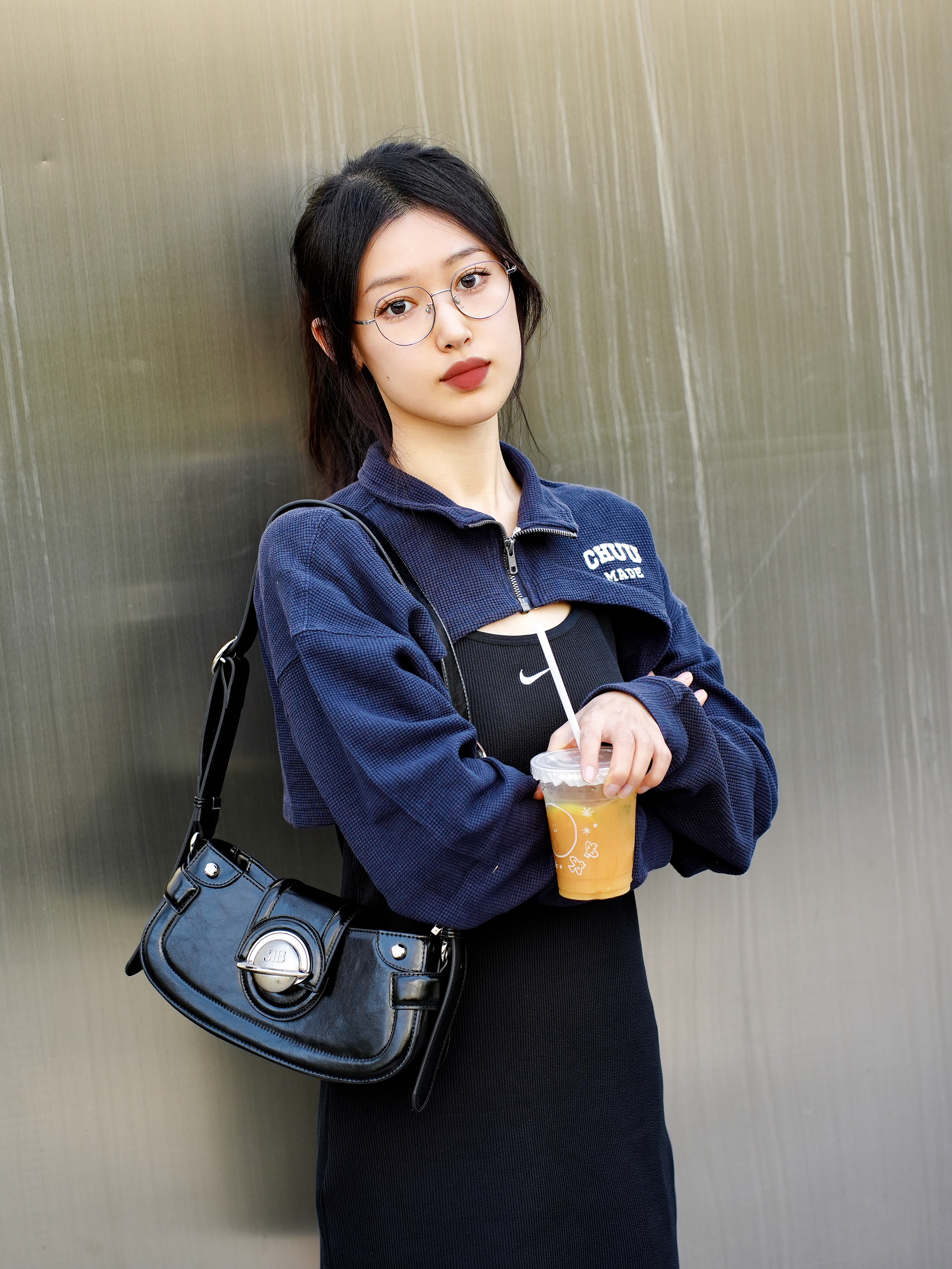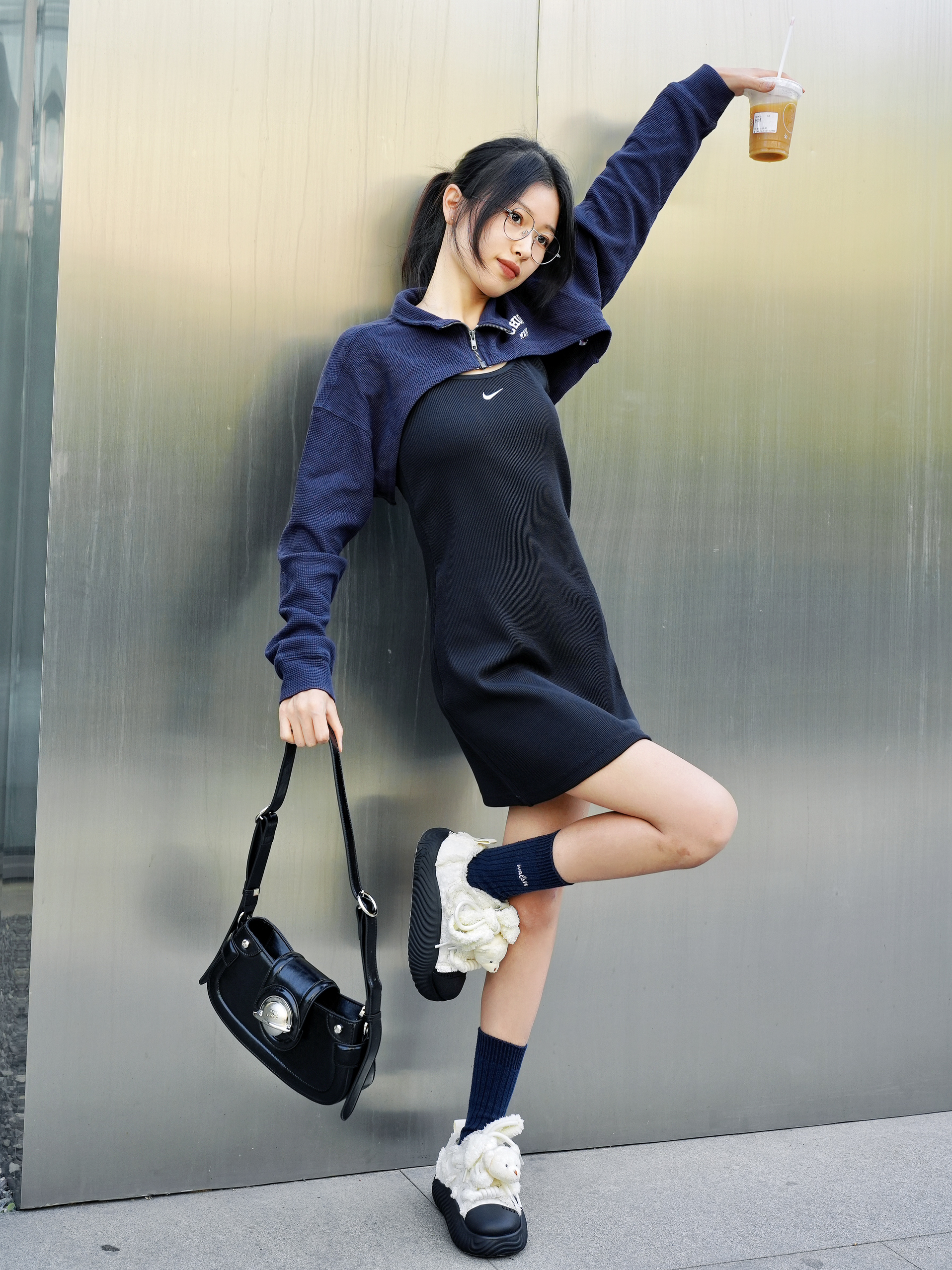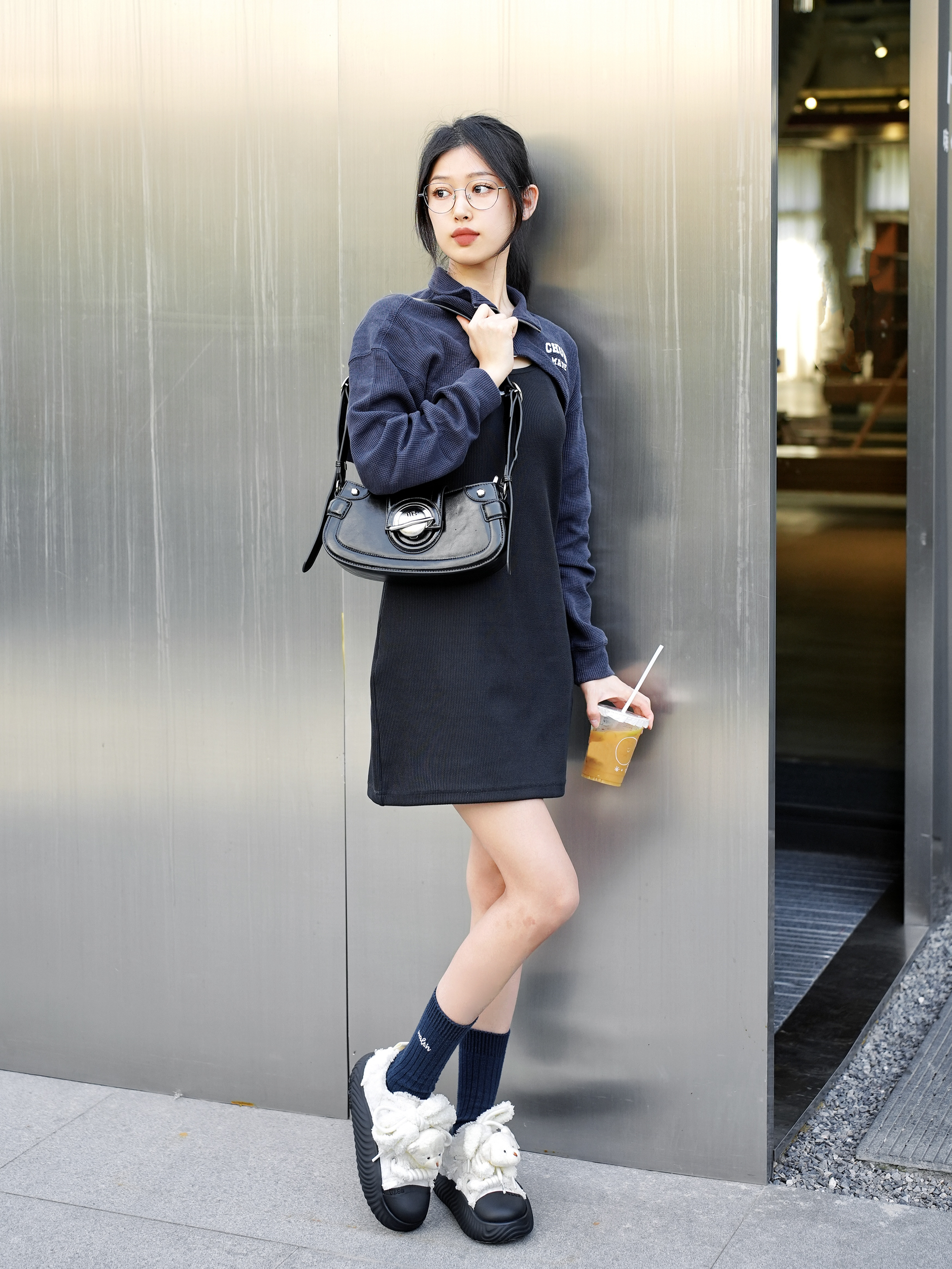 今天解锁秋日辣妹𝐋𝐨𝐨𝐤🖤 黑色针织连衣裙搭配藏蓝色卫衣拉链外套 上脚黑白摇粒绒面包鞋👟 背上我的黑色月球腋下包➰ 好酷好酷 出街自带辣妹感耶❕ 包包:𝙹𝙴𝙻𝙻𝚈𝚃𝙾𝚈𝙱𝙾𝚈 鞋子:𝚄𝚁𝚃𝙰