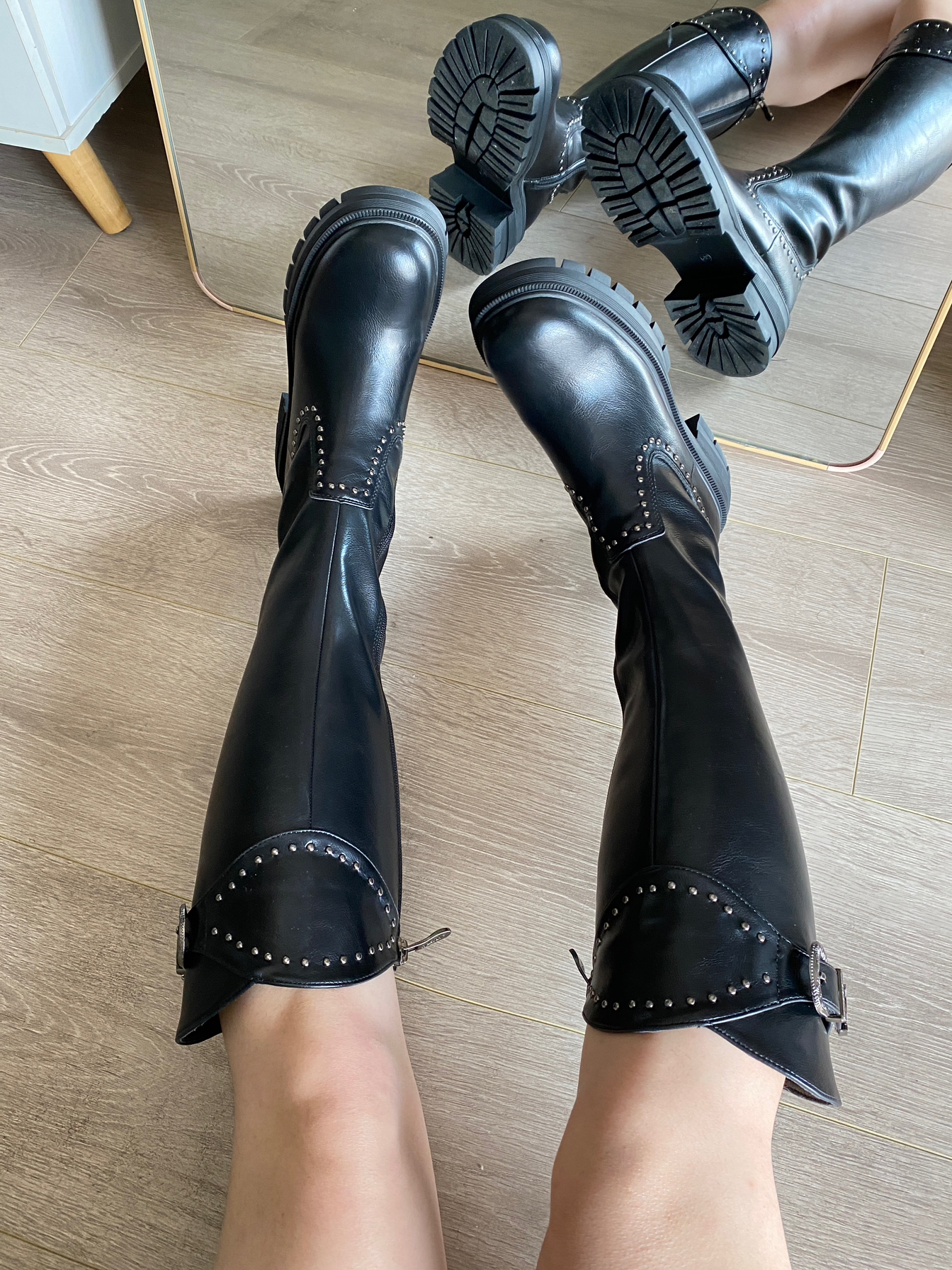 请大数据推给需要靴子的姐妹们!! 弯腿肉腿快来看呀!这双黑色的靴子真的显瘦又增高耶! 里面是毛绒的 保暖又舒适 呜呜尊的喜欢 初冬就穿她啦!!