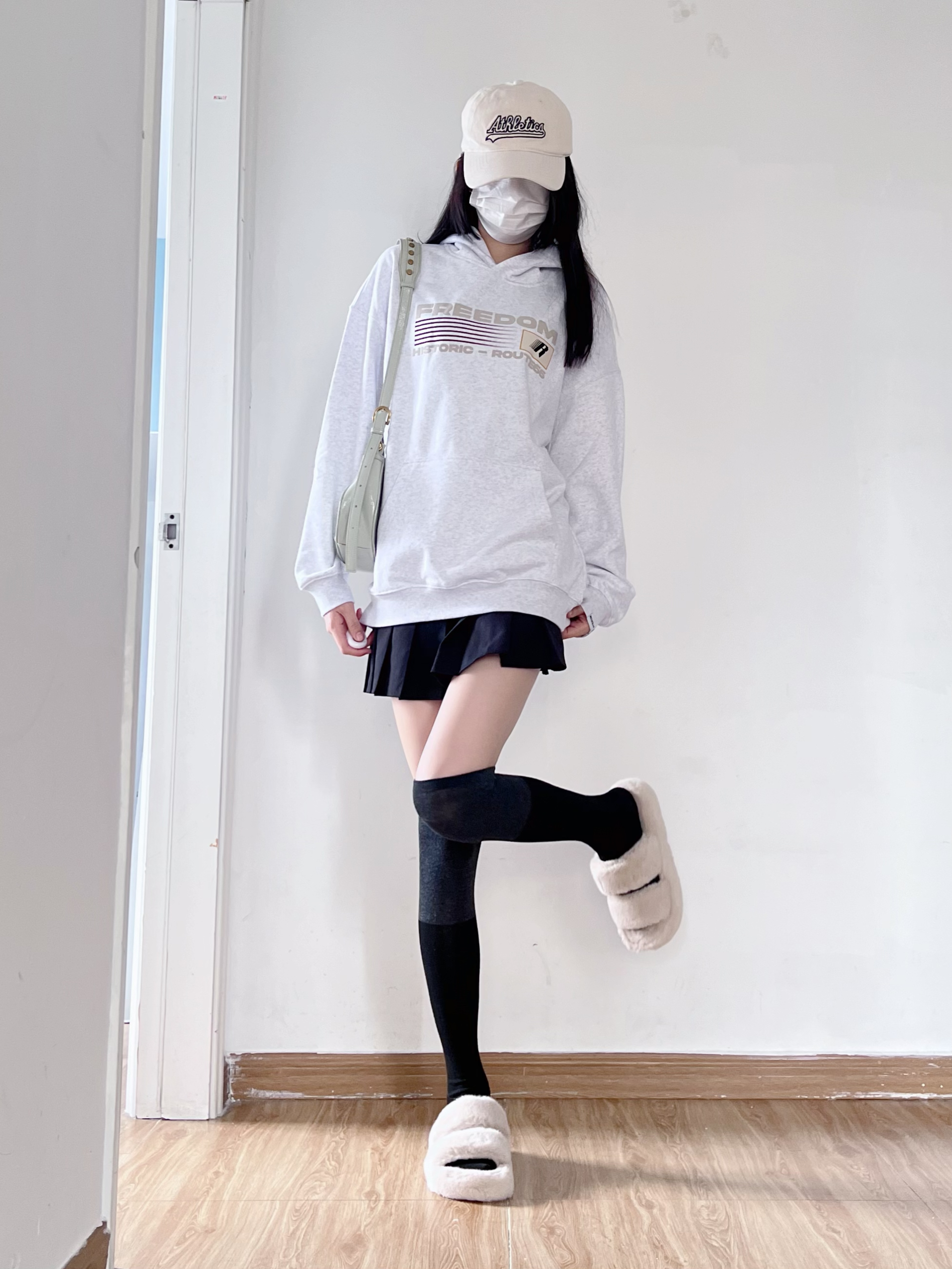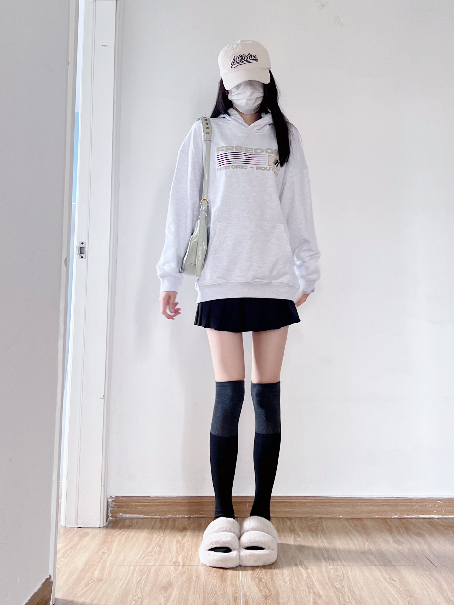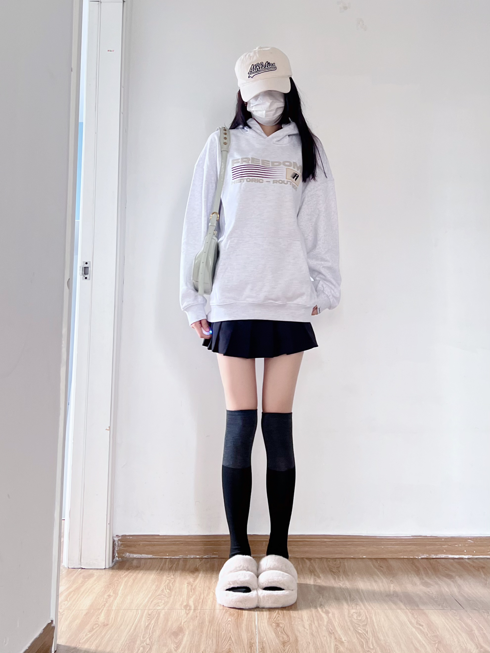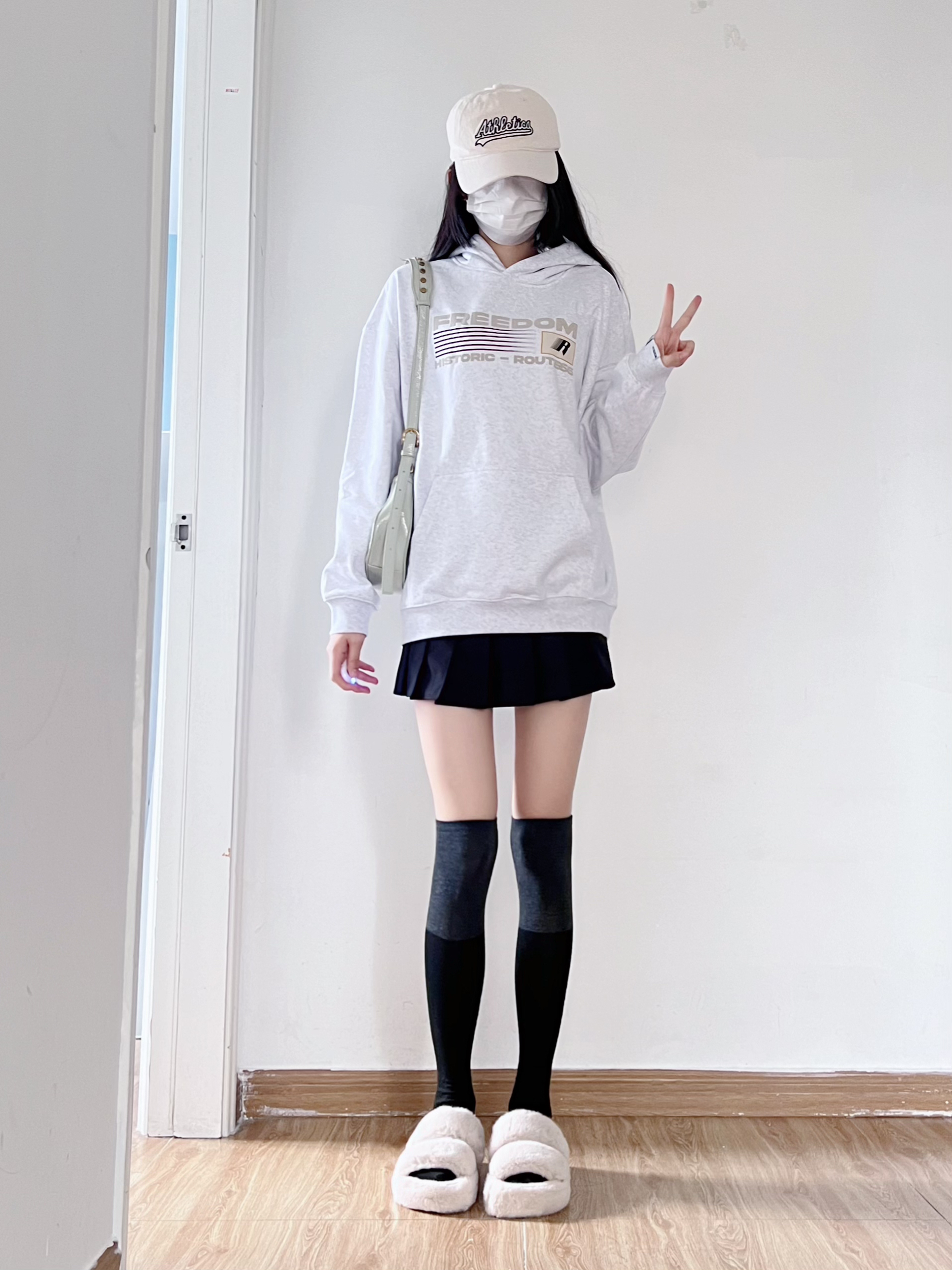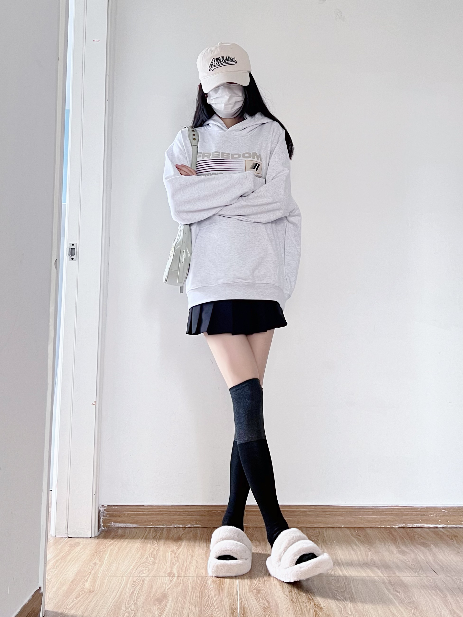 卫衣➕过膝袜🔒死! 松弛慵懒感直接拿捏了 花灰色卫衣好显白呀 我170 50穿的L哦 今天一套穿出门还被要链接啦!!🔗