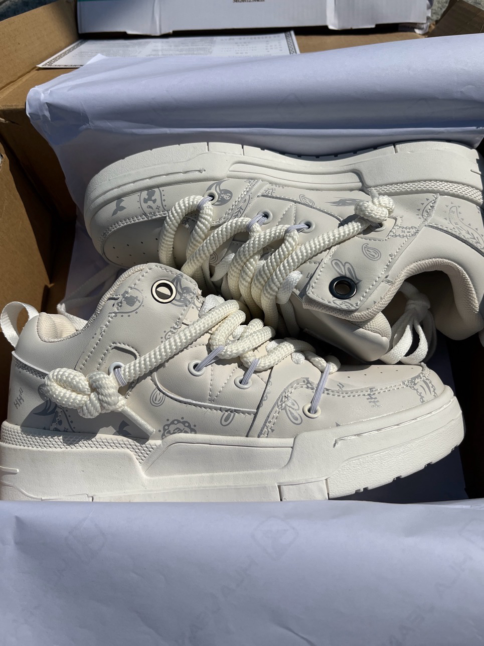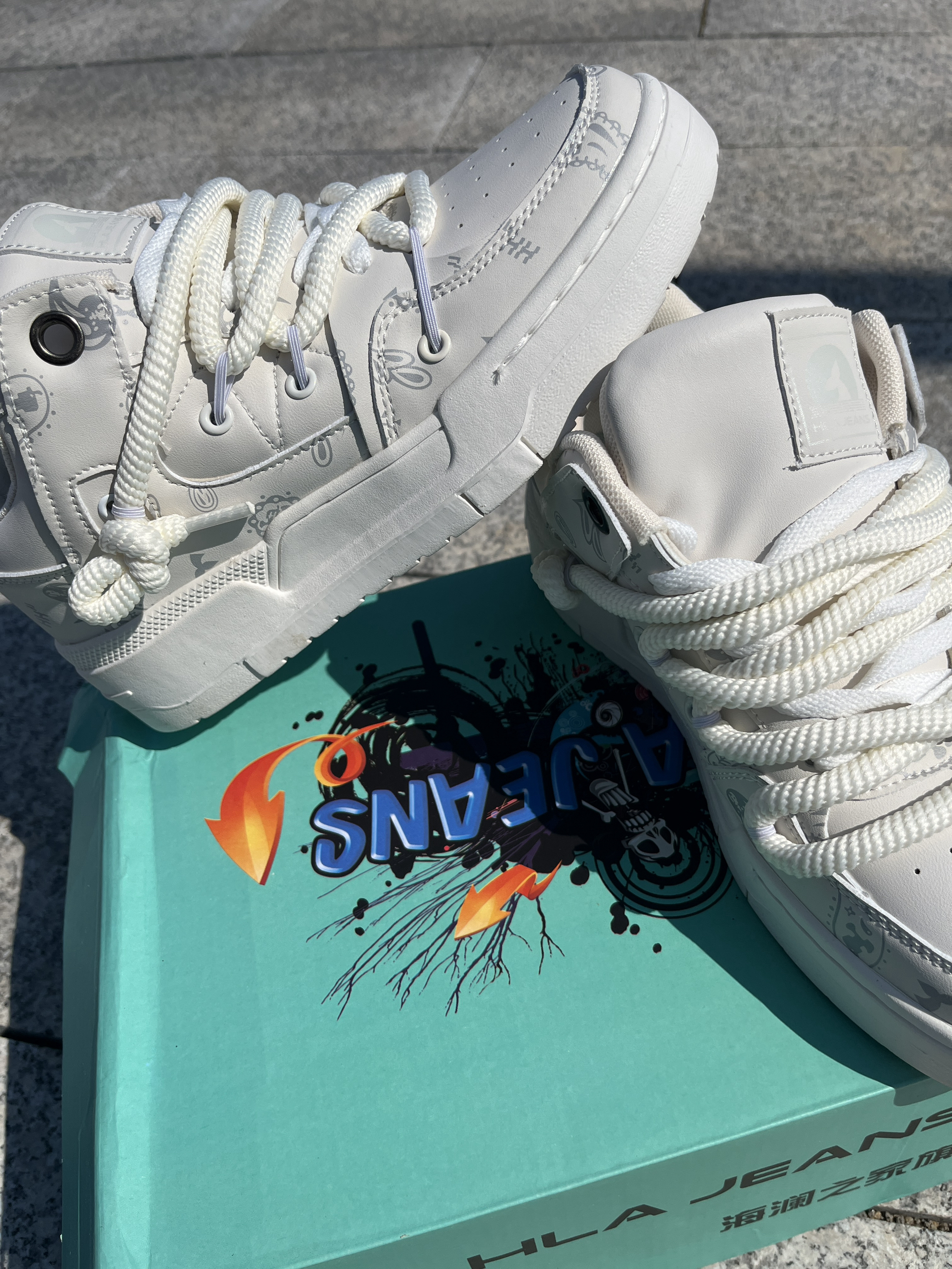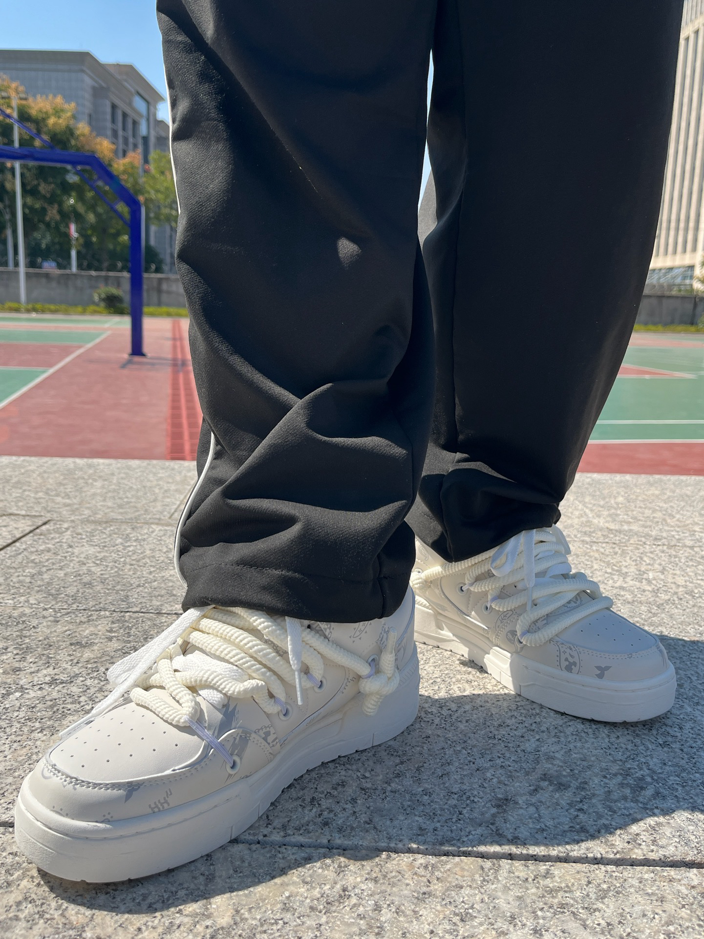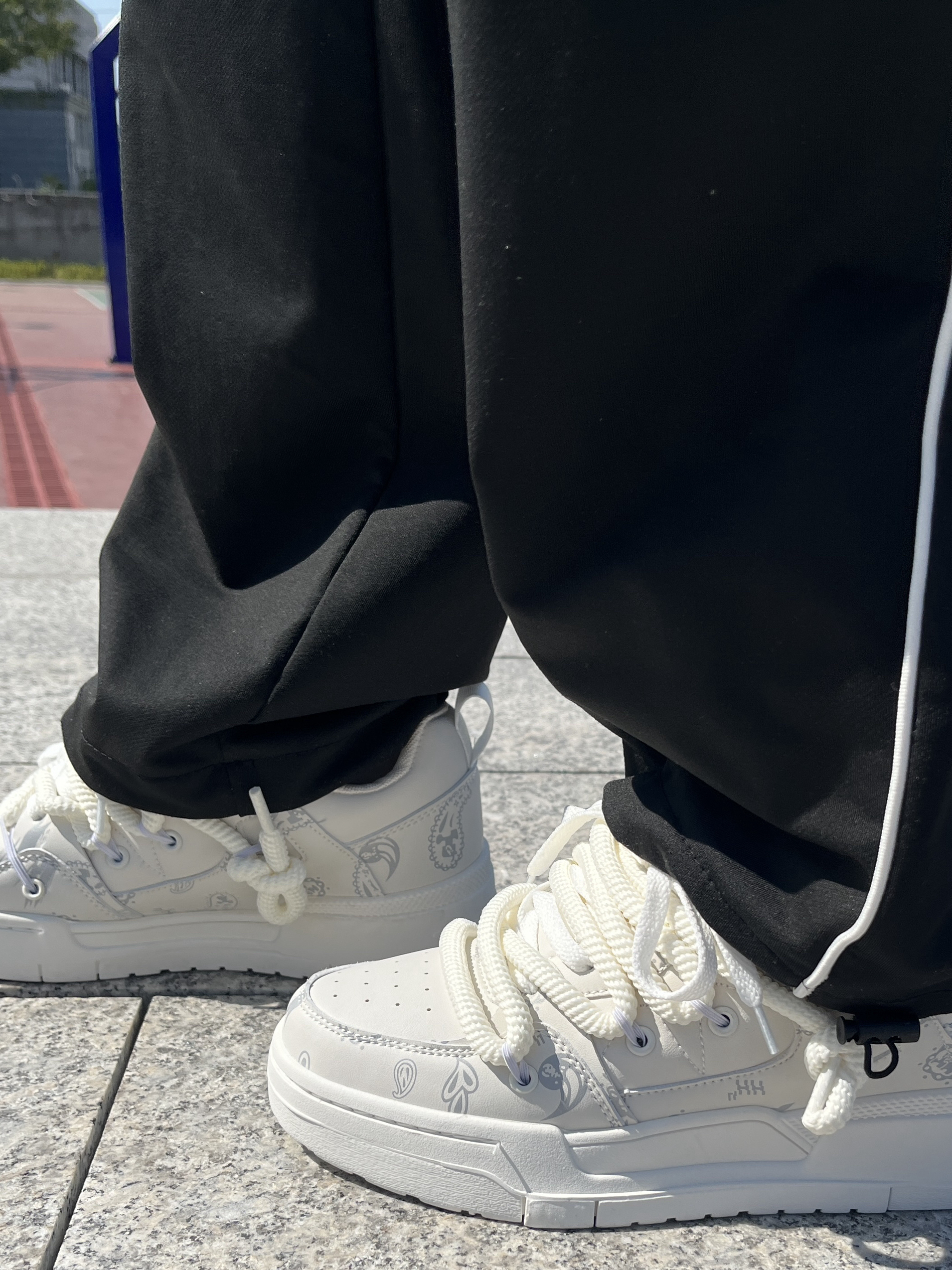 今天给大家带来一双非常好看还具有设计感的鞋子👟,这双鞋不管是鞋带还是鞋面都带有看看设计感,鞋带多带一条假粗鞋带用来装饰鞋子正面,远看显腿细,鞋面采用印花设计凸显出大牌即视感的效果,鞋底穿起来很绵软,我军训的时候穿一天都不会感觉到脚板硬,小众又百搭的设计元素加上耐穿的特点,这双鞋好看又好穿[强][强]