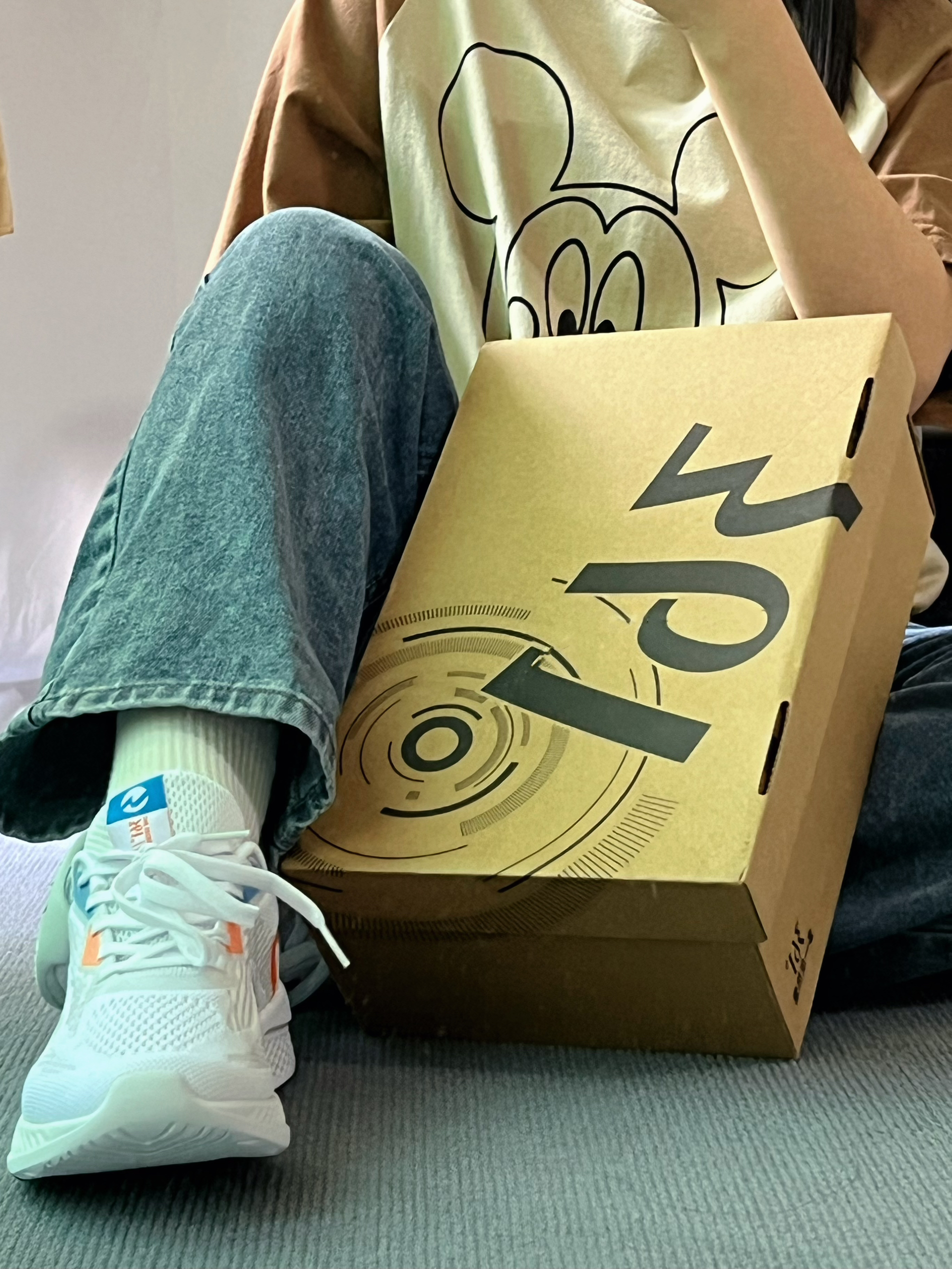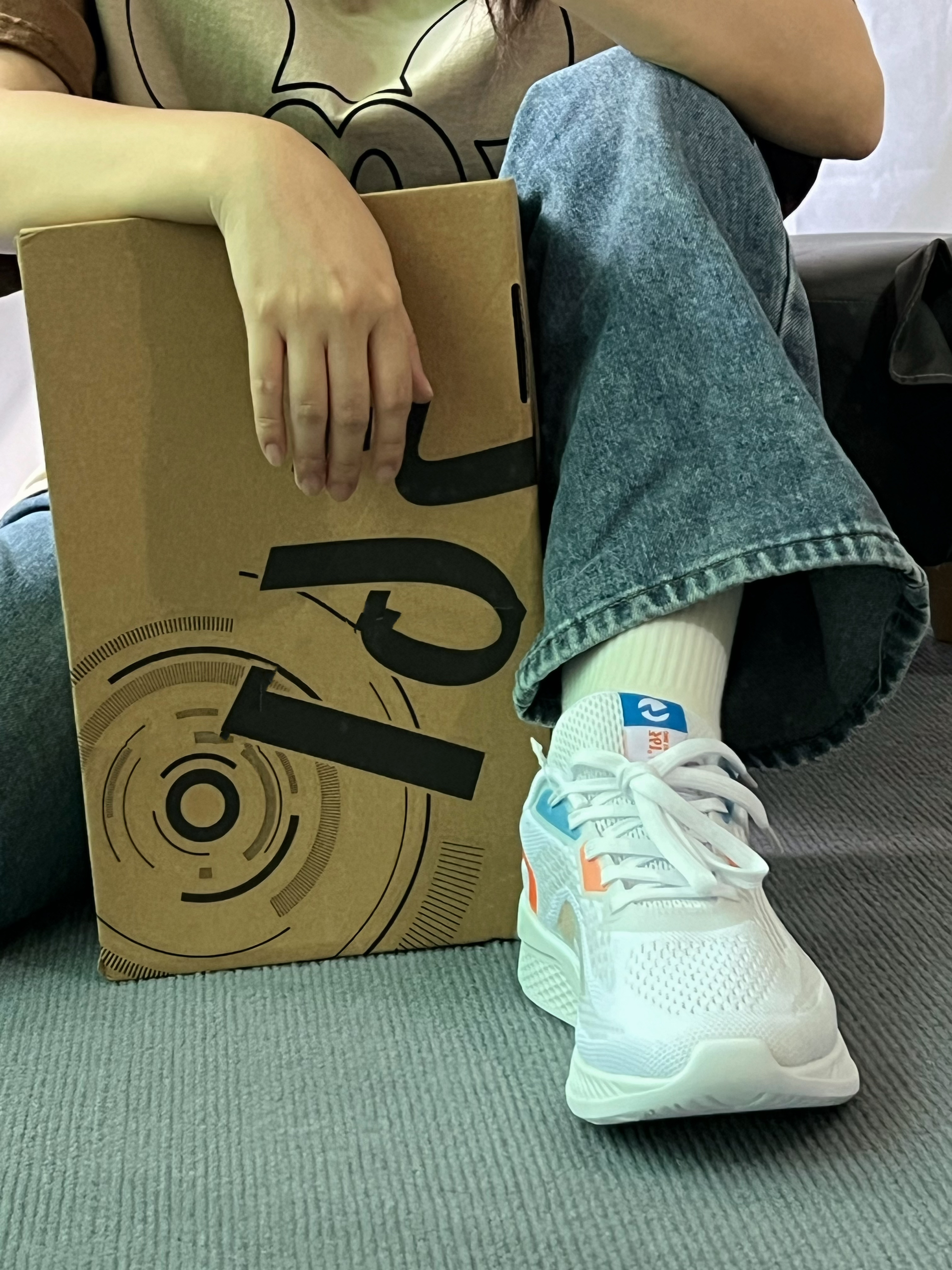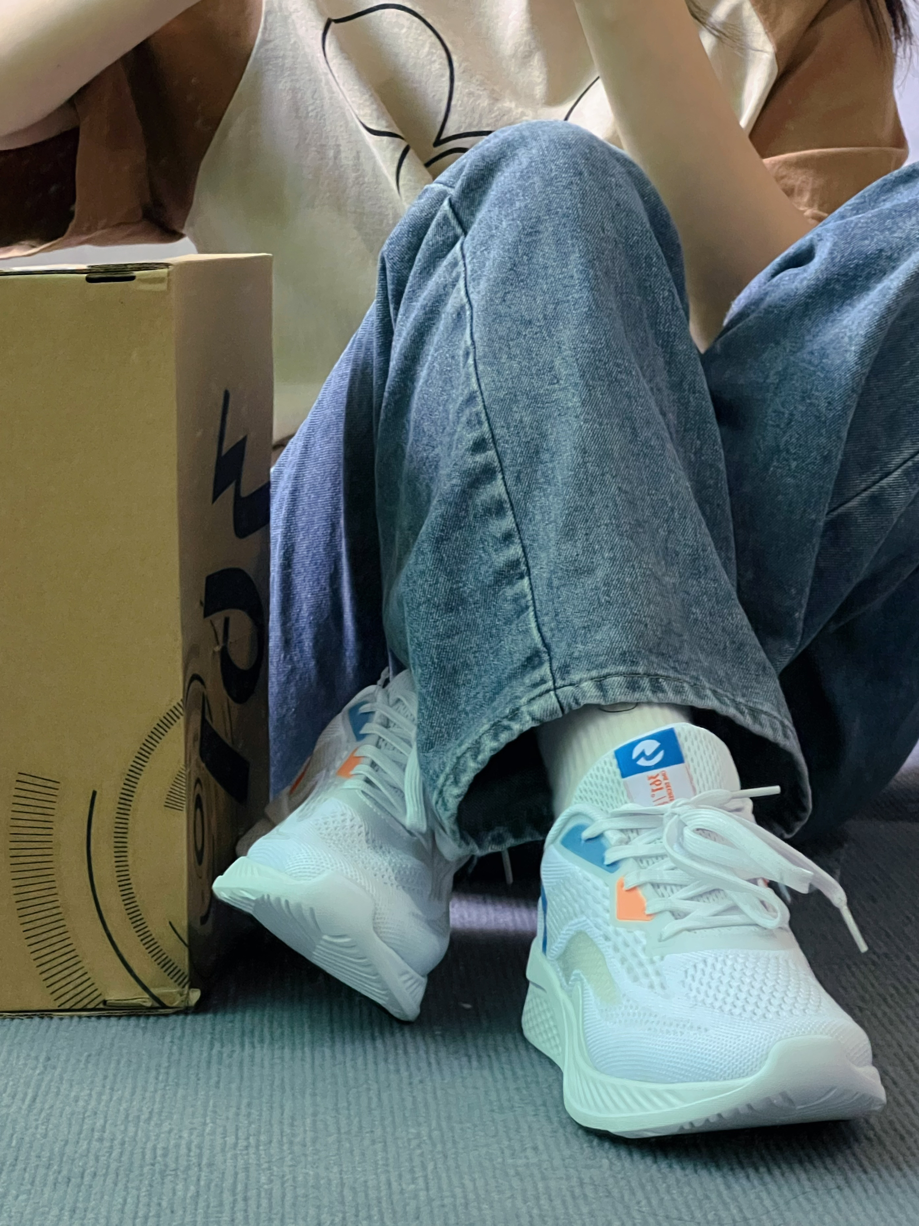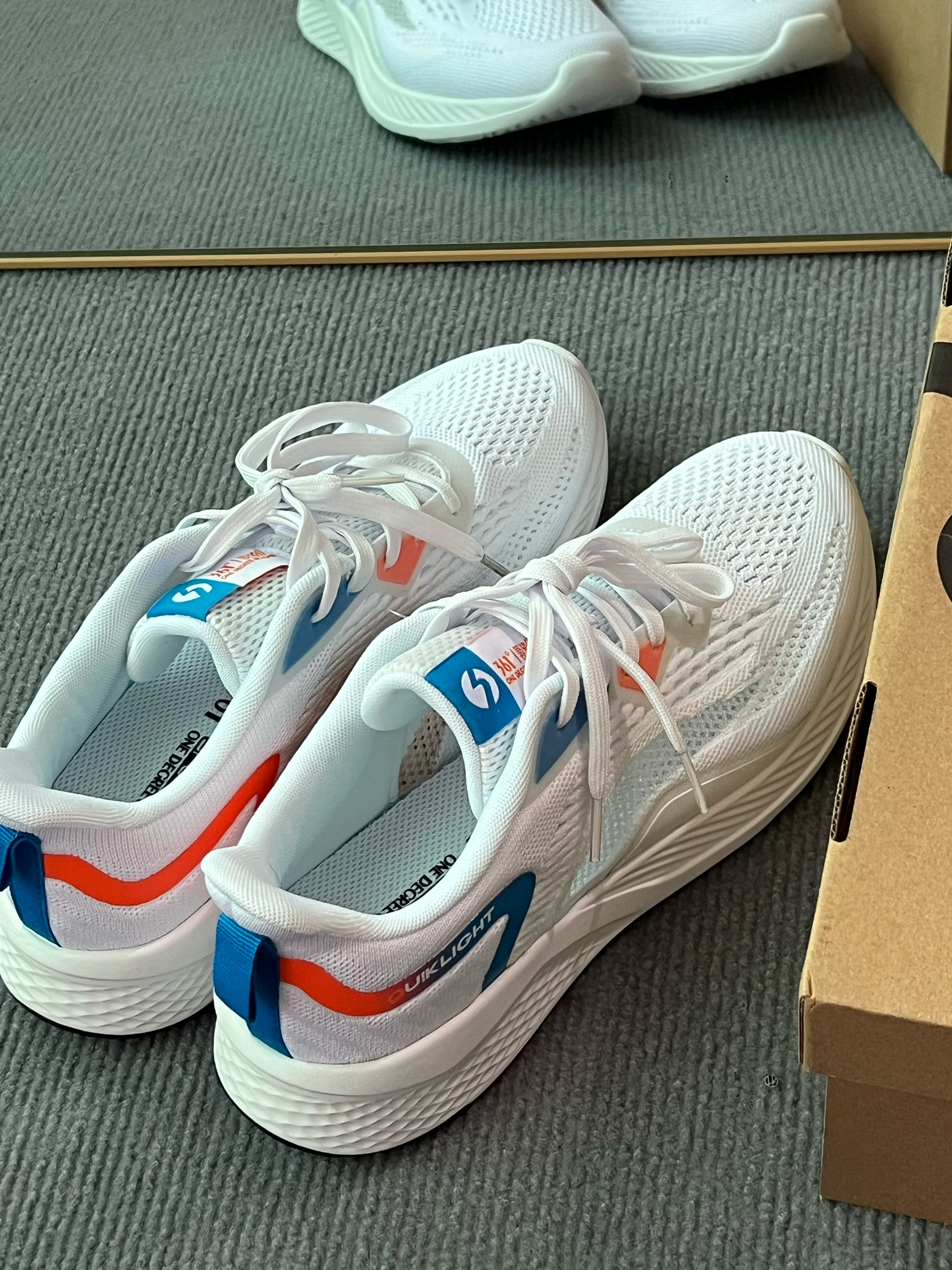 哈哈哈,双1⃣️1⃣️给男友👨买了双运动鞋,自己偷偷先穿 鞋子是白➕蓝色,很清爽,鞋面是网布织物材质,很舒服透气✅ 鞋子很轻,穿起来很舒服✅ 橡胶底很防滑耐磨✅