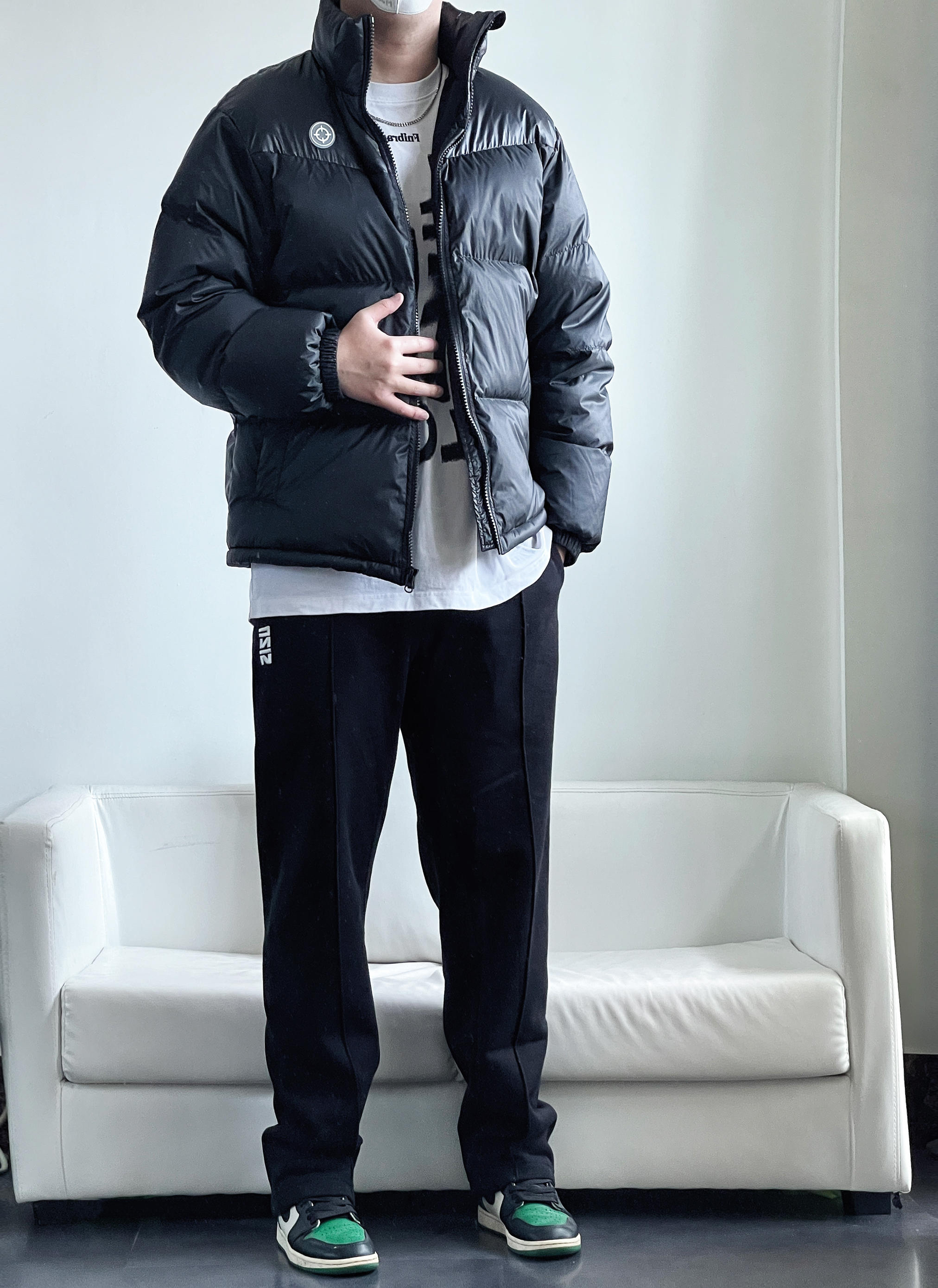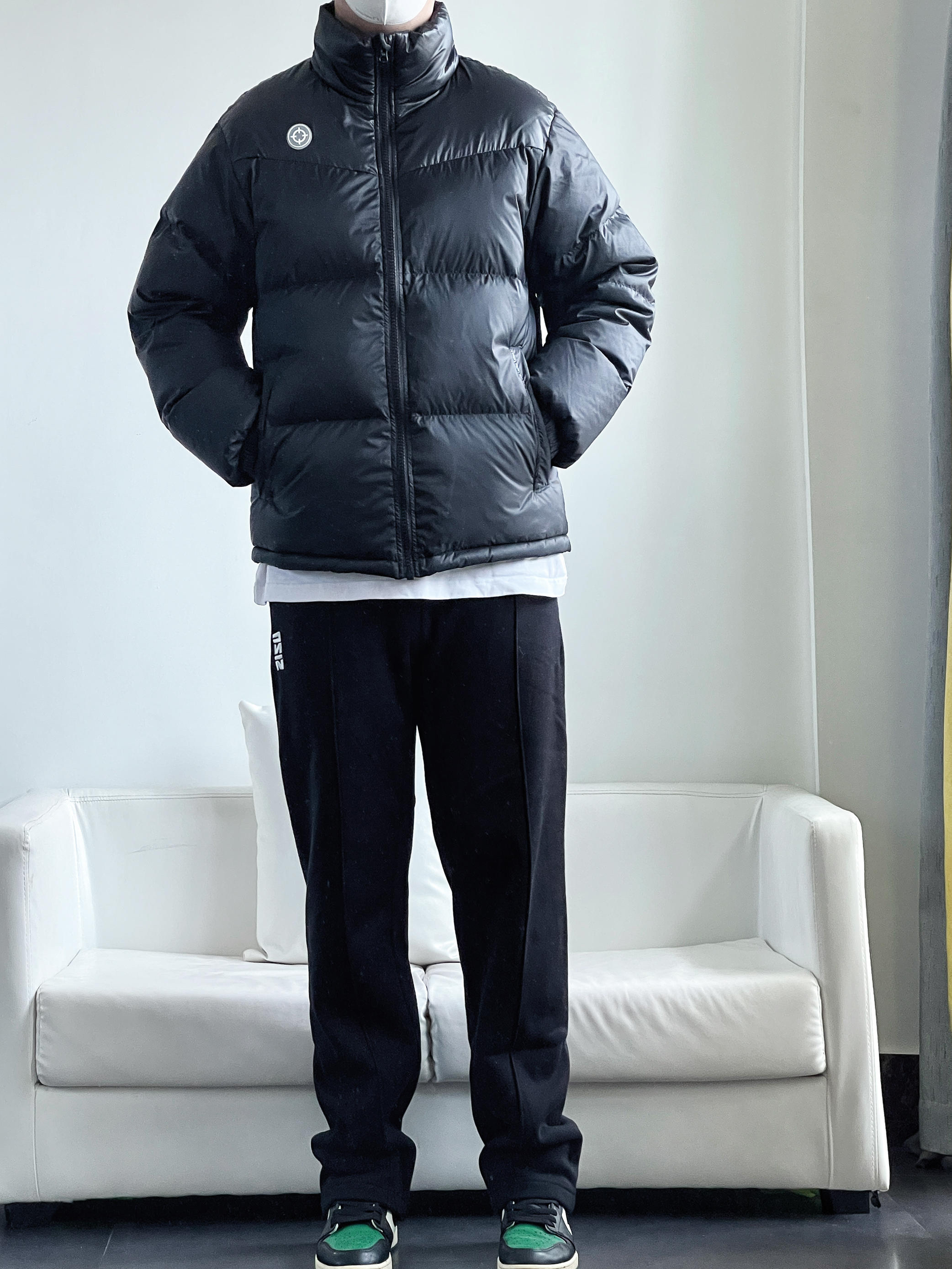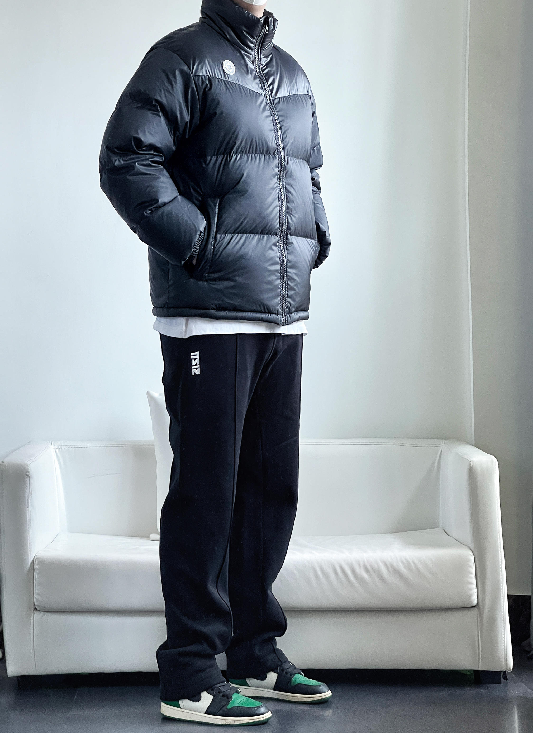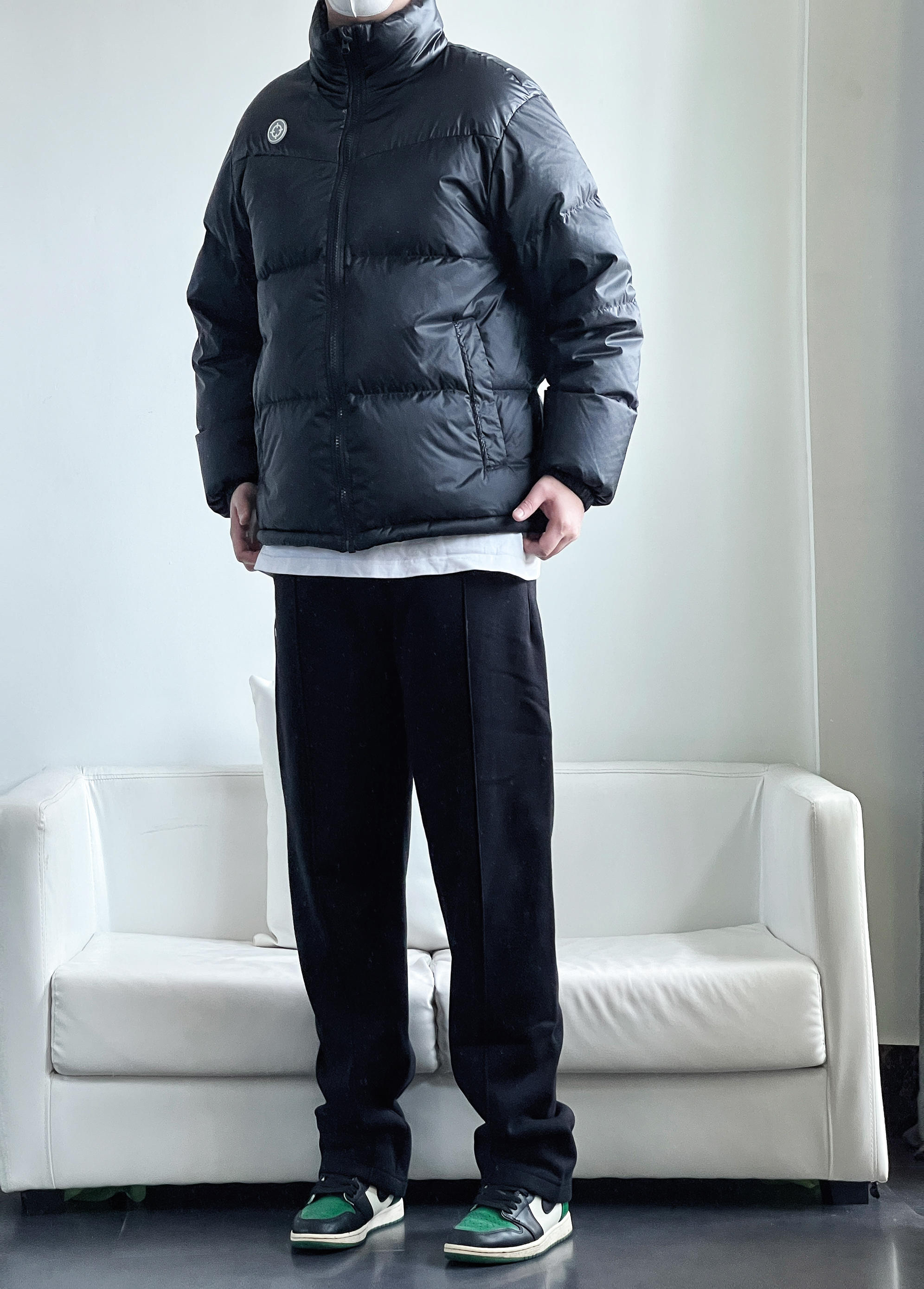5G入冬的必备单品羽绒服 全黑款式 帅气百搭还保暖 无论搭配什么裤子 都会有很好的效果 今日搭了一条黑色直筒休闲卫裤 整体all black 看起来简单耐看 这种适合懒人通勤的不费力穿搭 三分钟就能够帅气出门👌🏻 身高丨体重丨尺码 : 178丨90kg丨2XL 👔 : 准者 👖 : UZIS 👟 : Aj1黑绿脚趾