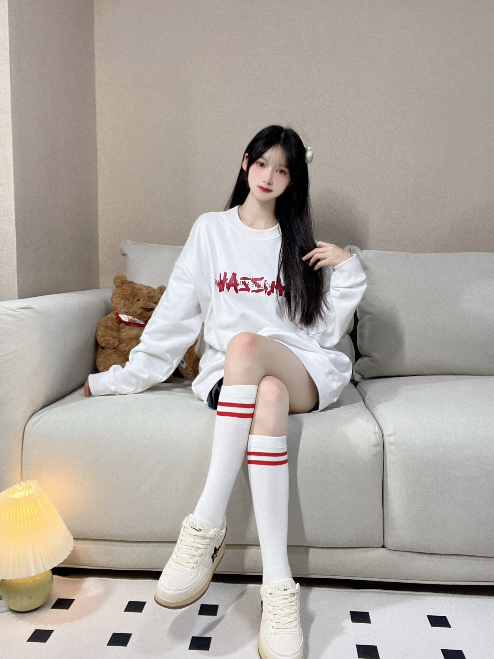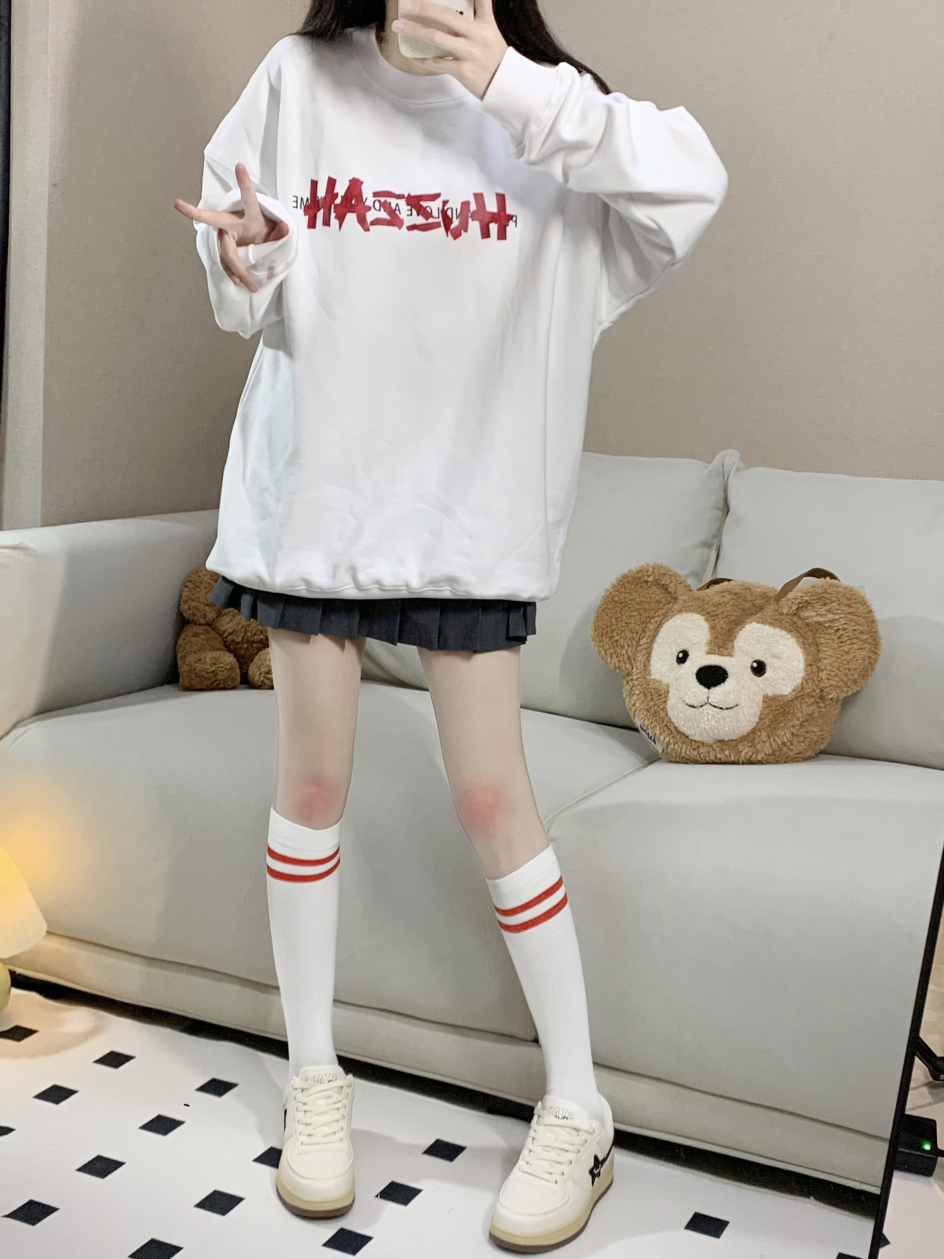 秋天的氛围感满满 近期好爱卫衣!! 大码好舒服好慵懒 这件上身🤍好舒服 软乎乎的一点也不扎!质量很奈斯 真的沦陷了!小白鞋永远滴神 我就问还有谁!!! 千干净净的小白鞋谁不爱? 纯白色好青春 🖤 星星图案使整体不那么 单调且富有设计感 卫衣: Huzzah 鞋子: Stateof Stars