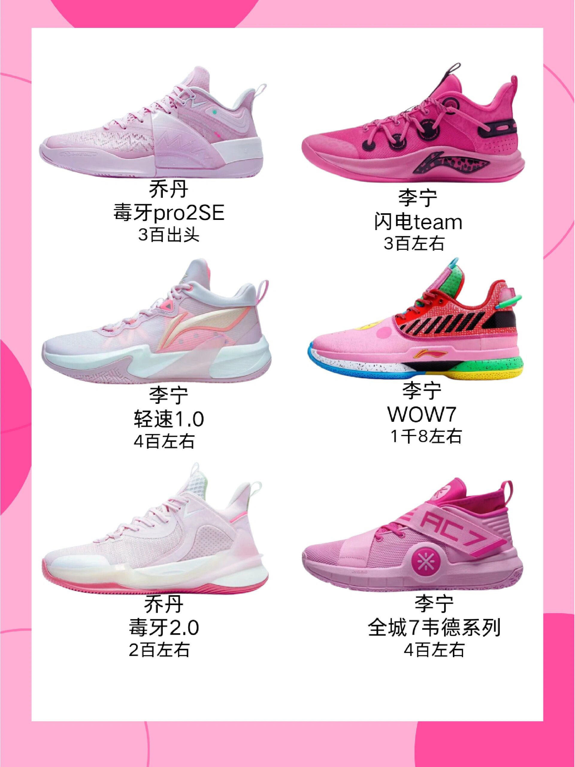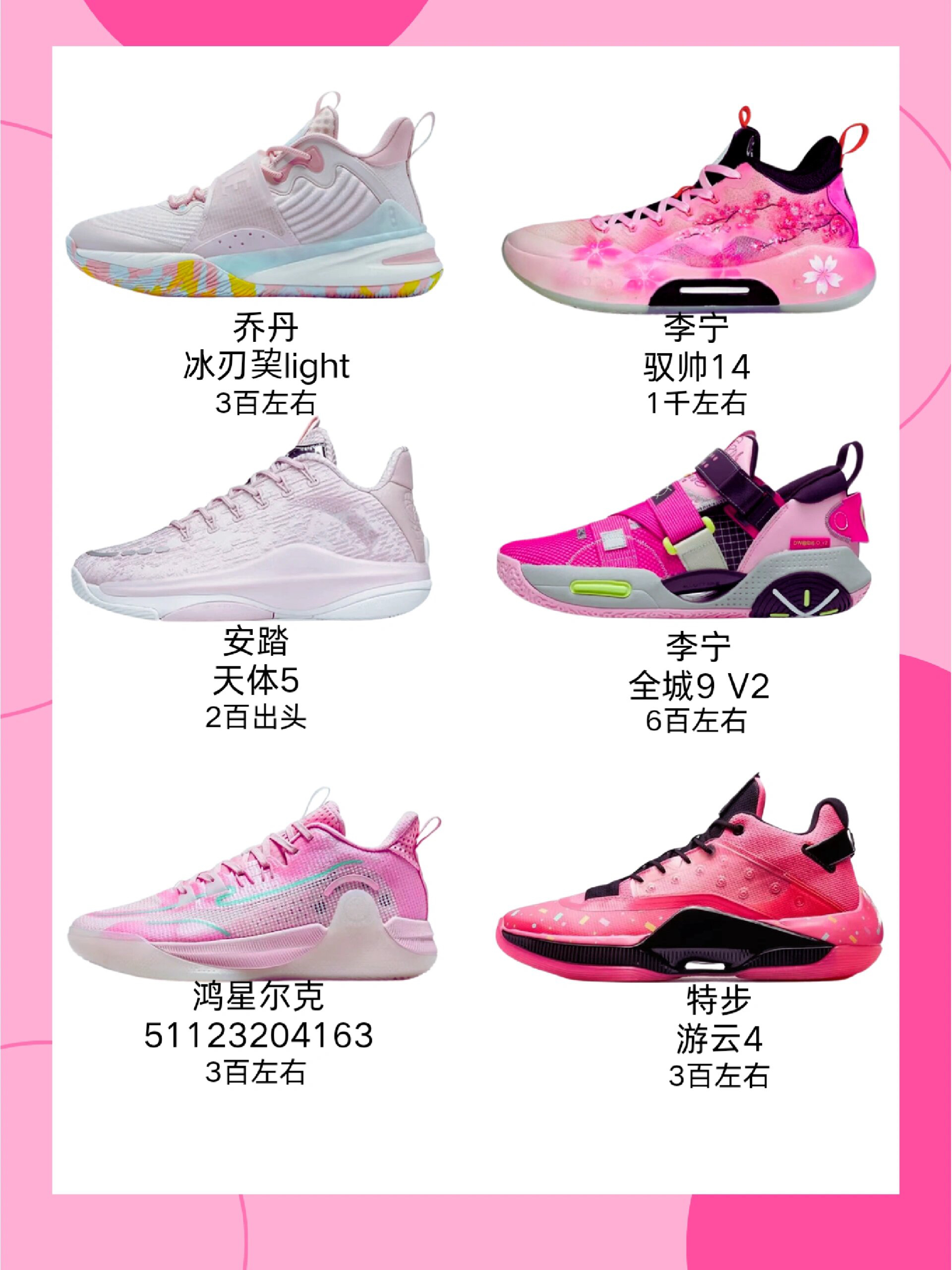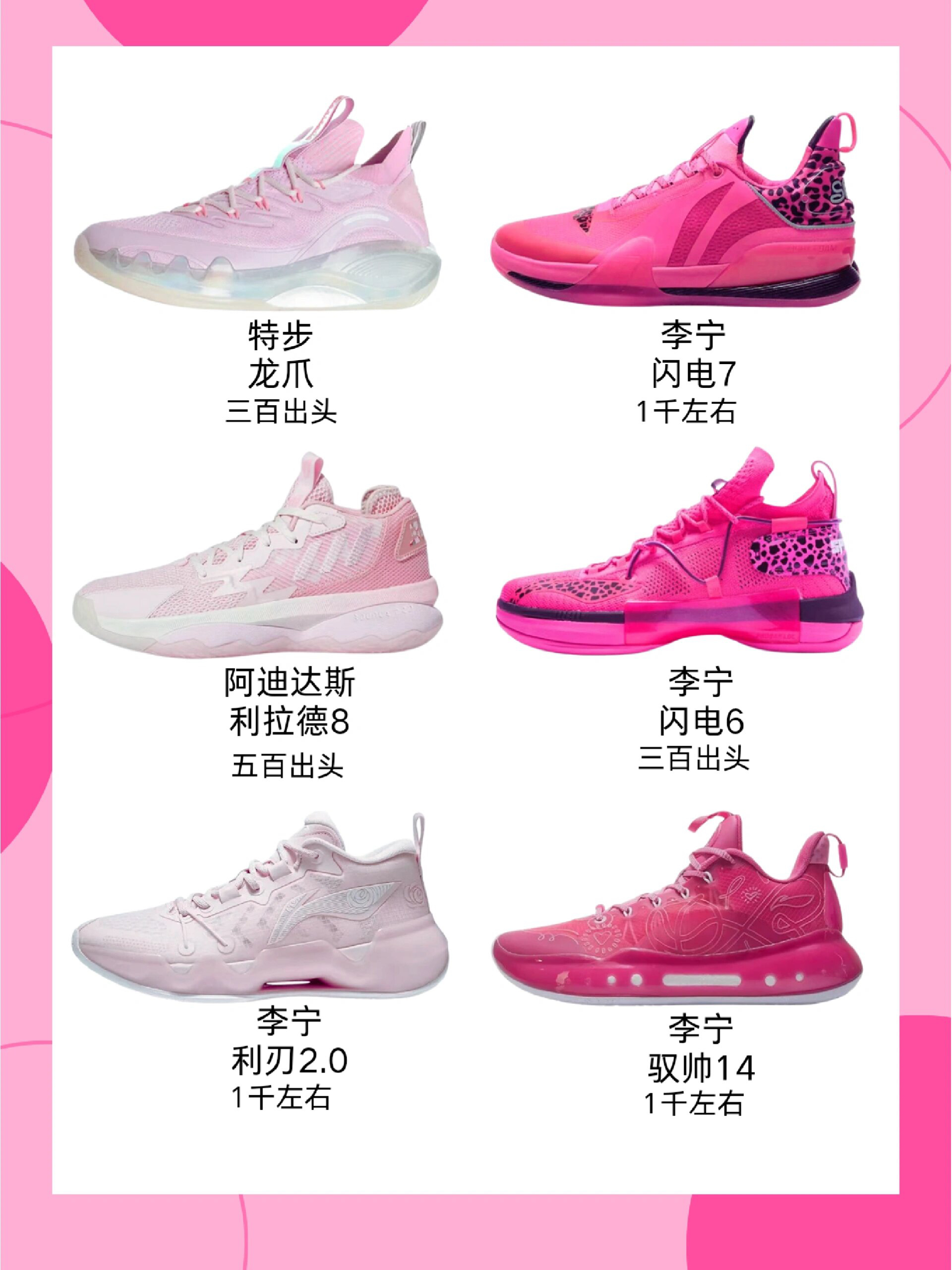 😎😎今天给大家带来的是粉色篮球鞋大合集! ! ! 粉嫩的球鞋不但能让你在球场上成为最靓的仔,还能 第一时间吸引女神的目光 同时粉粉嫩嫩的颜 色也代表着爱的含义💕 所以和情侣一起穿也是个不错的选择哦~ 评论区告诉我哪双是你心目中的“颜值天花板”吧 图源自@超继运动 侵权删