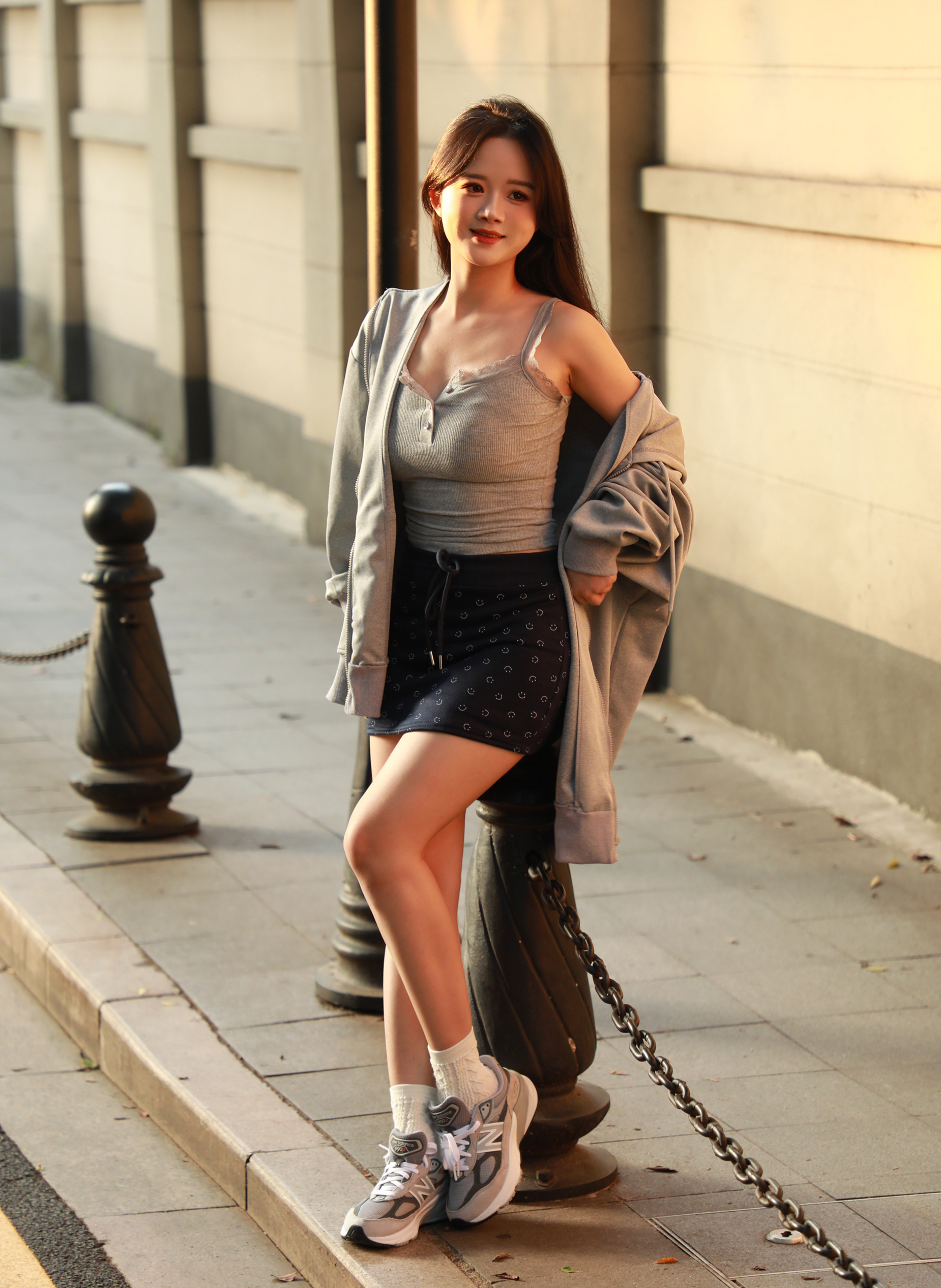 喜欢秋天的氛围感🍁 🪧韩系松弛感的户外穿搭 背心+外套+包臀裙+跑步鞋 灰色系主题真的很爱 !! 低饱和度的色彩搭配🤍 浪漫且自由的秋季休闲风 !! 🍂今天的穿搭你们学费了吗~