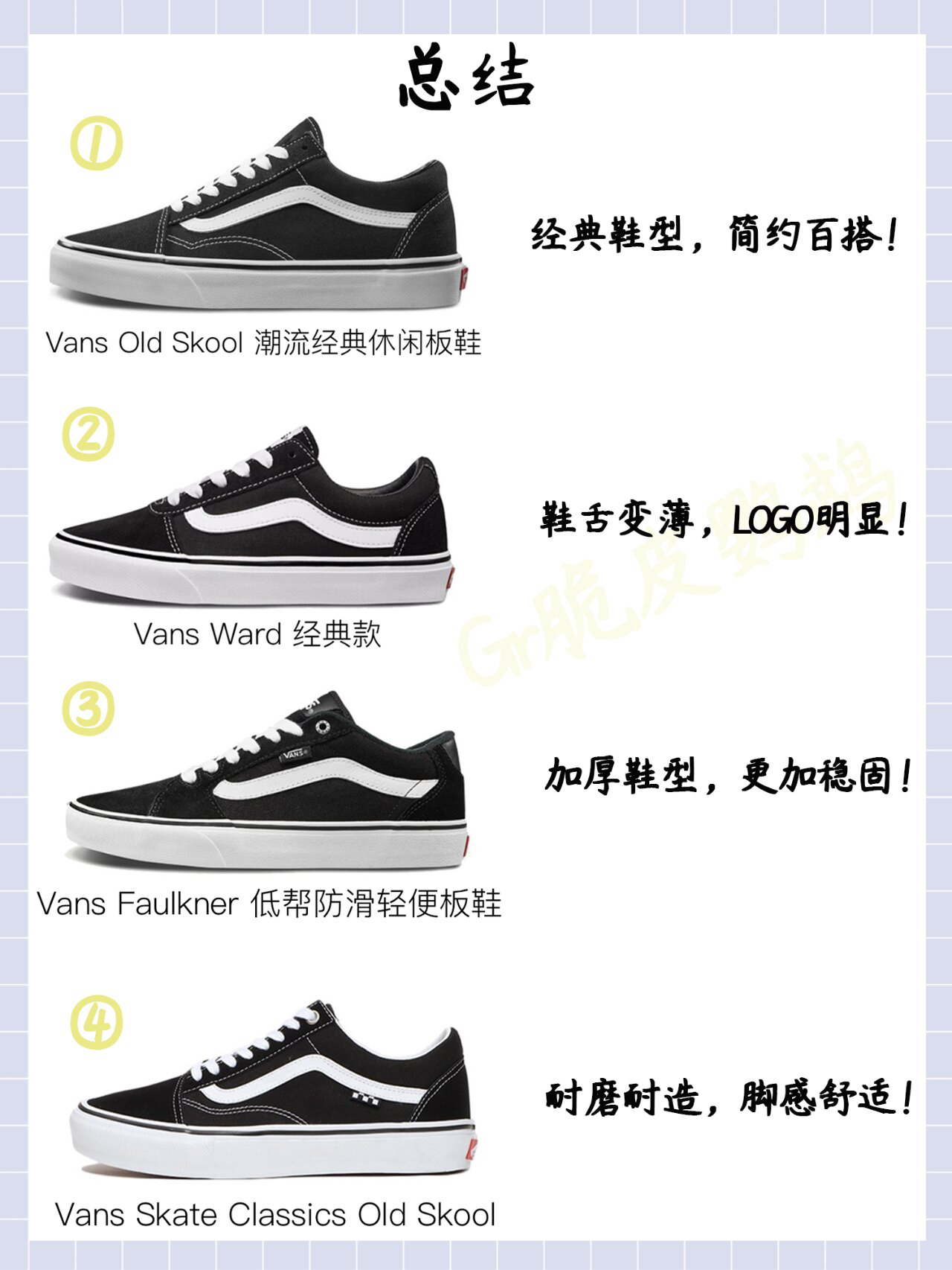 今天为大家带来的就是最让人头疼的黑白色vans!你是否也经常为选择买什么样的vans而苦恼?你是否也傻傻分不清vans的各种样式? 今天带来市面上最热销的4款黑白vans!让你从此在朋友面前成为vans渊博的人! 🧊Old Skool经典款👉🏻经典鞋型,简约百搭; 🧊Ward👉🏻休闲运动支线(对 “真正经典款” 的补充鞋型),鞋舌变薄,LOGO明显,性价比较高; 🧊Faulkner👉🏻同样是...