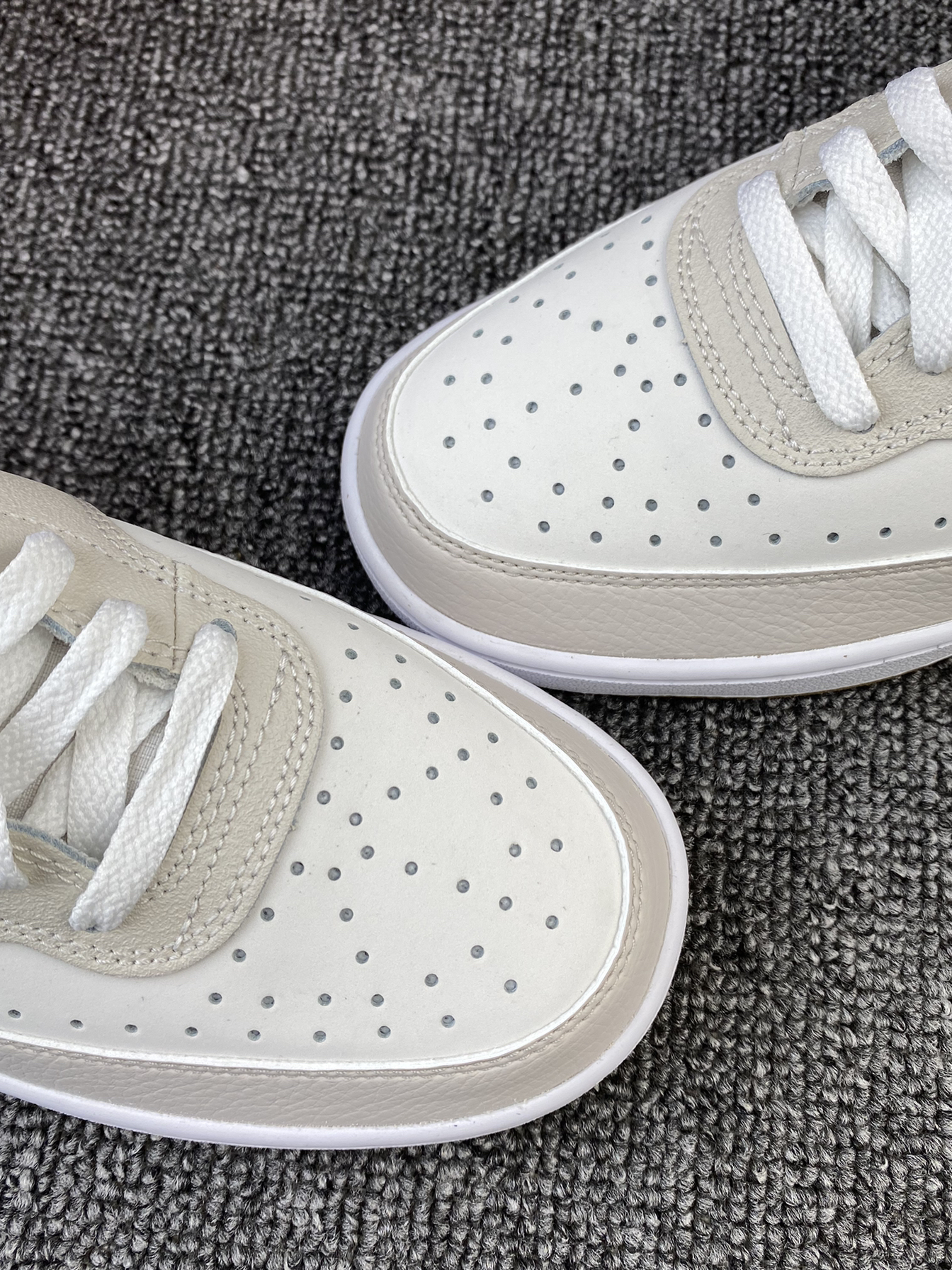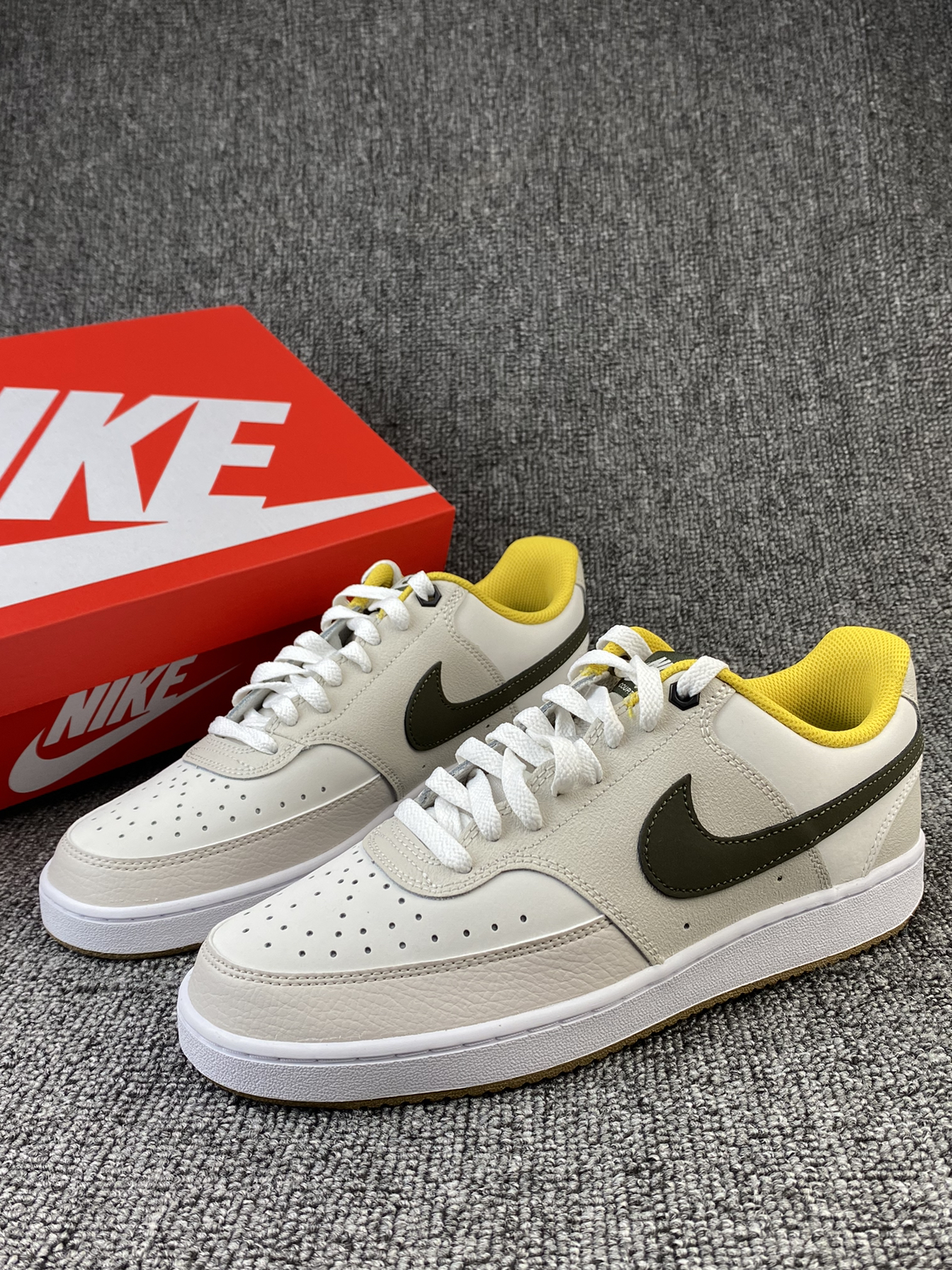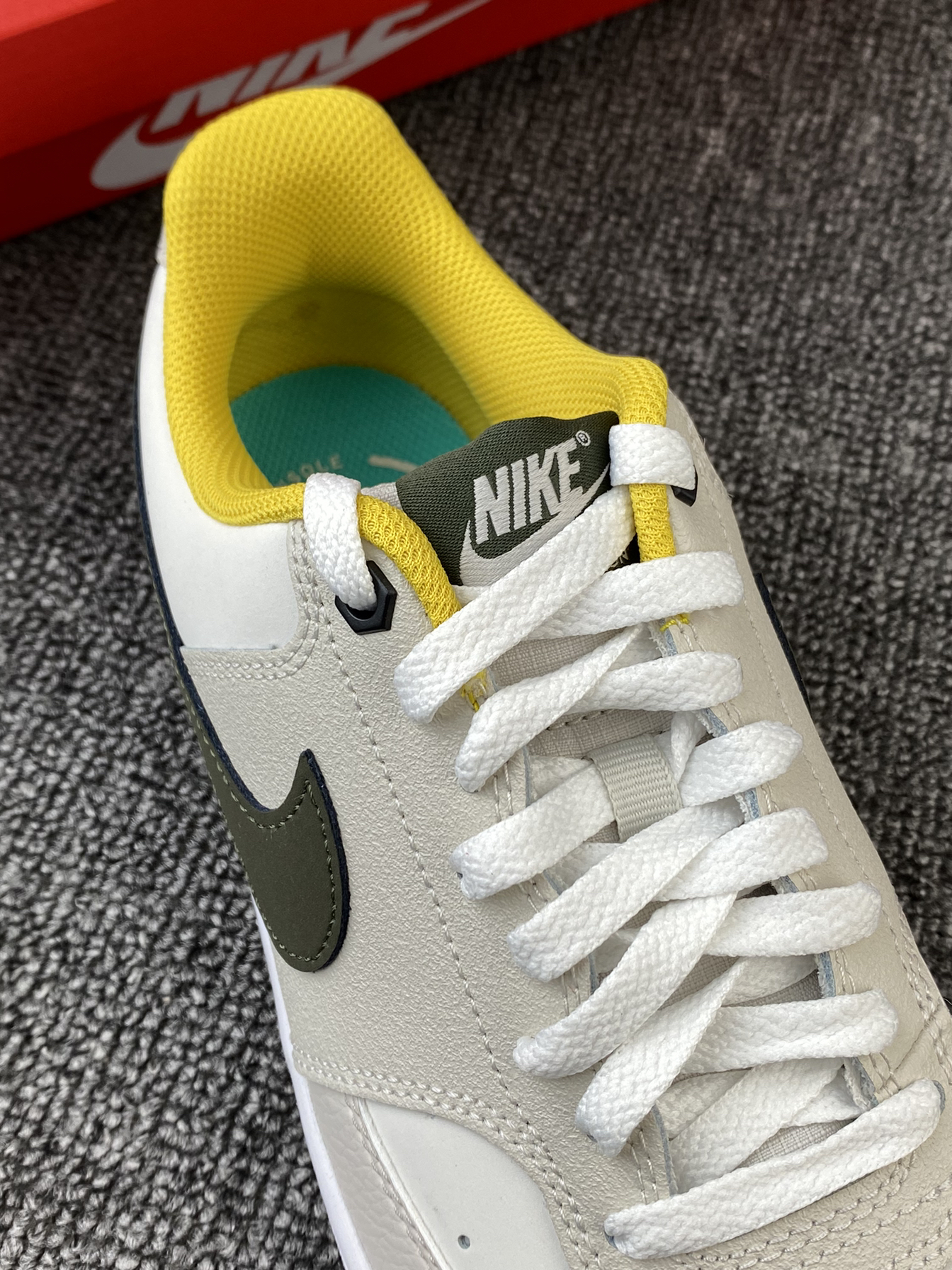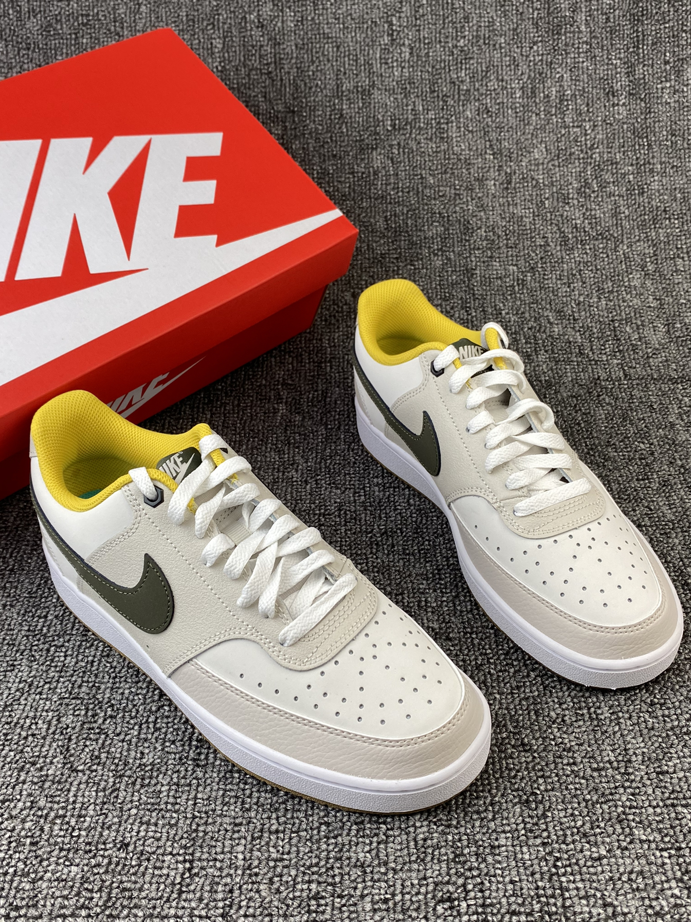 👟Nike Court Vision 板鞋 ✨Court系列真的是板鞋中的佼佼者了吧!这次的新配色依旧让我心动! 🌸鞋子整体以奶白色和浅灰色为主,鞋侧Swoosh以墨绿色点缀,同时黄色的内衬提升整体亮眼度,棕色大底收尾,整体复古又活力满满🥳平常搭配牛仔裤、休闲裤都很好看! 🤩另外鞋面是皮革材质,质感很好也很好打理,还是比较喜欢皮面的,脏了简单的湿巾纸擦拭就可以。低调又百搭的复古板鞋真的很爱!