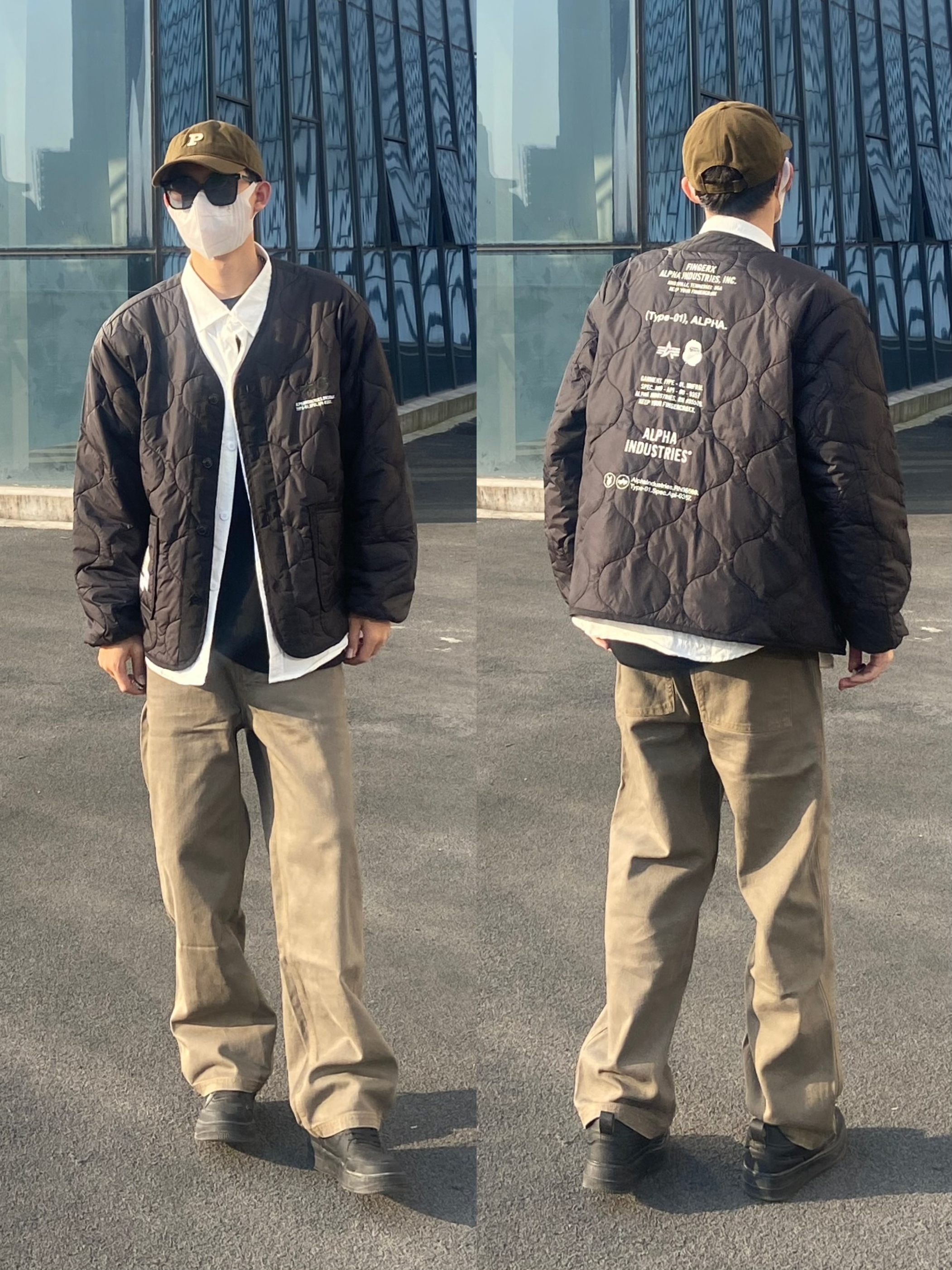 本篇笔记关联了Alpha Industries/阿尔法工业 x fingercroxx 联名款 菱形格内胆撞色无性别廓形无领美式夹棉徽标字母印花长袖夹克 男女同款 A5XJKM9007LXH 黑等商品,为用户提供真实的使用体验和购买参考。