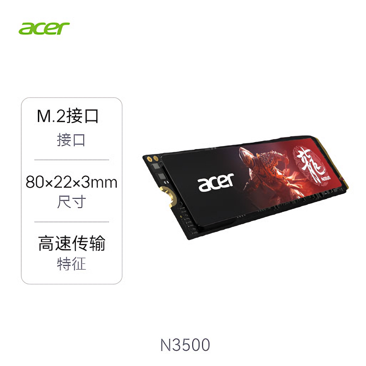 本篇笔记关联了Acer/宏碁 N3500 M.2接口 固态硬盘 装机优选 暗影骑士龙 N3500等商品,为用户提供真实的使用体验和购买参考。