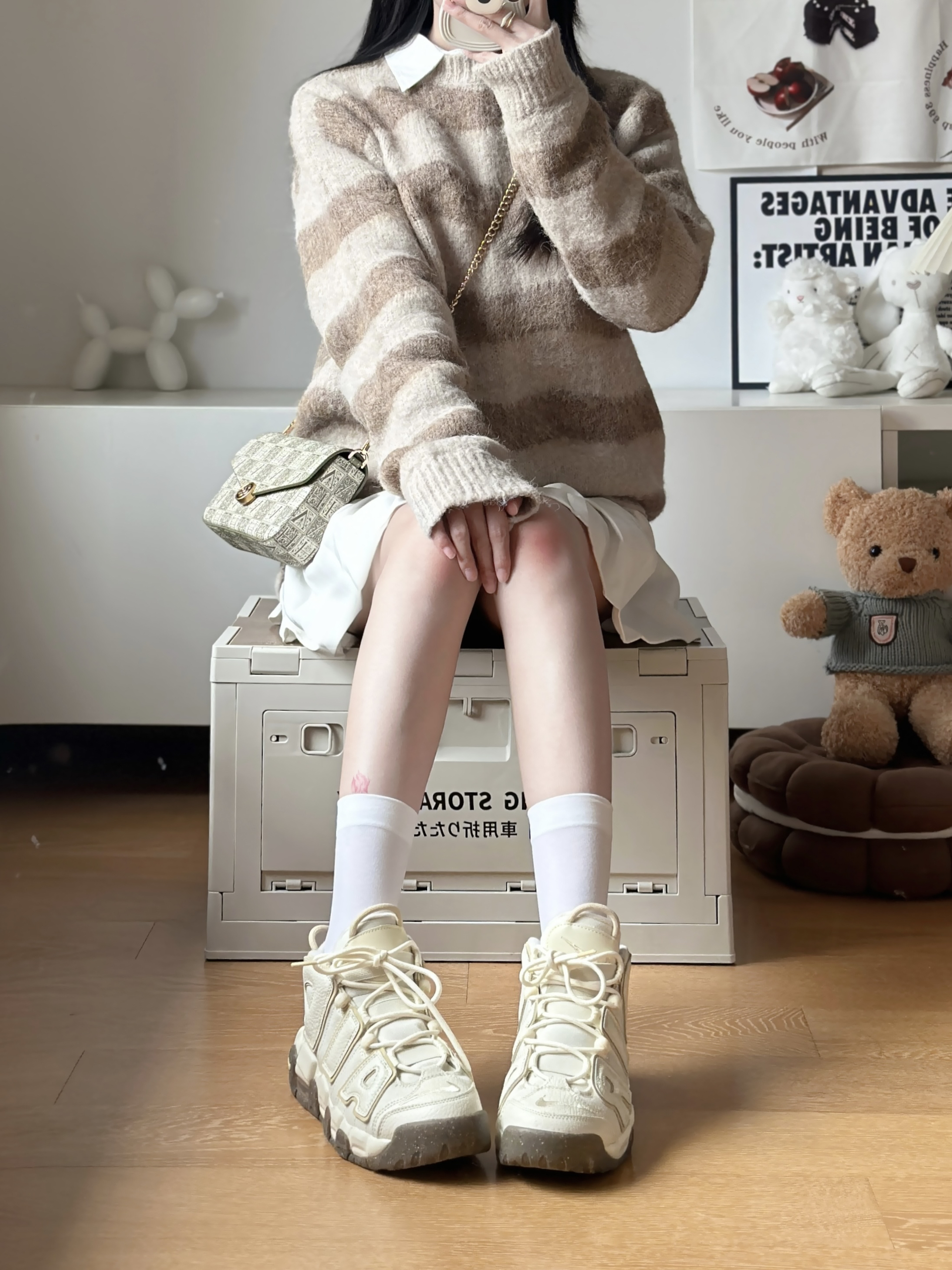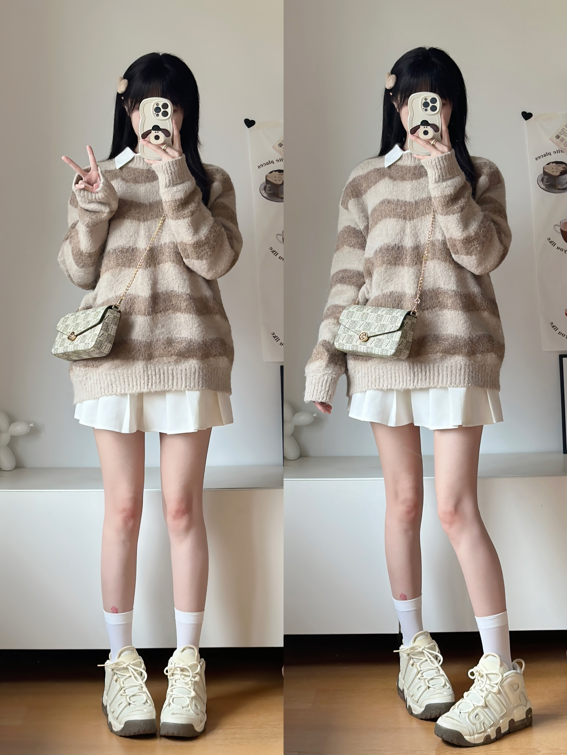身高|体重:164-42 🧍♂️ 穿搭风格:秋季毛衣➕球鞋穿搭 👔 上衣:棕色系毛衣 👖 下装:小白裙 👟 鞋子:米色皮蓬 一整套秋日氛围感拿捏~