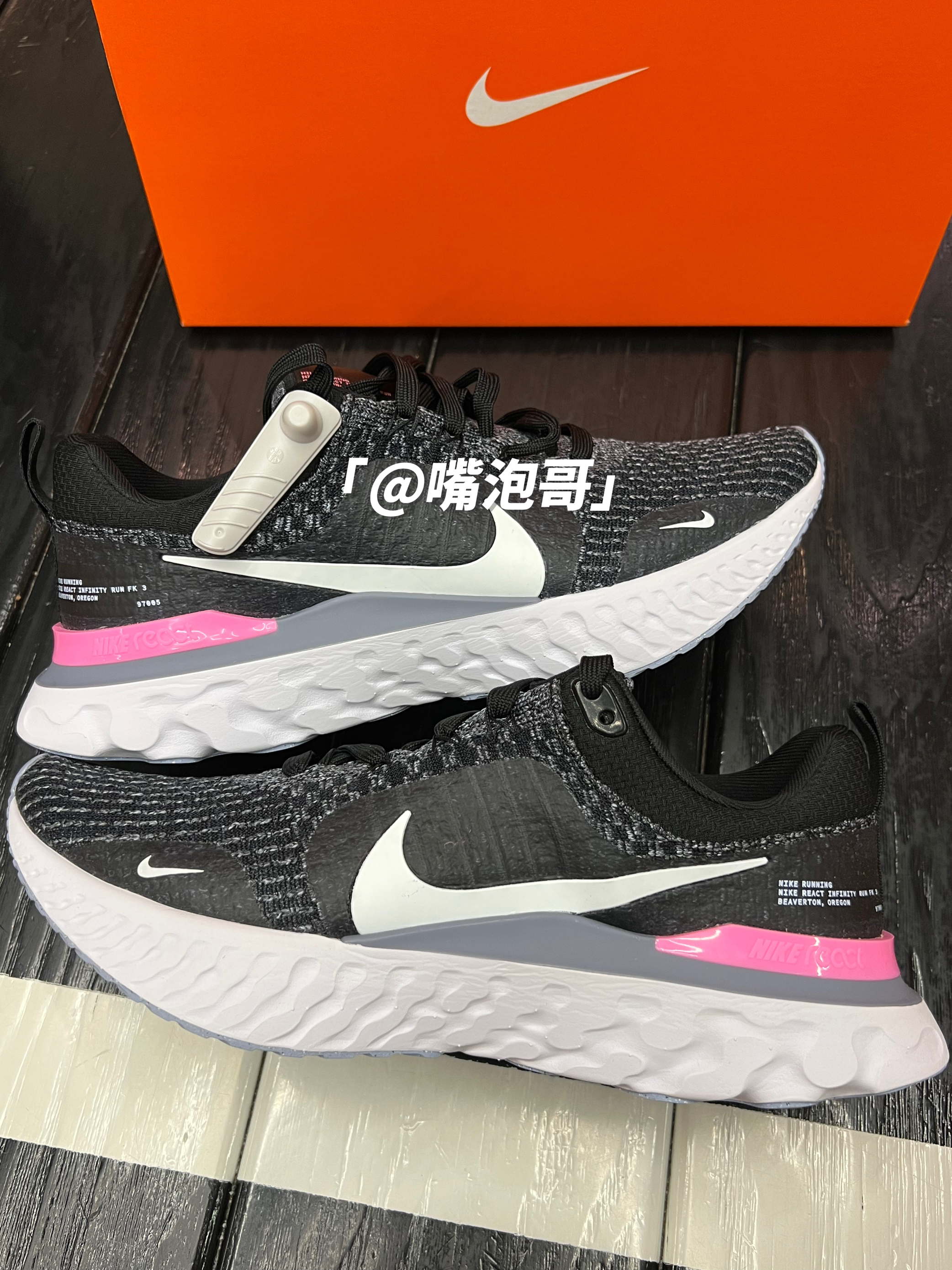 👟:Infinity React 3 黑色 简介: 鞋款是为日常跑步运动所打造,整体配色也是比较简洁,以黑白色做为主色调,又加入粉色进行装饰,使鞋款略显亮眼,织物鞋面搭配上全掌React中底,从而提升了整体舒适度,使穿着者能够更为轻松的运动。 细节: 鞋面选用了韧性感且透气的复合编织材料制作,冰丝又加入了热熔胶材料,使鞋面强度得到保证,两侧的swoosh选用了胶印材料制成,减轻了鞋面重...