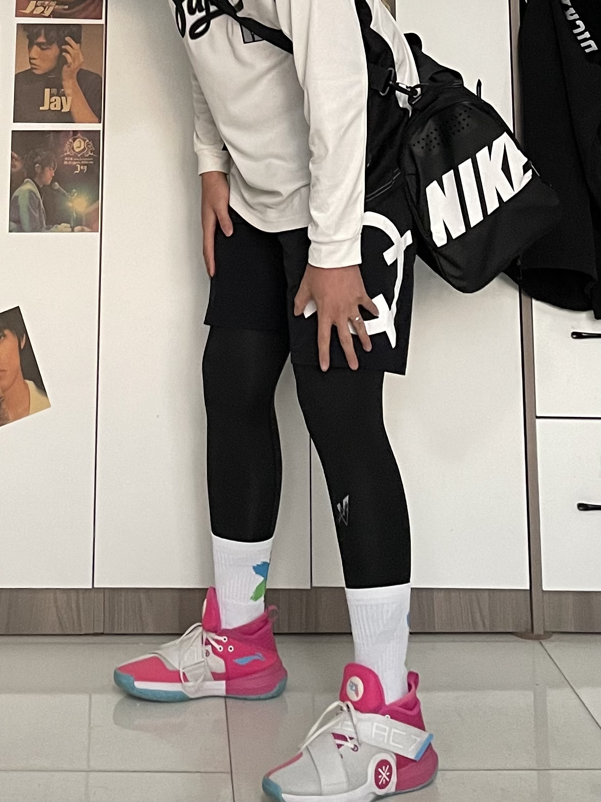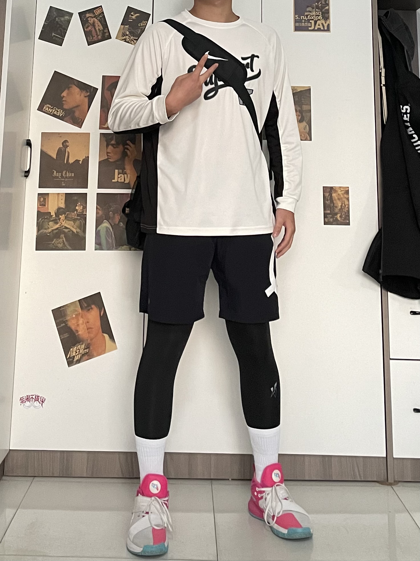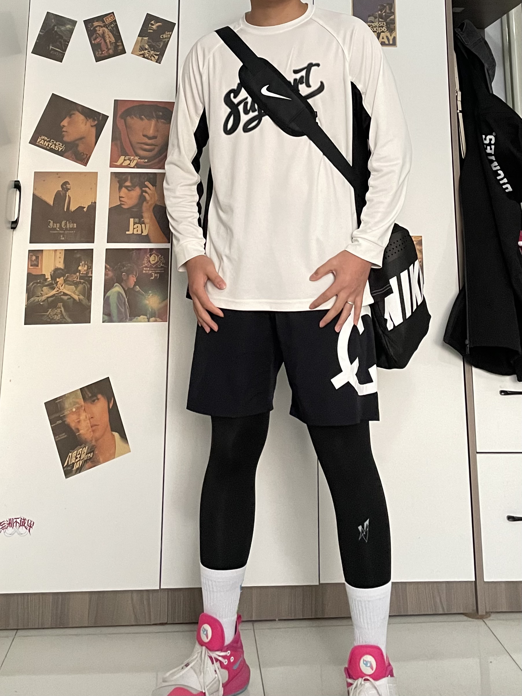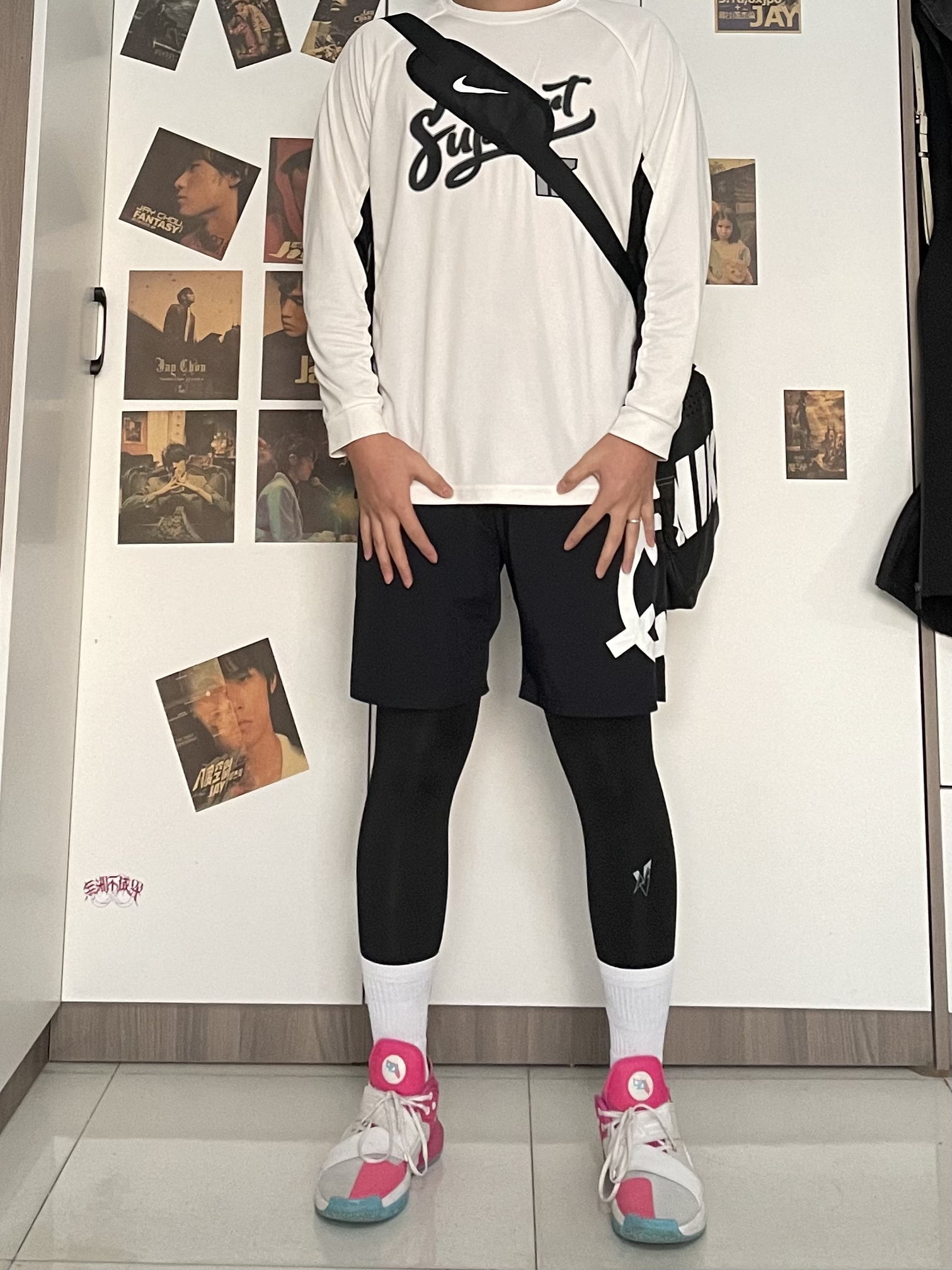 身高|体重:183cm|73kg 🧍♂️ 穿搭风格:球场运动风 👔 上衣:维动的投篮服 👖 下装:准者短裤➕维动弹力裤 👟 鞋子:李宁 韦德之道 全程7 🎒配饰:老演员 耐克旅行包