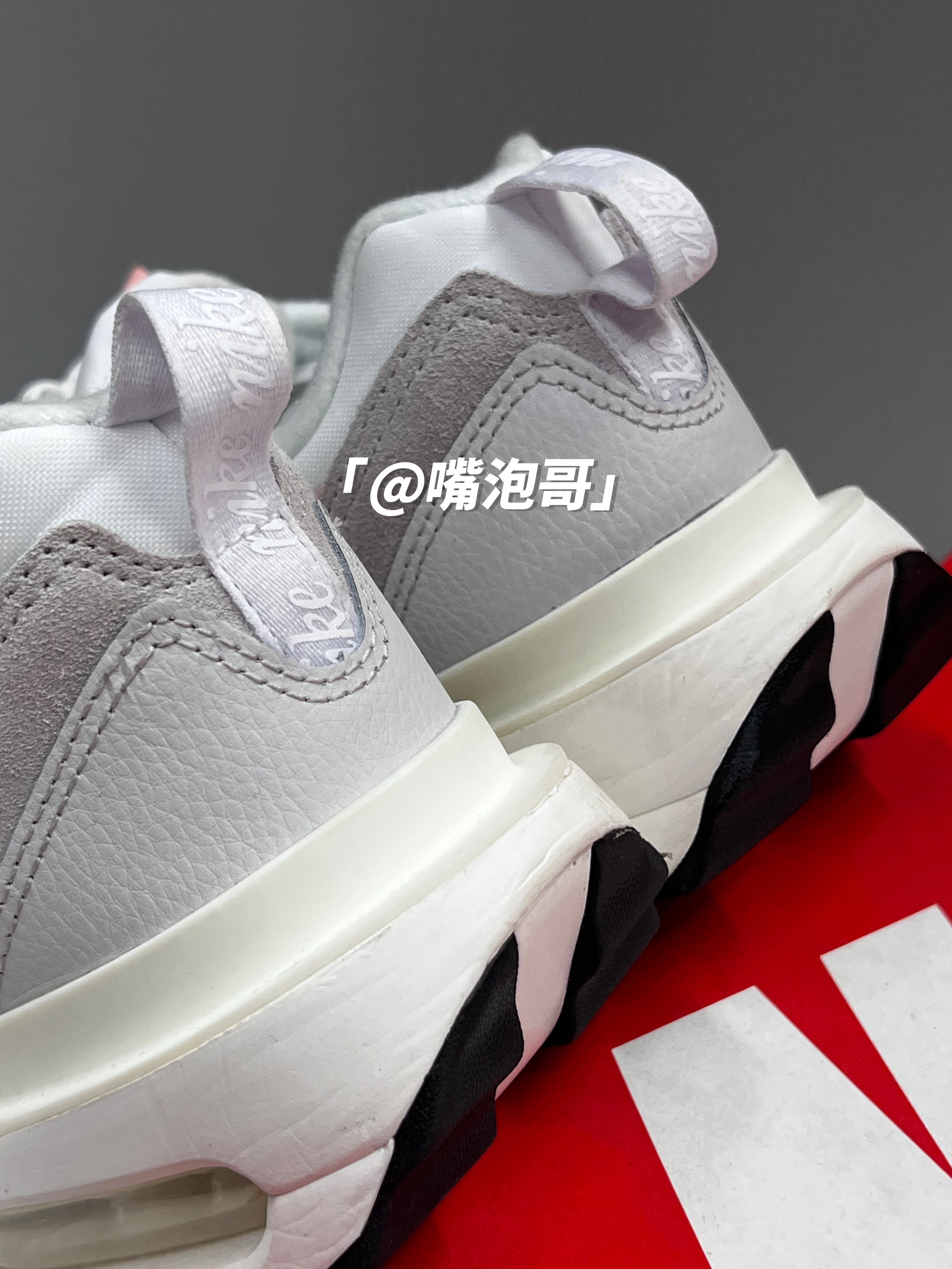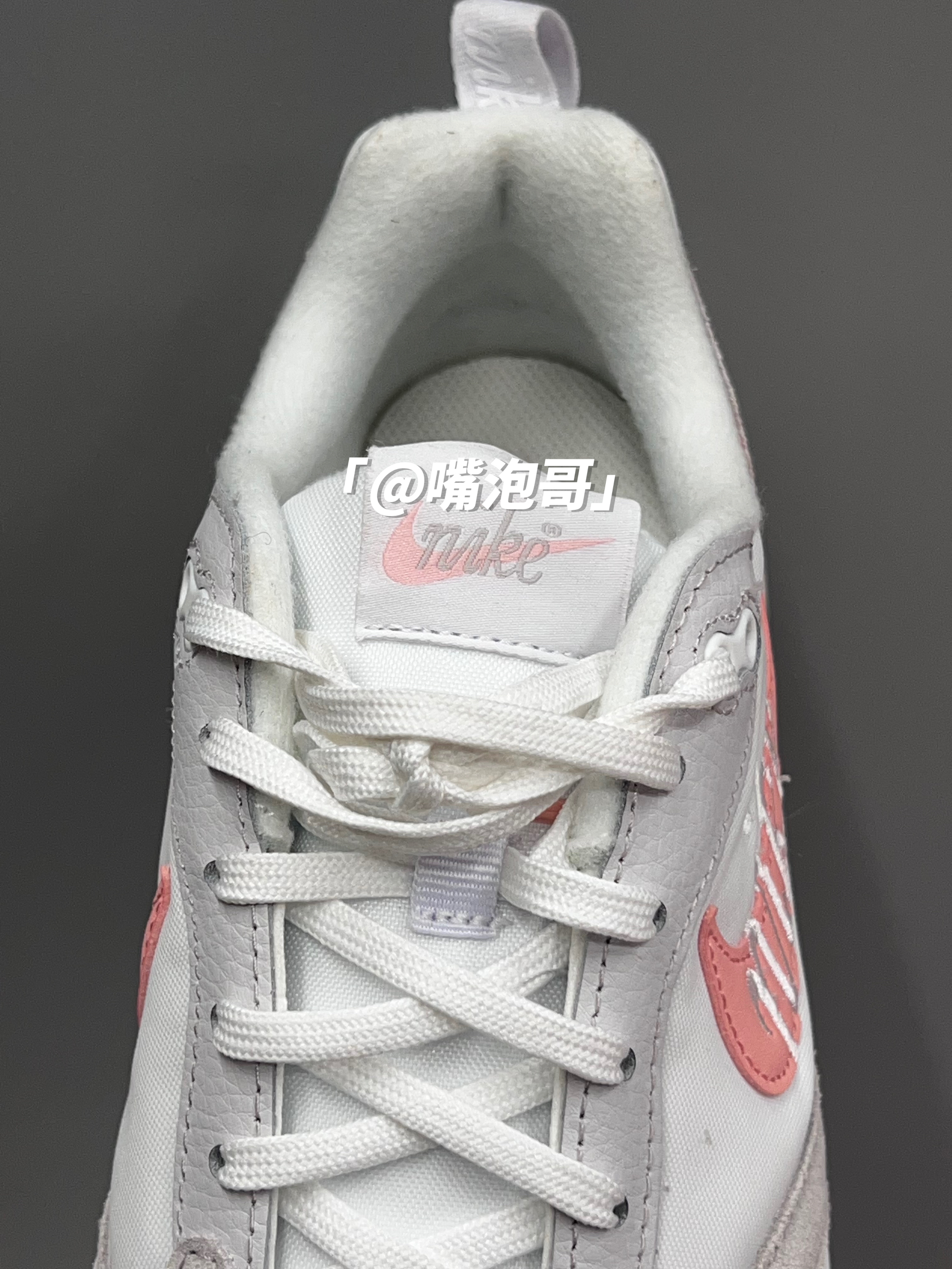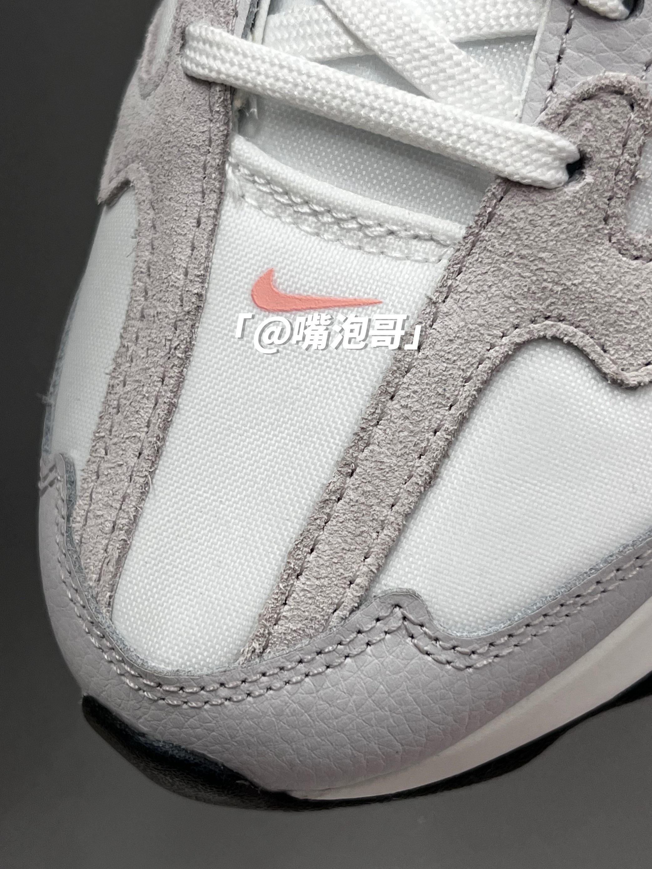 👟:Air Max Dawn 灰白色 简介: 鞋款是一双Air Max系列的休闲鞋,鞋子整体采用了白色与灰色的组合作为主色调,在日常穿搭中更易搭配,细节处加入了粉色、米色进行装饰,轻质的复合织物鞋面搭配上双缓震科技中底,使鞋子上脚有着良好的脚感。 细节: 鞋面使用了灰色麂皮与白色织物布叠加而成,不仅使鞋面具有良好的透气性及耐磨性,同时也是丰富了鞋面的层次感,鞋身两侧的swoosh选用粉...