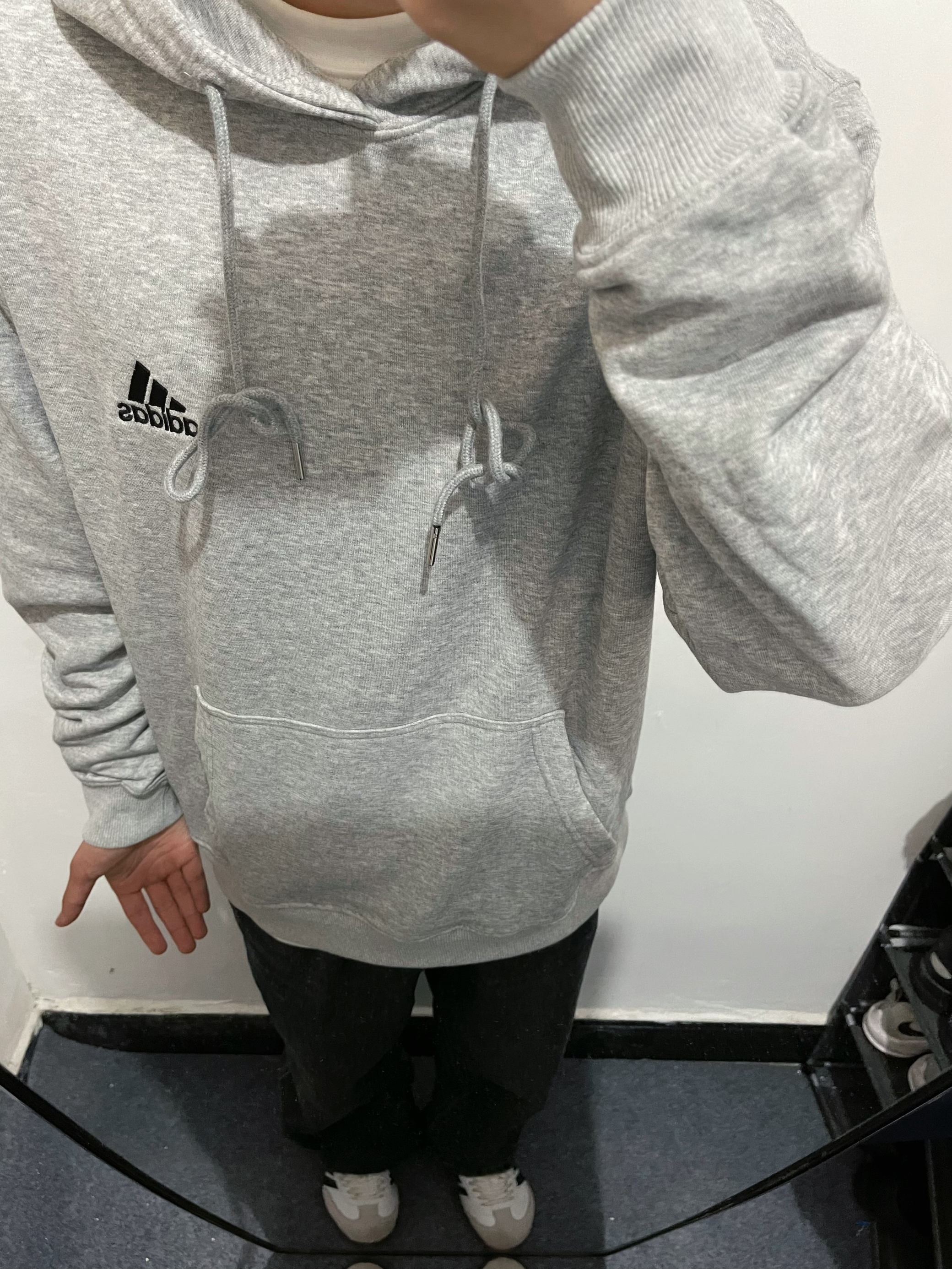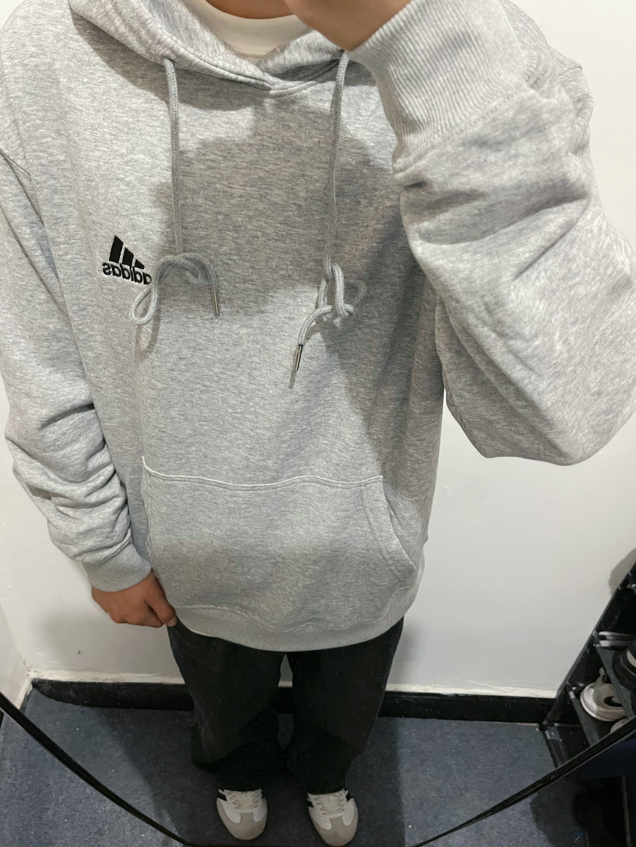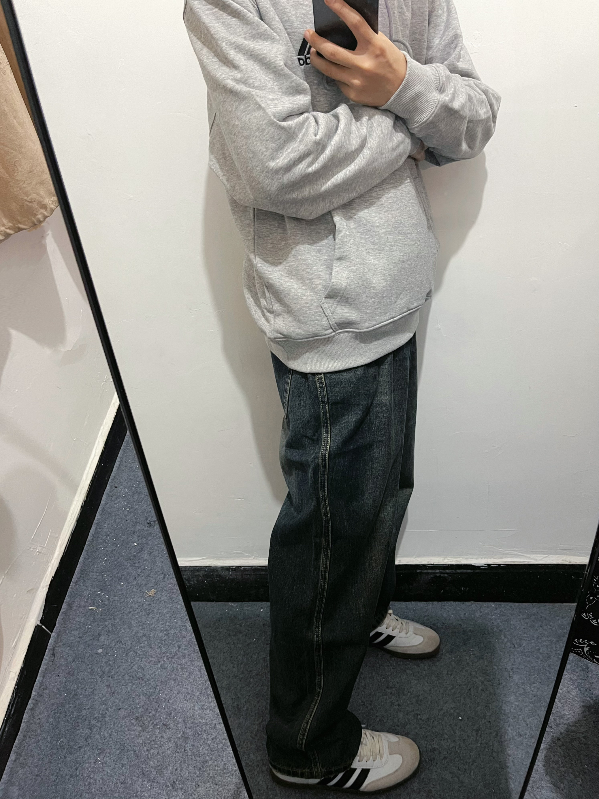 今天上身一件阿迪的简约卫衣 经典好看 下身搭配一条牛仔裤 裤子选择的是阿迪点samba 天气转凉多穿衣服