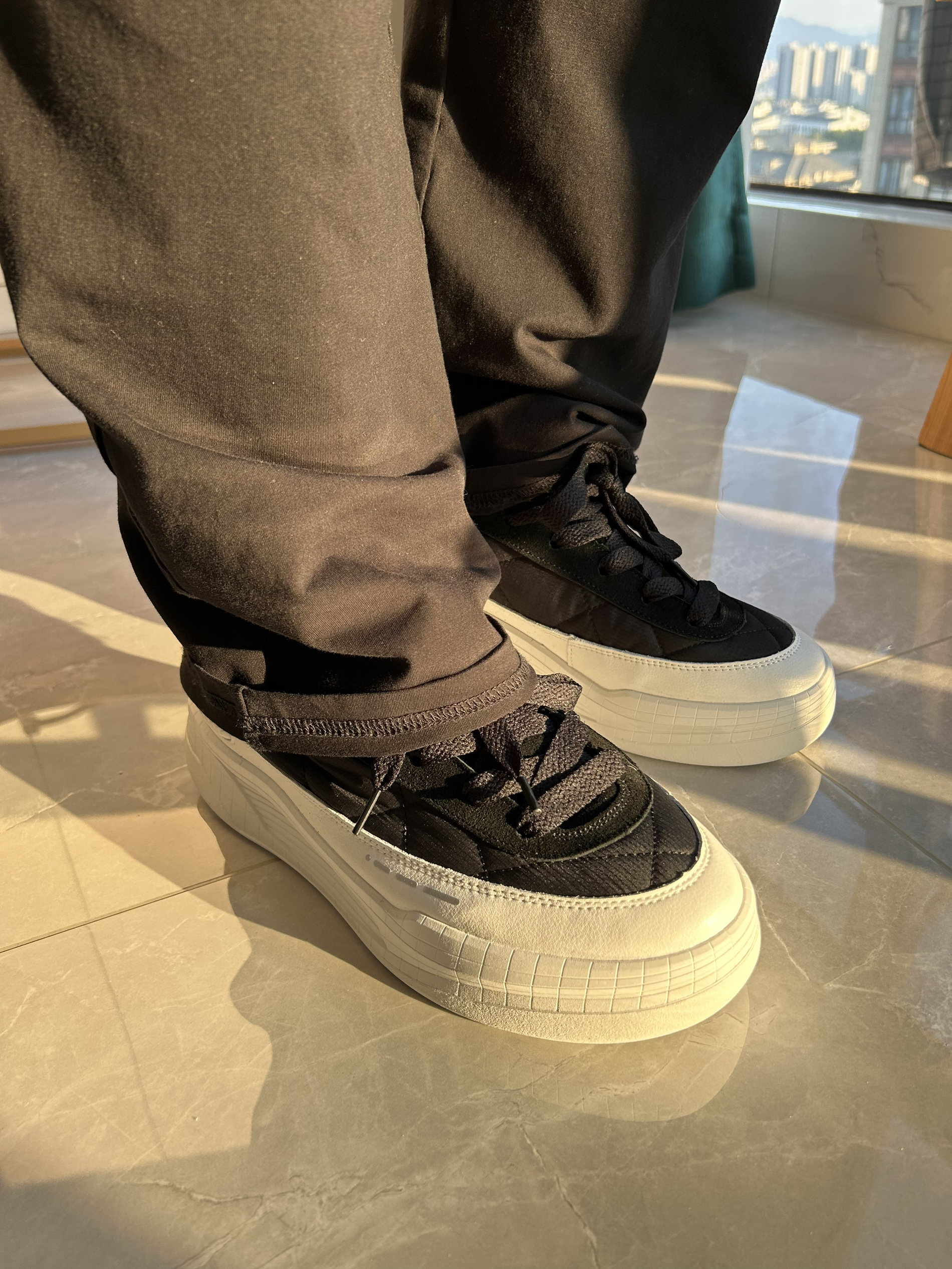 Loxki小圆鞋lite实物有点儿超预期了,鞋头圆润,整体采用羽绒服面料和皮质堆叠,质感比较好。 让我比较惊喜的是鞋头的翘头幅度,这不是我最爱的球鞋AJ3的设计风格吗?之前已经买过春夏款,这次直接入了秋冬季,加厚的羽绒材质和皮质设计,很有气质,也足够保暖和百搭! 此外,这款鞋增高效果出彩,对于我这小矮个,很有好感👍!