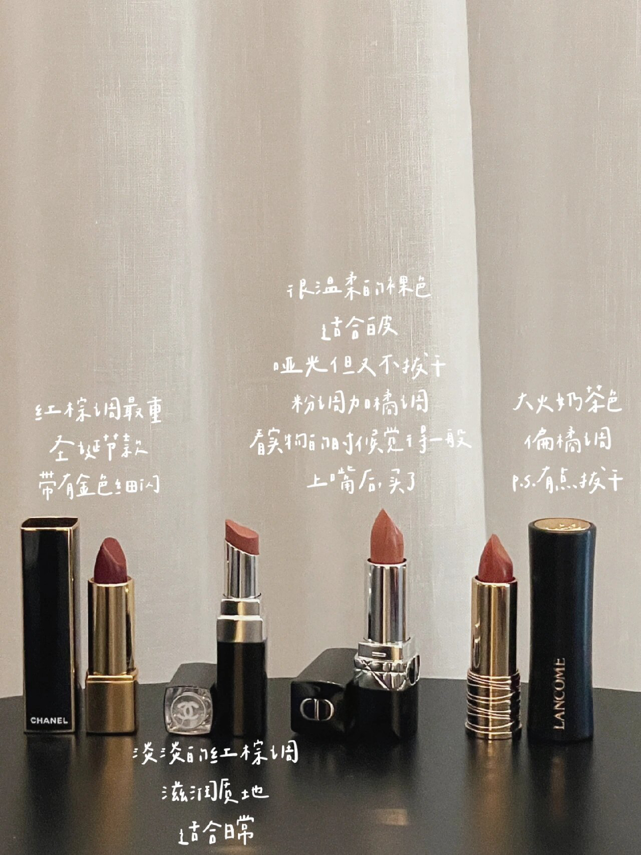 每支都是我的宝贝!! 秋冬氛围感直接拉满🍂 🛒好物名称:Nars Thrust 🤔推荐理由:我日常涂最多的一支,因为质地真的很舒服,像奶油,像急着出门的时候涂嘴巴上随便抿几下就涂均啦,而且不显唇纹,橘调的土色,日常素颜也ok 🛒好物名称:Nars Aragon 🤔推荐理由:好朋友推荐给我的,用了才知道为什么这么火,红茶色就它了,好涂匀 🛒好物名称:Chanel 166 🤔推荐理由:我的第一根...