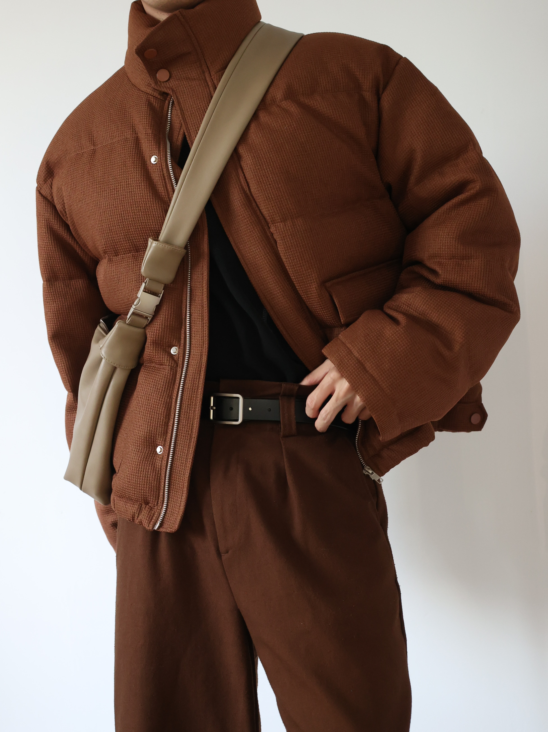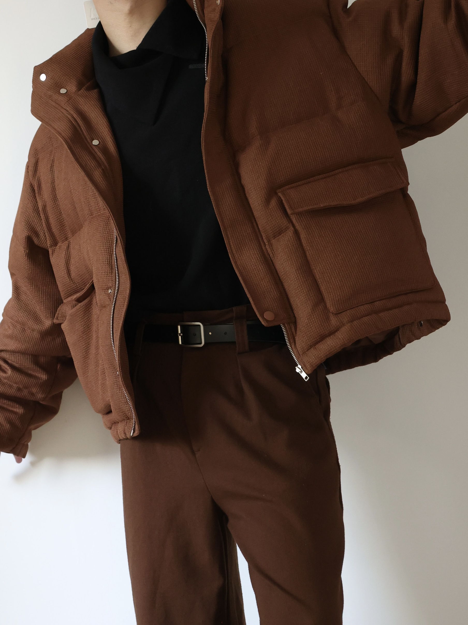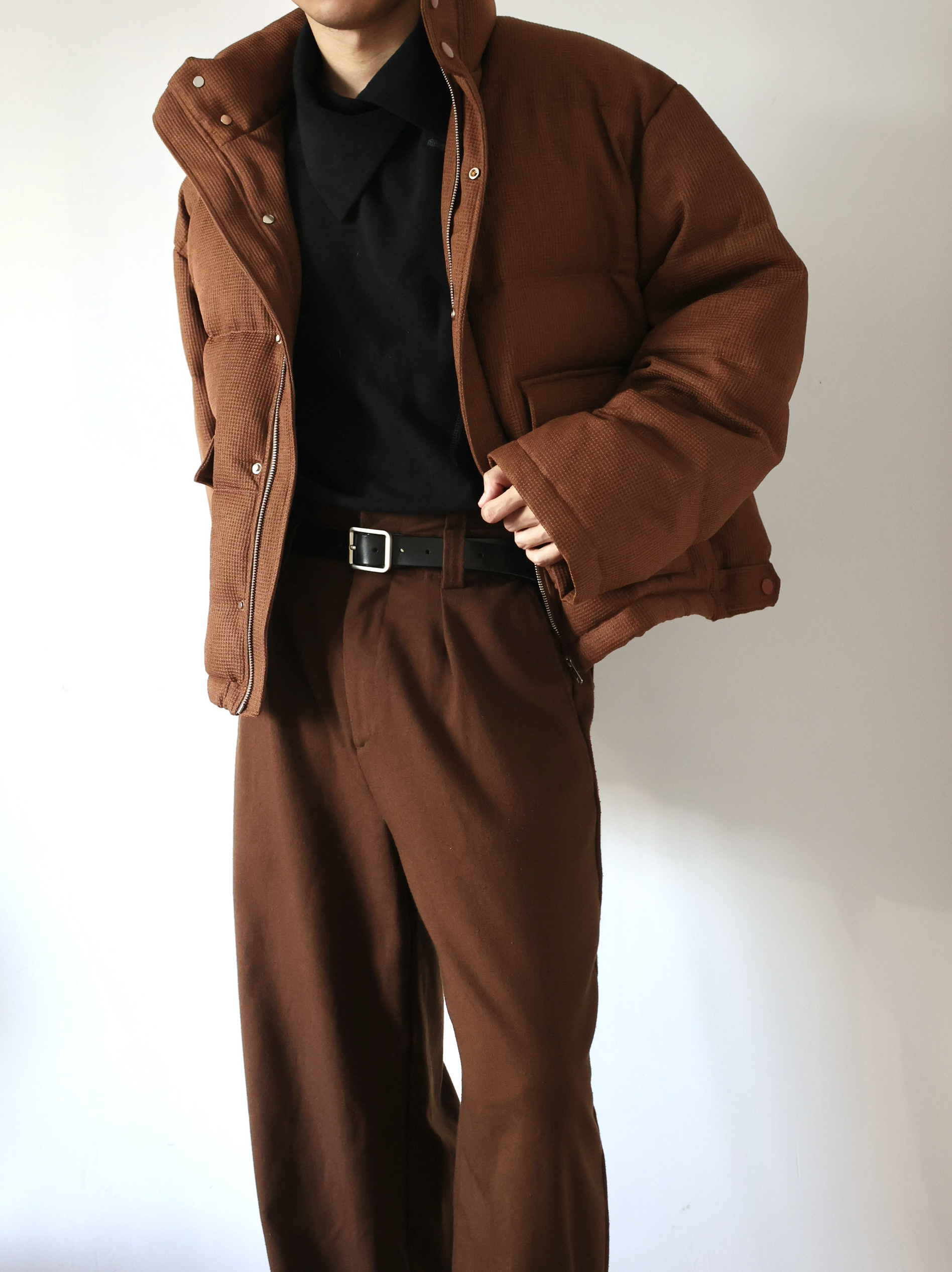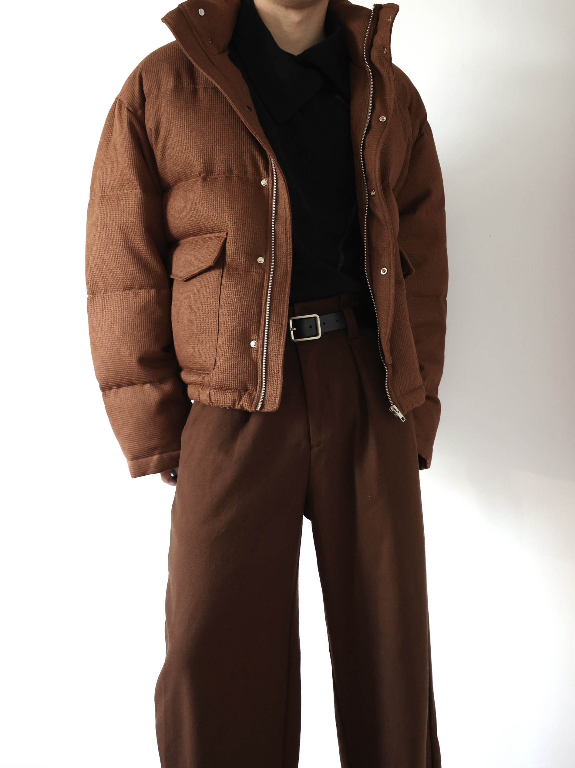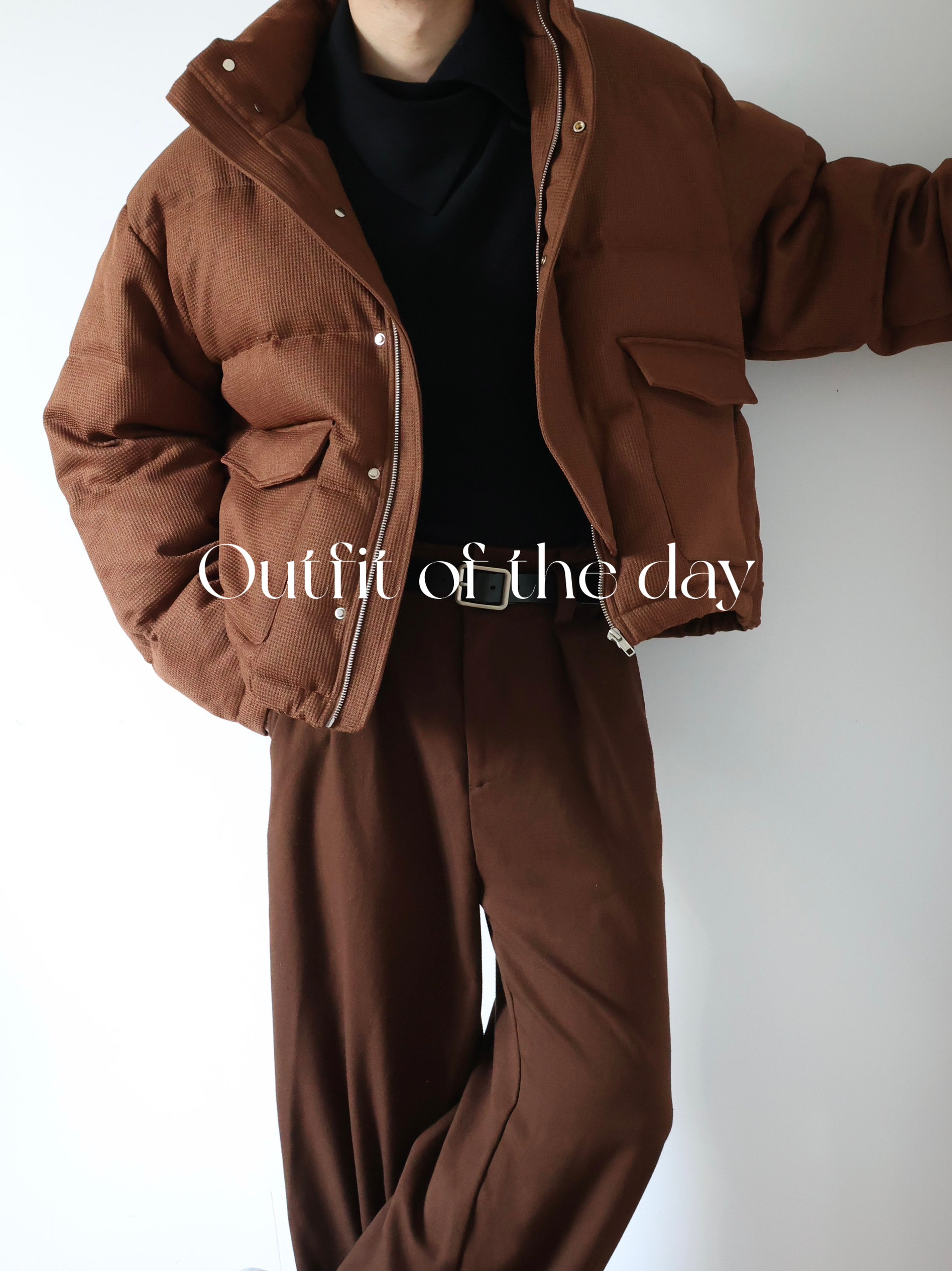 秋冬来点羽绒服穿搭 紧身内搭加阔腿西裤,修饰身形 这样穿很廓形的外套也不会特别臃肿啦