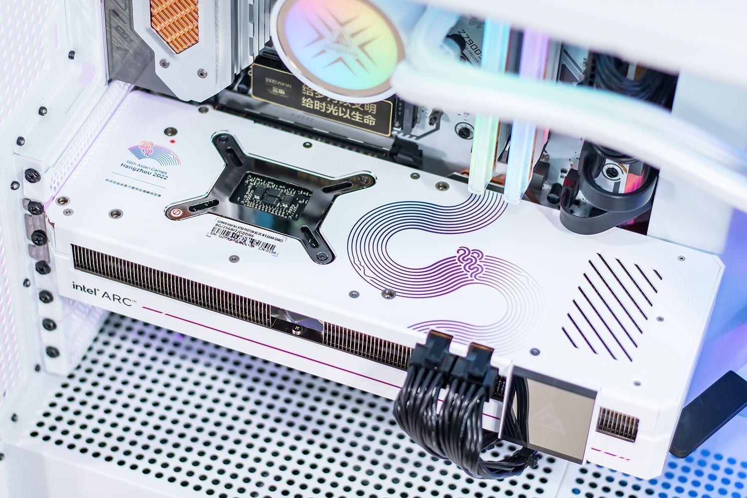 蓝戟Arc A750 Photon 8G亚运联名款显卡以白色为主色调,并融入了不少杭州亚运会的设计元素,低调美观且极具辨识度,还具备一定收藏纪念意义,素雅的外观适合搭配浅色系主机,铝合金材质的背板使其更稳固且提升散热效能,显卡搭载多维散热系统,散热风扇支持智能启停技术,得益于三个散热风扇与五热管的散热配置,将内部热量快速传导出去,即便在烤机满载状态下,核心也能保持在较低的温度,同时其噪音控制也做得...