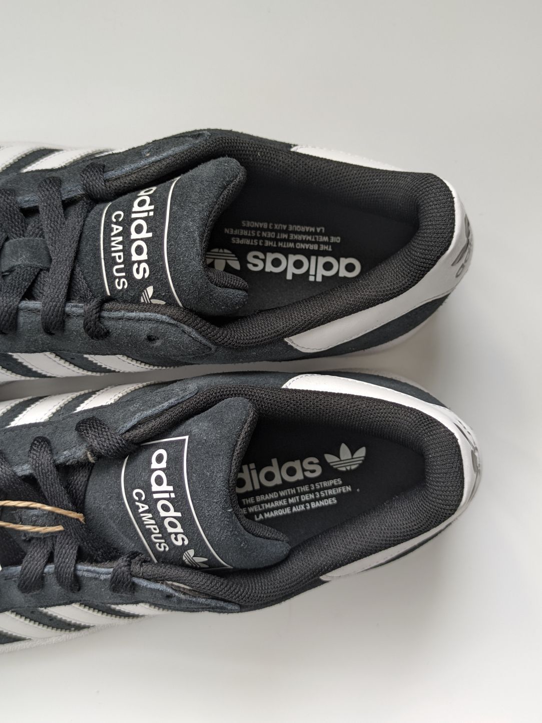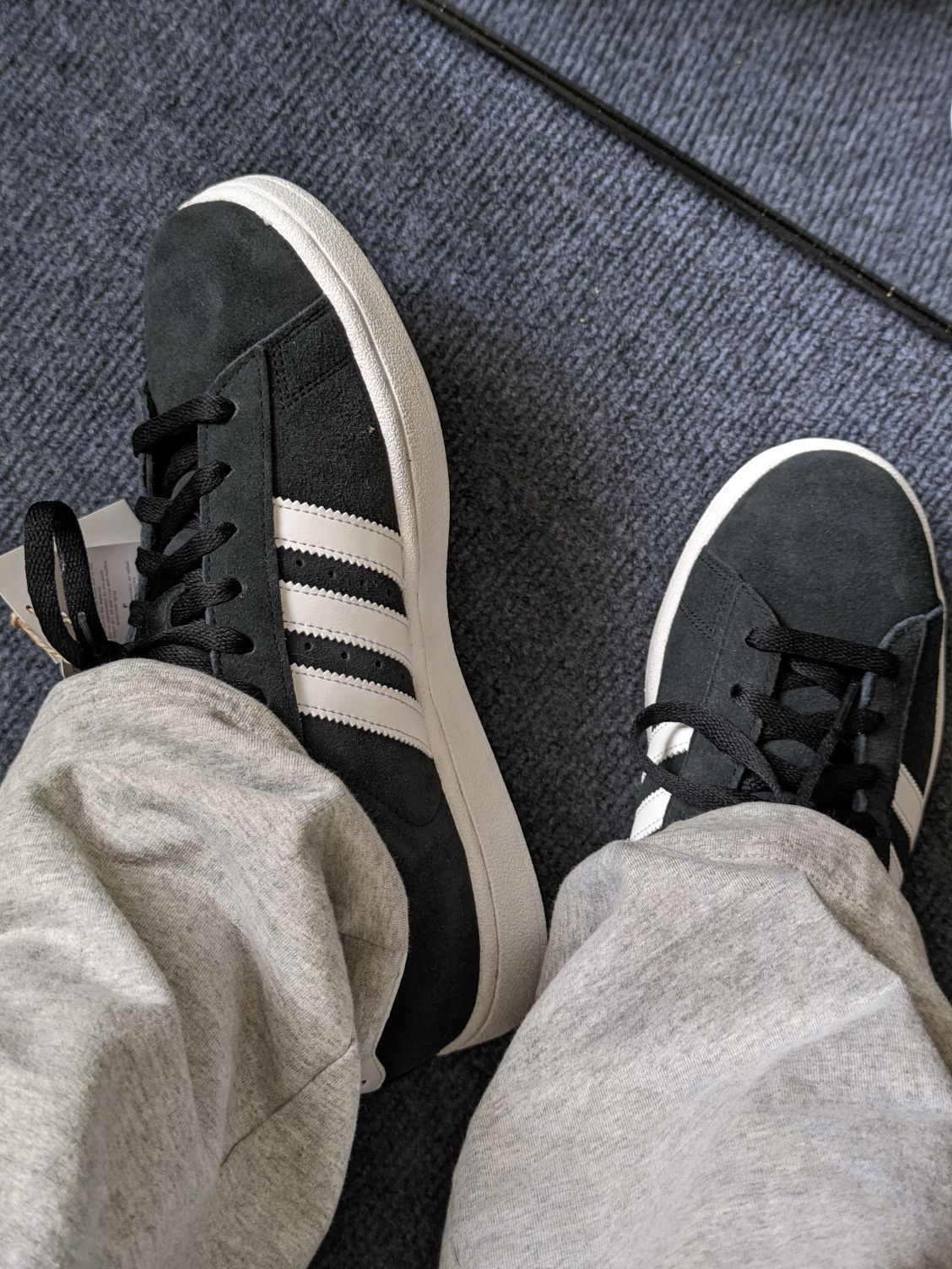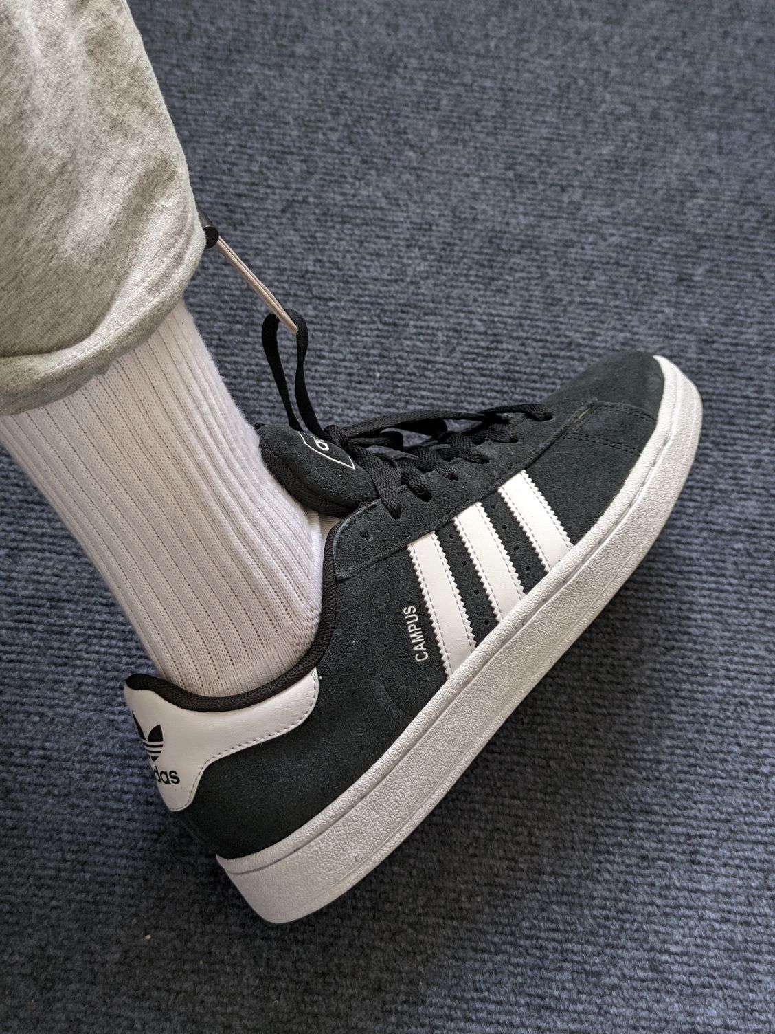 👟球鞋名称:阿迪达斯campus2黑色板鞋 🔍分享理由: 鞋面全是黑色麂皮很有质感 黑白配色经典搭配。 🤔整体感受: 秋冬季穿搭需求增加,这样一双板鞋确实挺实用的