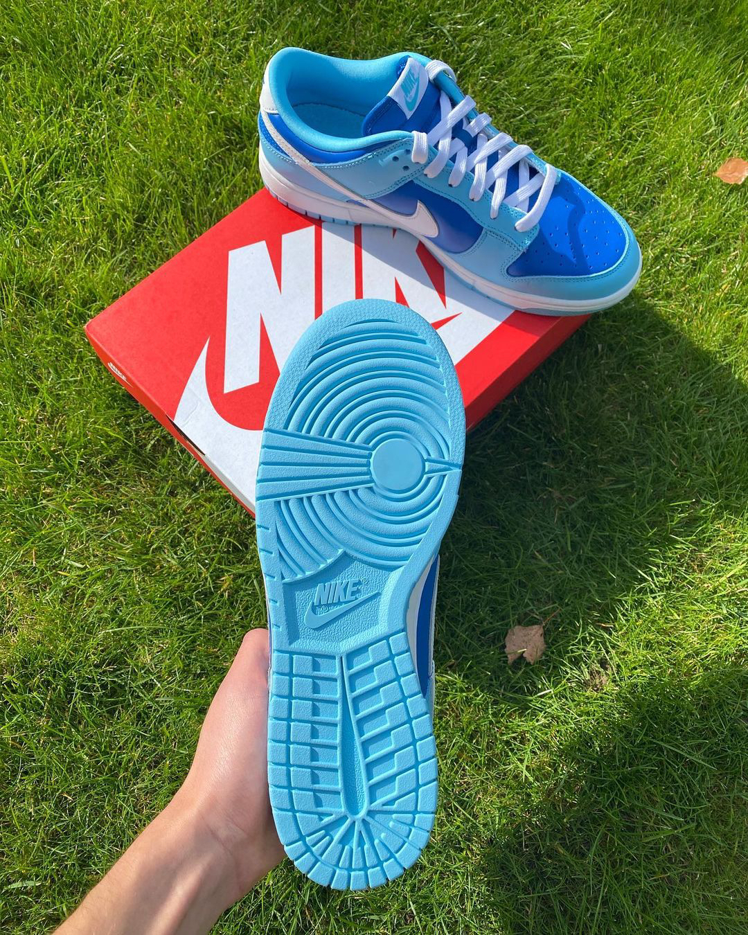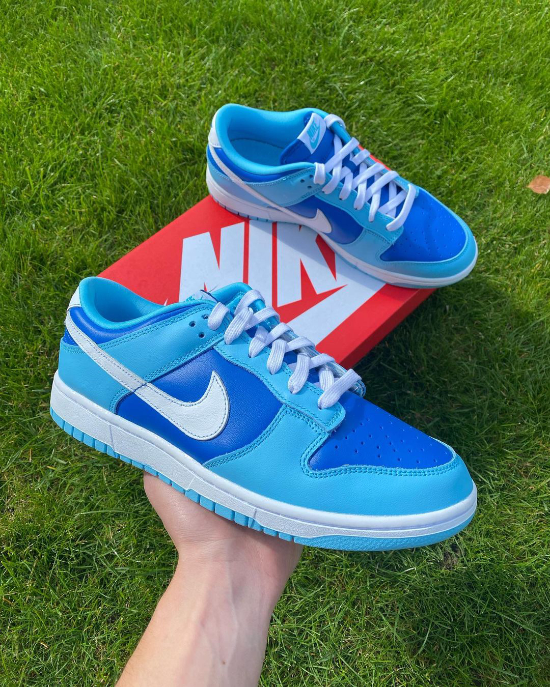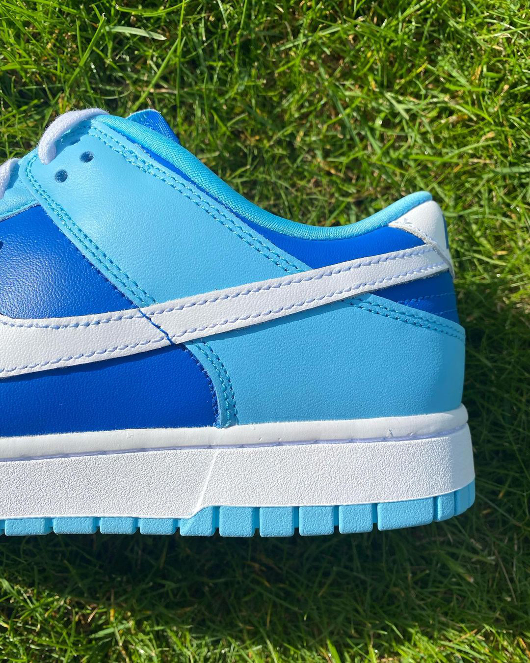 鞋名:Dunk Low Retro QS "Argon" 蓝色 外观及细节: 这是一双很有辨识度的低帮Dunk 板鞋,鞋子鞋用了不同的蓝色组合而成,很具有夏日清凉感,而且全软皮革制作而成的鞋面比较的有质感,平的时清洁起来也是比较容易,左右两侧的swoosh logo是白色皮革制作的,搭配上深浅不一的蓝色,又有种蓝天白云的效果,织物制作的鞋舌,透气性得到了保证,白色中底搭配蓝色大底,鞋子的层...
