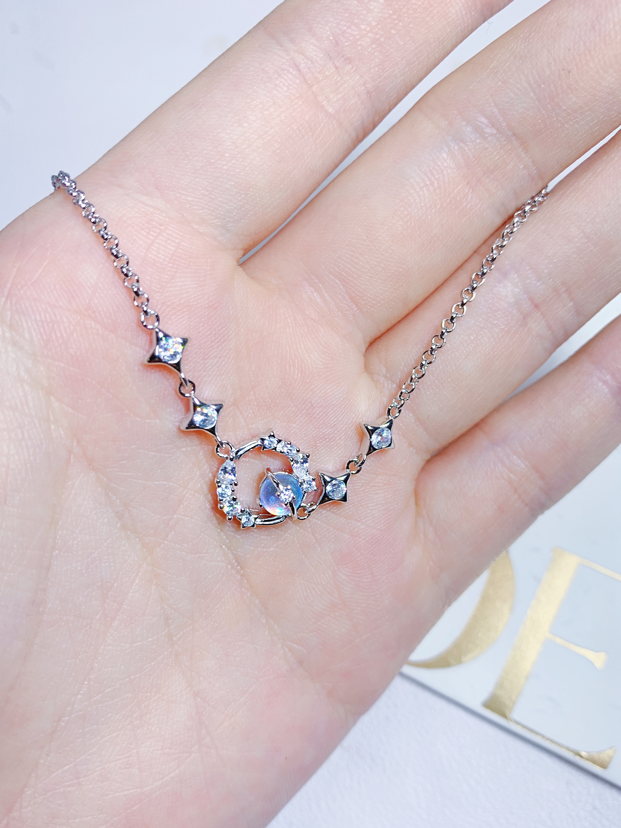最近被种草了这个手链很久了,果断入手啦,到手的时候真的很喜欢💕 设计元素是冥王星和卡戎,寓意真心相守。 戴起来真的很好看,闪闪的,而且很百搭,怎么戴都好看,很好搭配。 材质是s925 银材质,镶嵌了锆石💎和月光石,超闪✨超好看! 包装我也很喜欢,简约大方,又很有质感,拿来送人也很不错!
