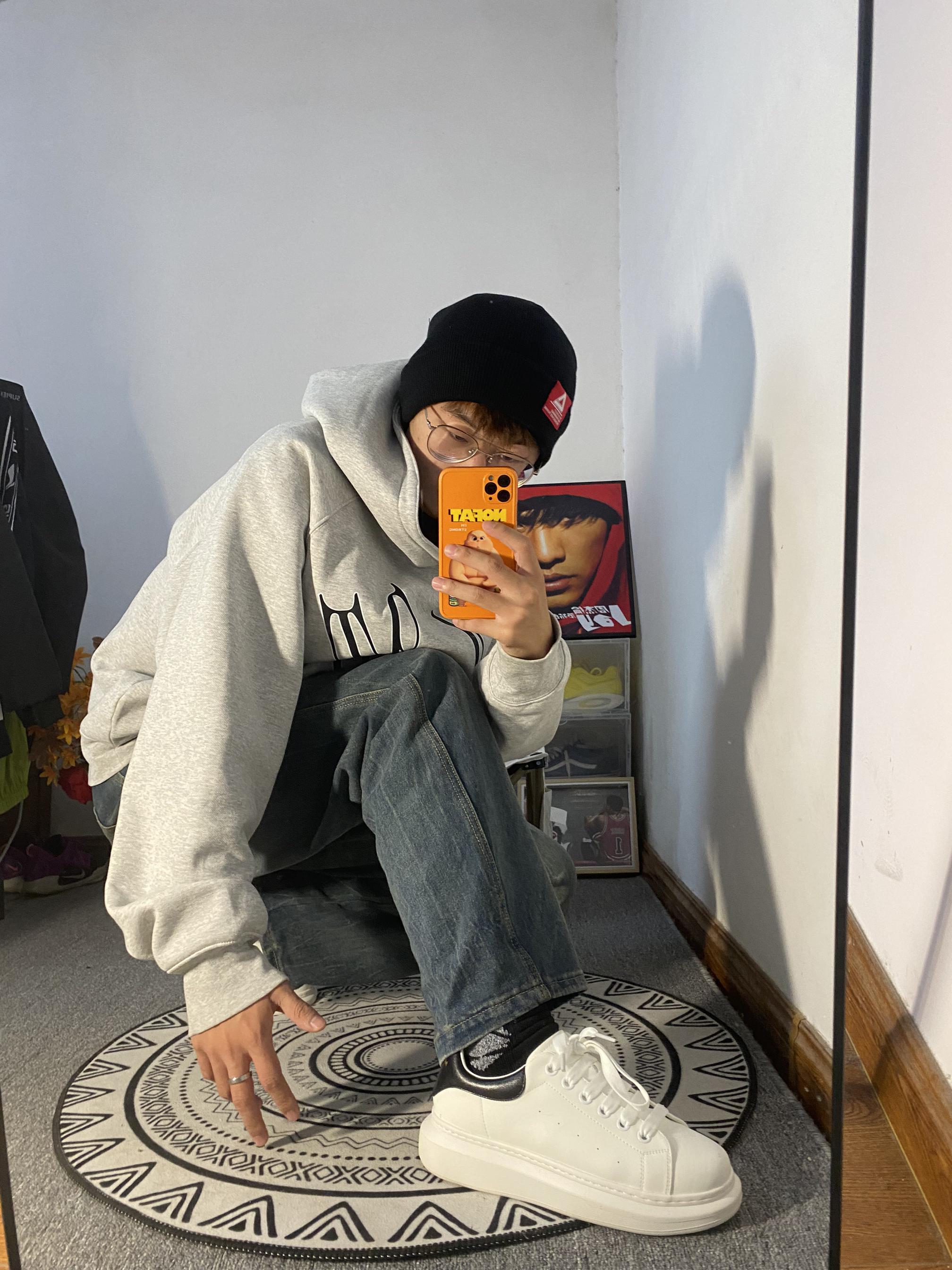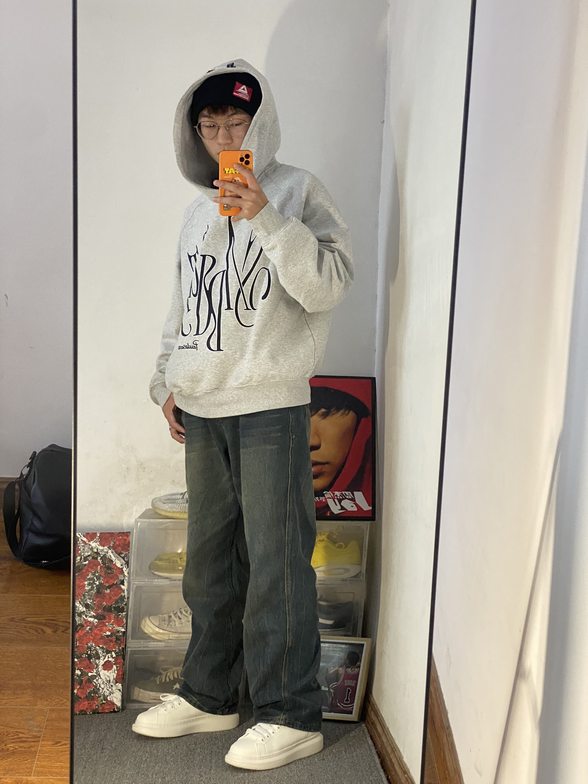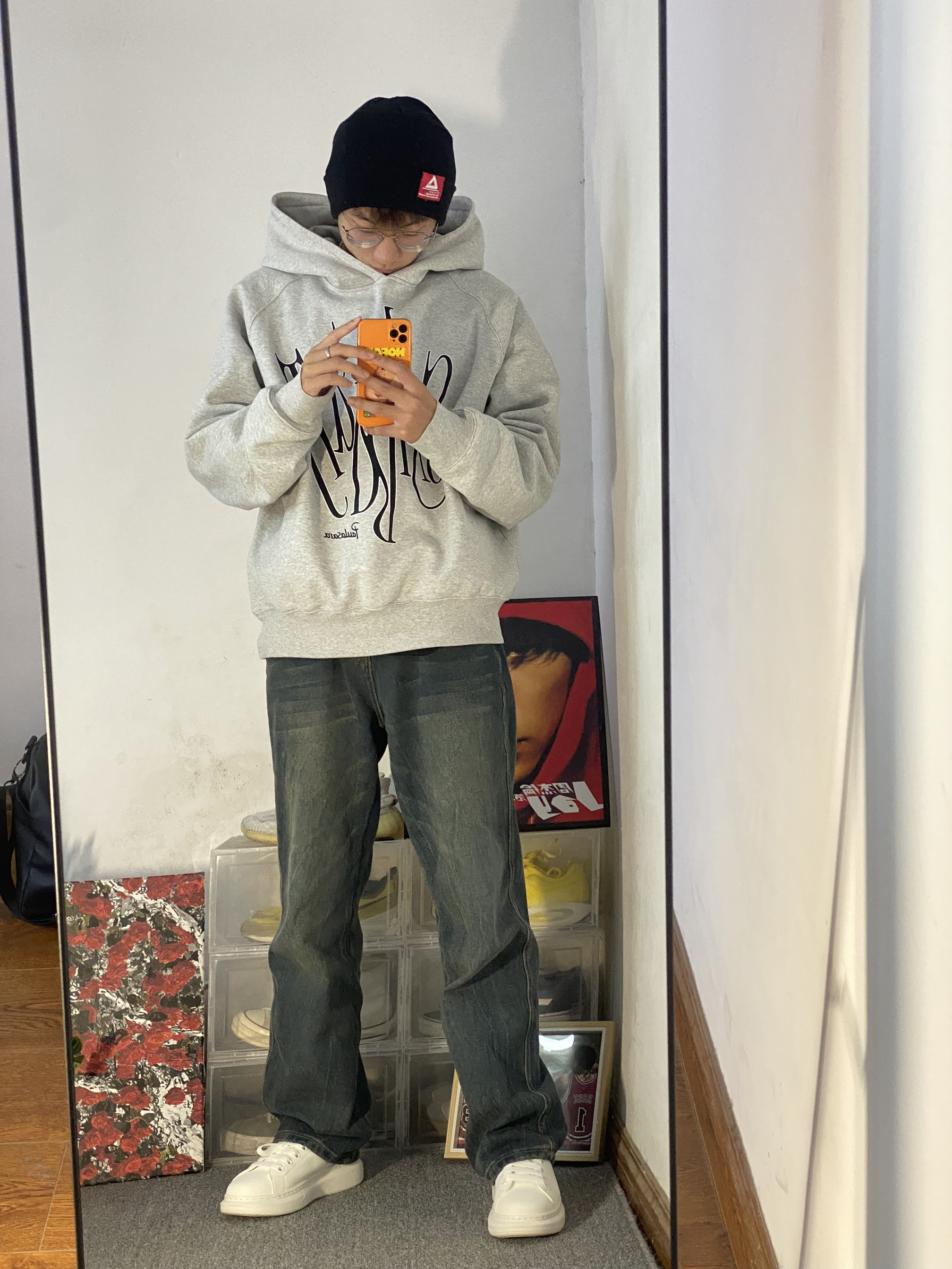 🔥冰美式穿搭分享 🧢天气降温真快 每到秋冬天我我都要带绒线帽 今天头上戴的是匹克logo车标绒线帽 保暖效果不错主要是好看显脸小 — 👔衣服是一件灰色美式大码卫衣 版型宽松 里面还可以穿可多件衣服 加了一层薄绒保暖效果不错的 — 👖裤子是一条宽松牛仔裤 修饰腿形的效果不错 裤子的颜色是我喜欢的类型 — 👟鞋子是一双侯明昊同款小白鞋 它的底非常的厚人踩上去比较软挺舒服的🔥 身高/体重:178/130...