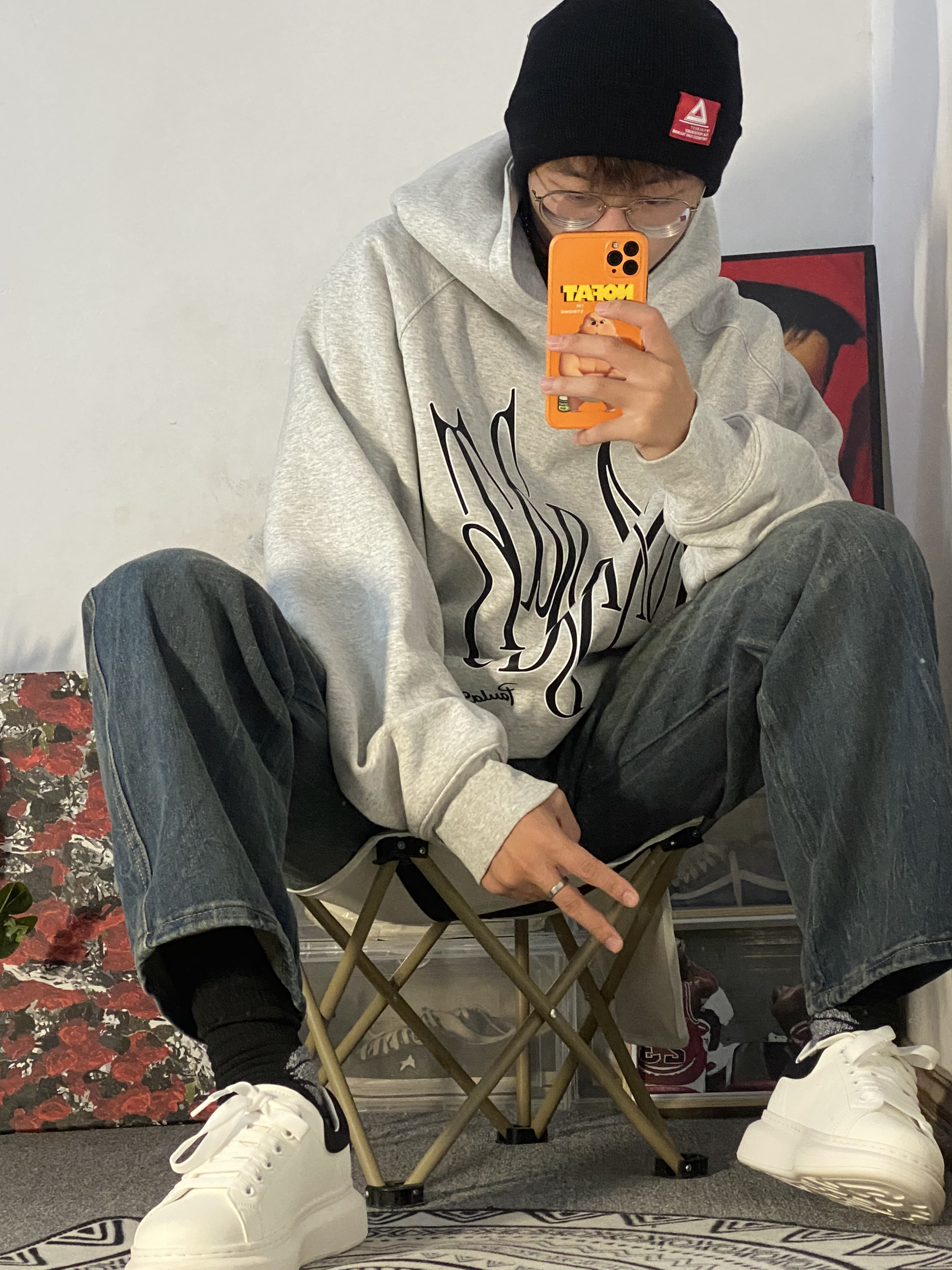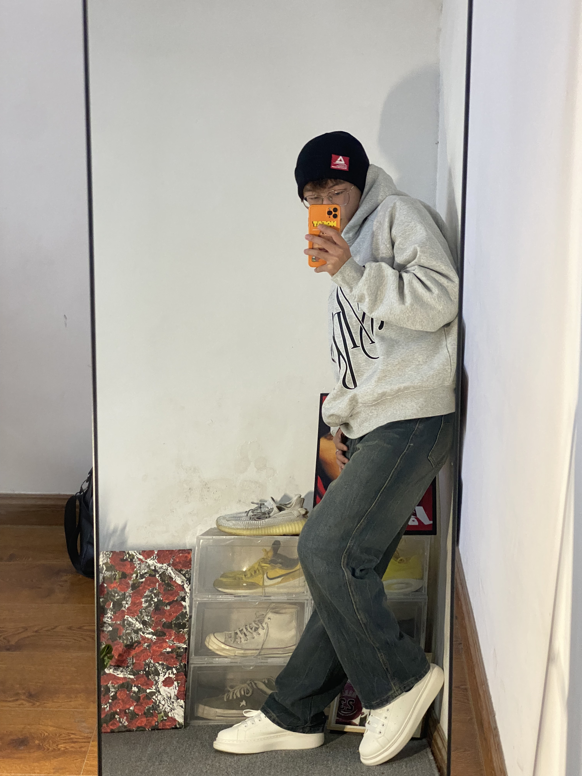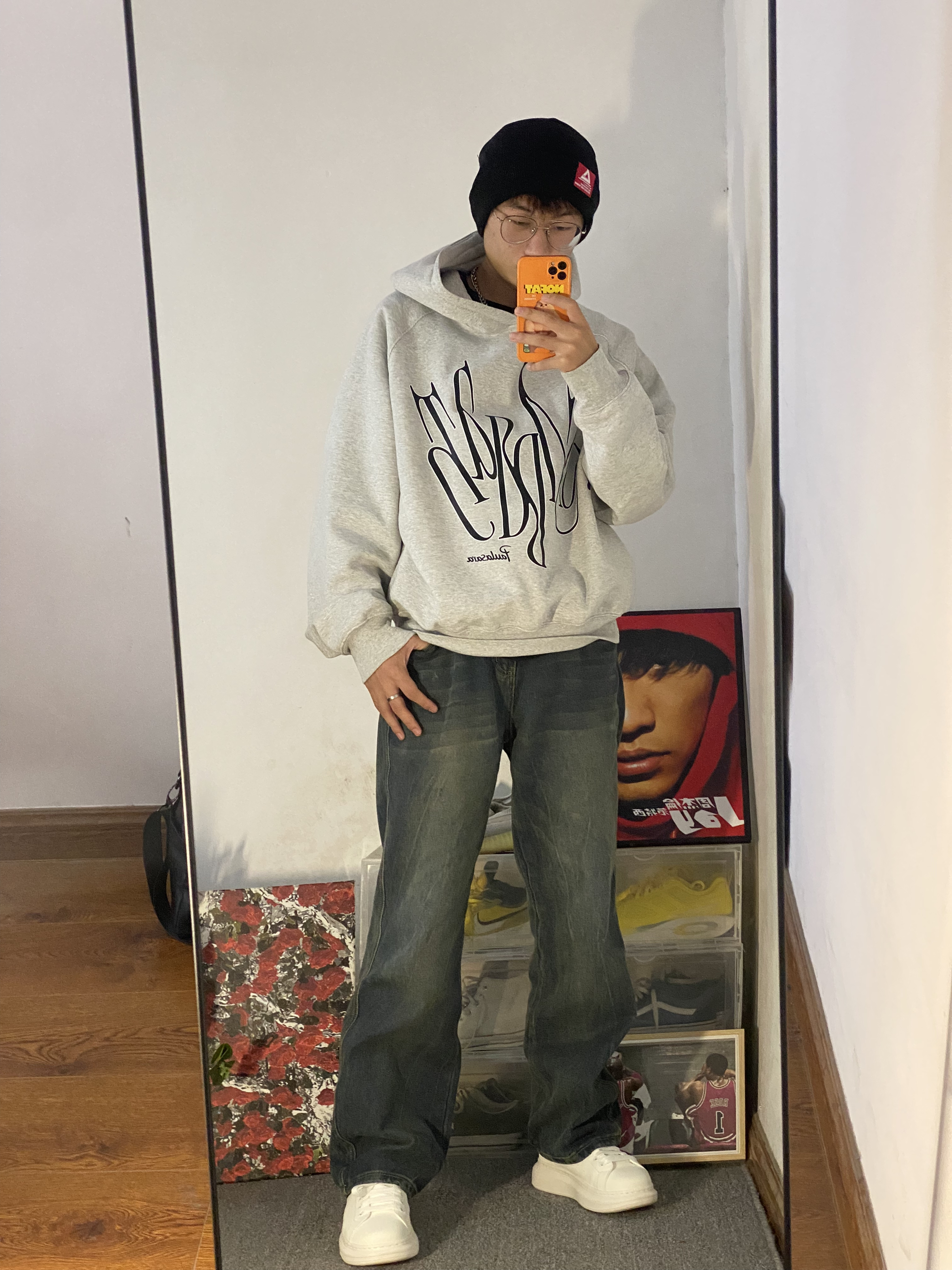 🔥冰美式穿搭分享 🧢天气降温真快 每到秋冬天我我都要带绒线帽 今天头上戴的是匹克logo车标绒线帽 保暖效果不错主要是好看显脸小 — 👔衣服是一件灰色美式大码卫衣 版型宽松 里面还可以穿可多件衣服 加了一层薄绒保暖效果不错的 — 👖裤子是一条宽松牛仔裤 修饰腿形的效果不错 裤子的颜色是我喜欢的类型 — 👟鞋子是一双侯明昊同款小白鞋 它的底非常的厚人踩上去比较软挺舒服的🔥 身高/体重:178/130...