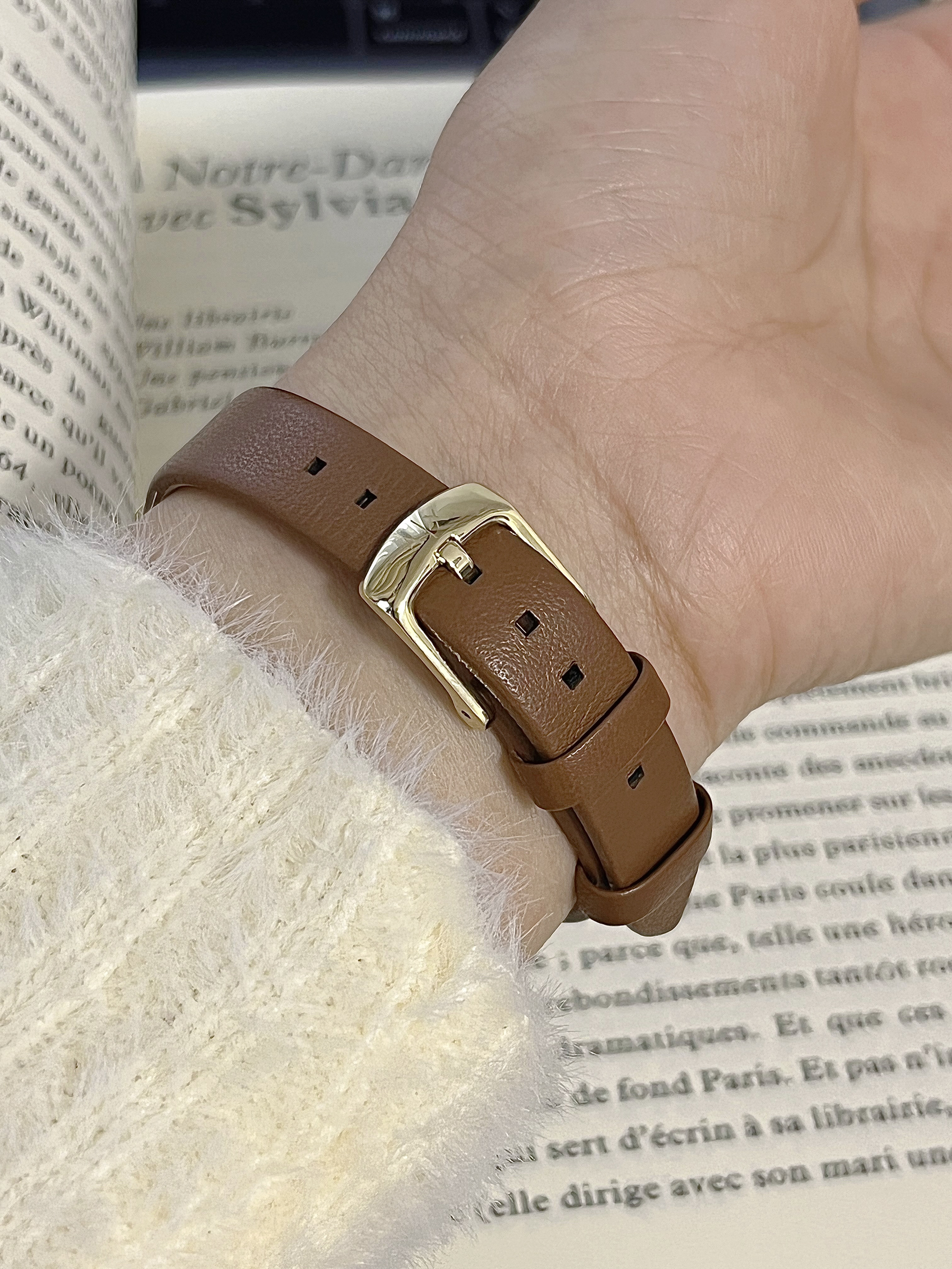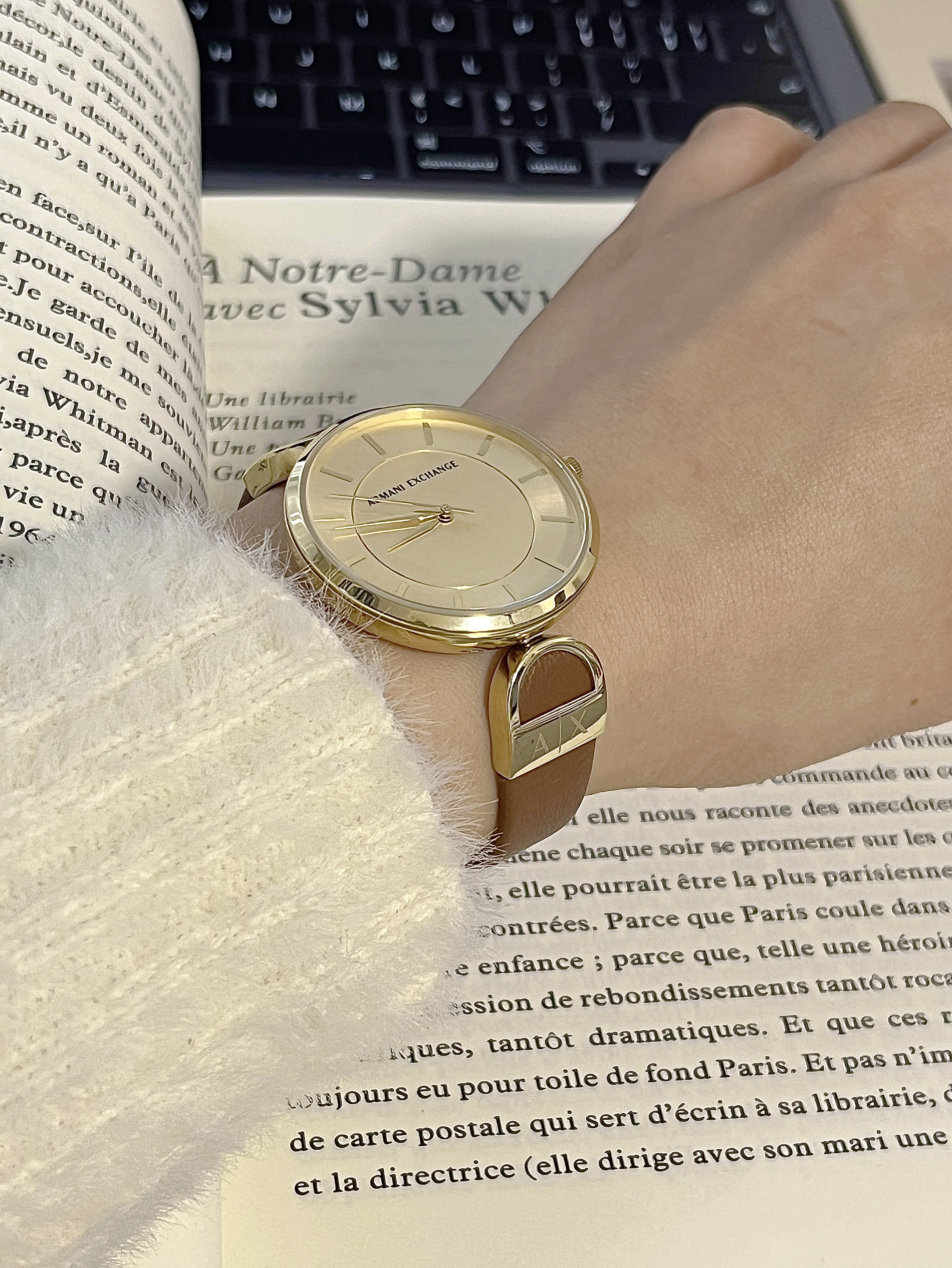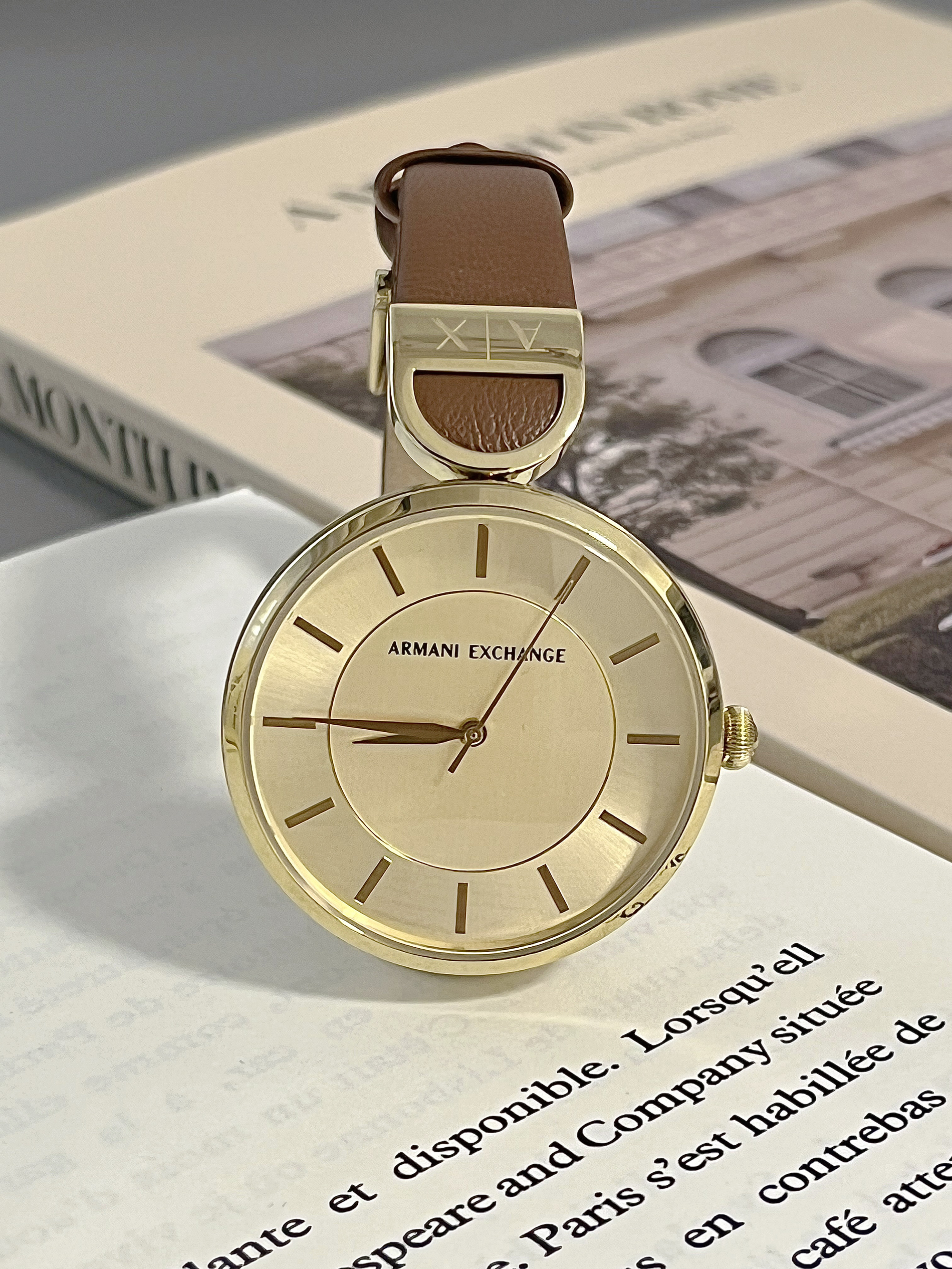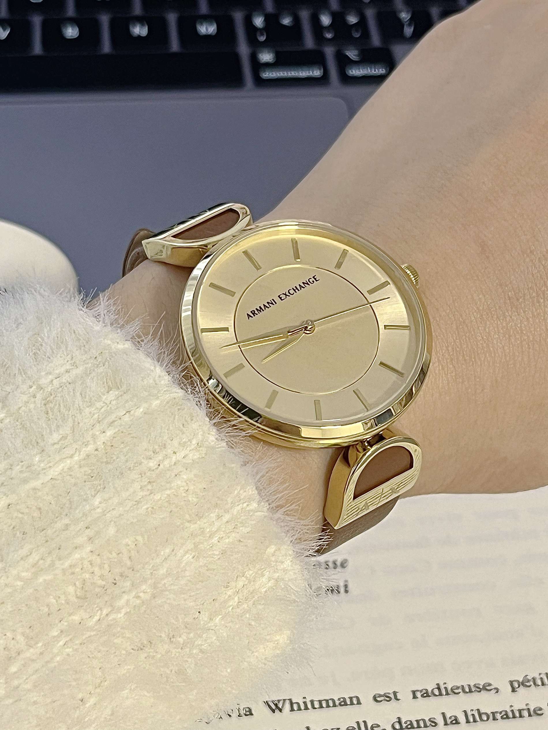 真羡慕某人有我这个闺蜜 也泰会挑礼物了💝 喜欢闺蜜喜欢这种简约ins风的风格 这个送的阿玛尼的手表我也选了一款ins风感的 表盘是金色的➕光滑玻璃镜面 真的很有质感耶✌🏻 红棕🍁色的皮质表带 就很显高级💎很时尚的感觉 戴上就像妥妥的职场女精英 日常搭配不同风格衣服都很nice~ 某人现在已经爱不离手啦开森🥳🎊