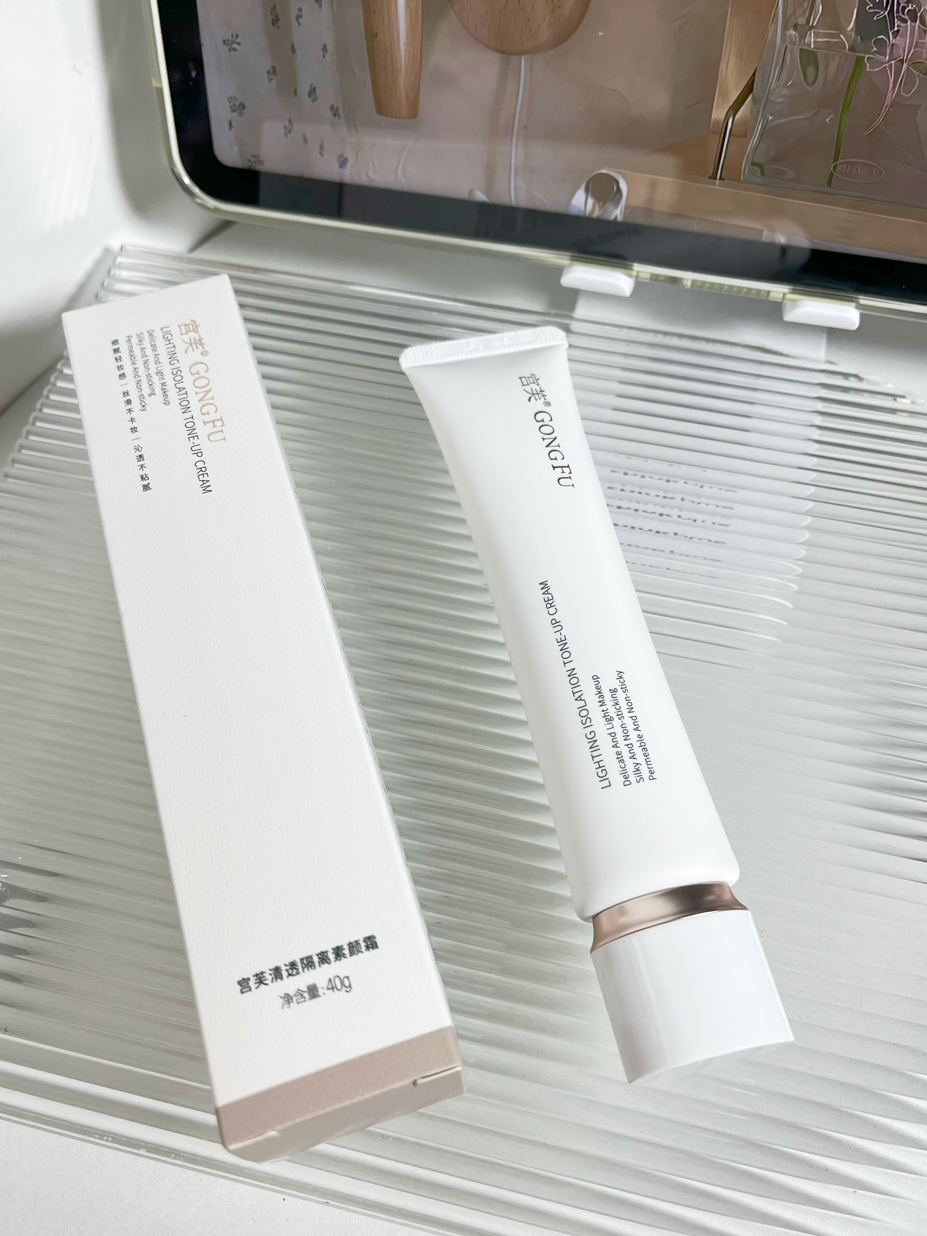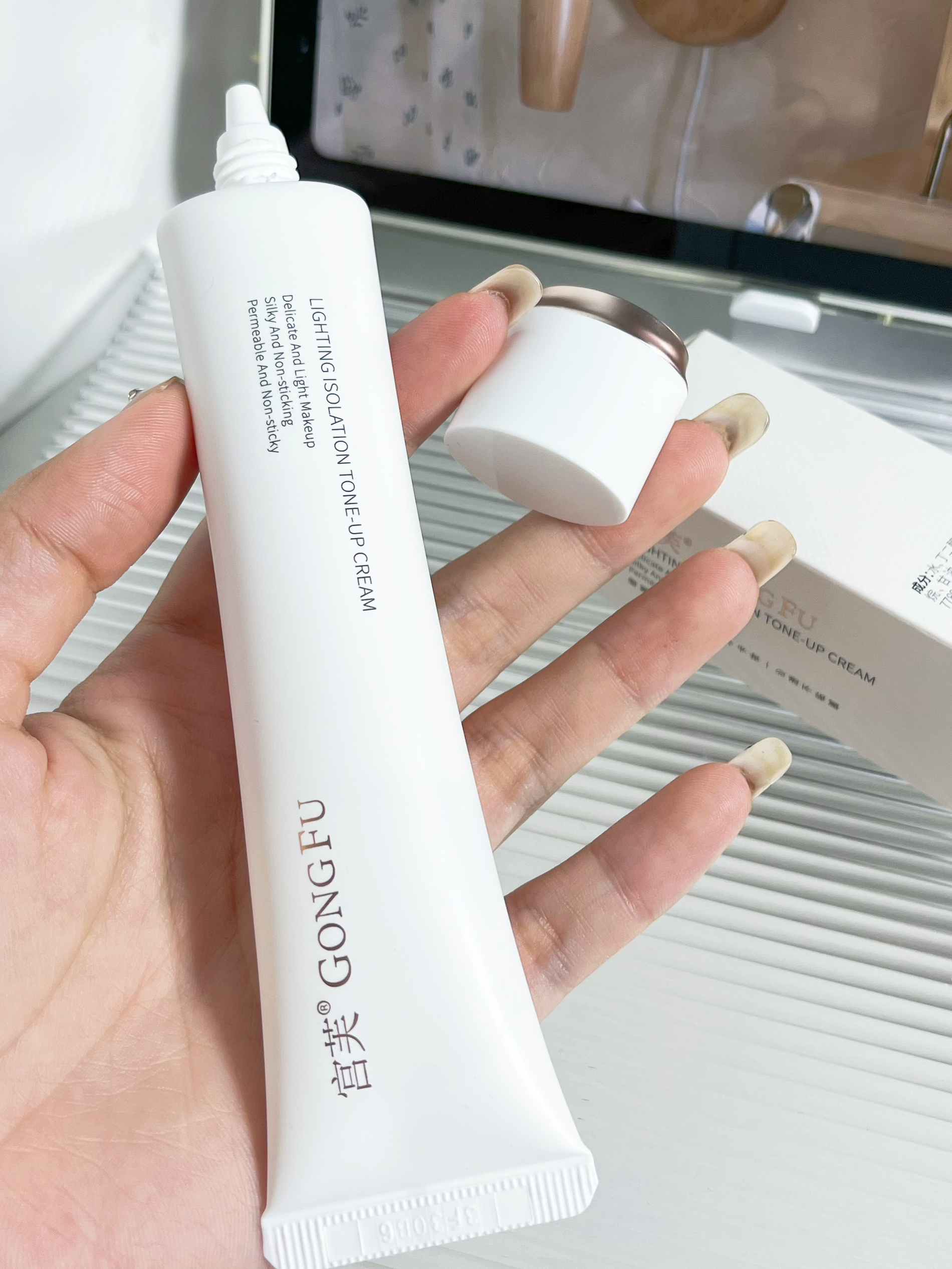 宫芙面部隔离素颜霜还蛮好用的诶😲 上次妹妹来我家玩,看我肤色不均匀给我推荐的 特别适合我这种早八着急出门来不及化妆的打工人🥹 柔润的奶霜质地,均匀的在脸上抹开,水润水润的,还是挺自然的,没有假白的现象 每天花个三五分钟涂一涂,就可以拥有一整天的好气色啦~✌🏻