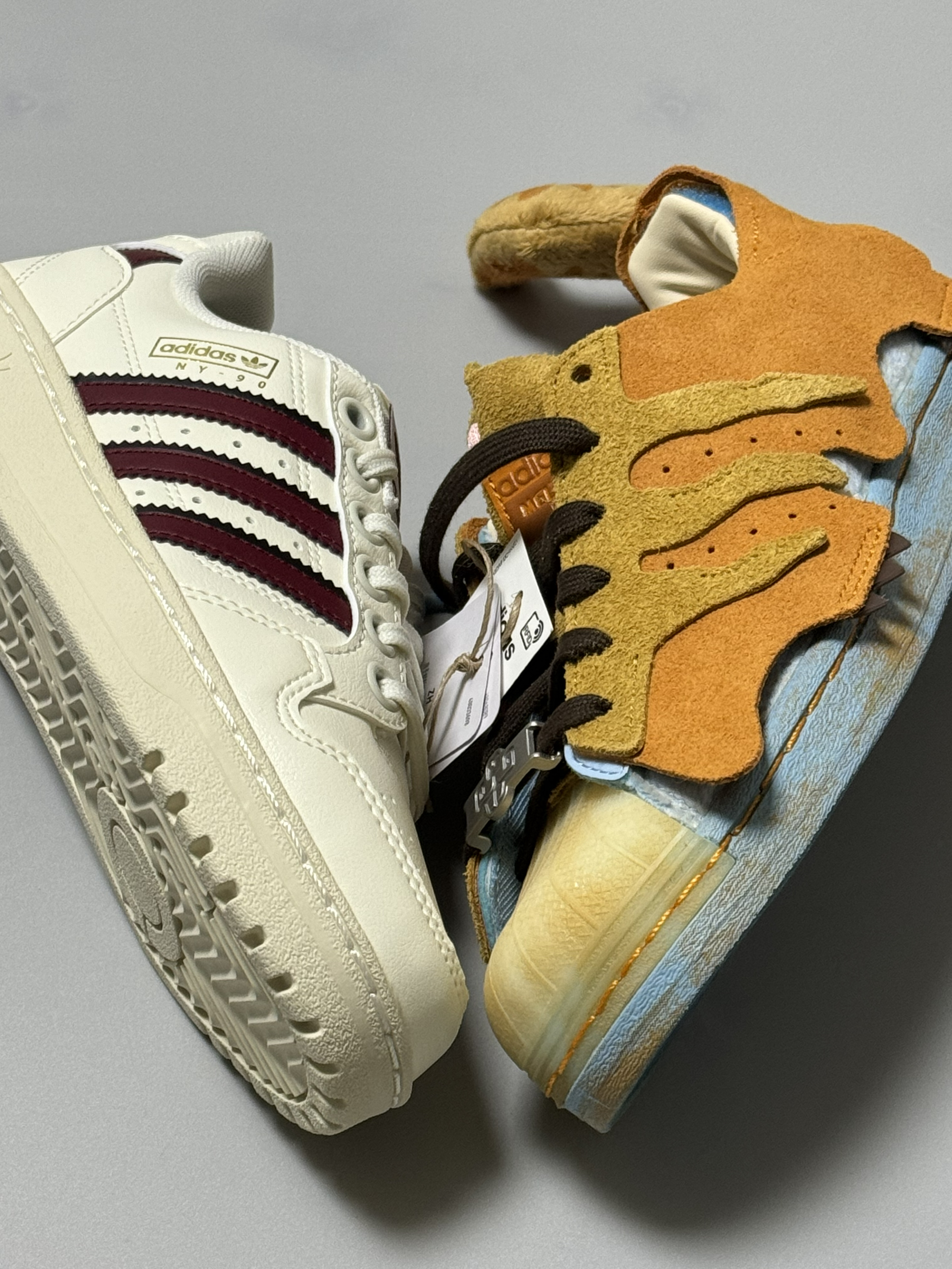 halo 阿迪来了,本期分享两双三叶草的潮流板鞋!分别是这双superstar的虎年限定和这双NY 90! 话不多说,我们先来看看这双虎年限定,鞋子将 KARORO 等形象特点融入 Superstar 鞋款,为了让更好的呼应虎头鞋灵感,体现节日氛围,在鞋身上“披上虎皮”——可拆卸虎纹覆面。无论是鞋面的三条条纹还是后跟处的“尾巴”装饰,都将 Melting Sadness 的趣味风格与 adidas...