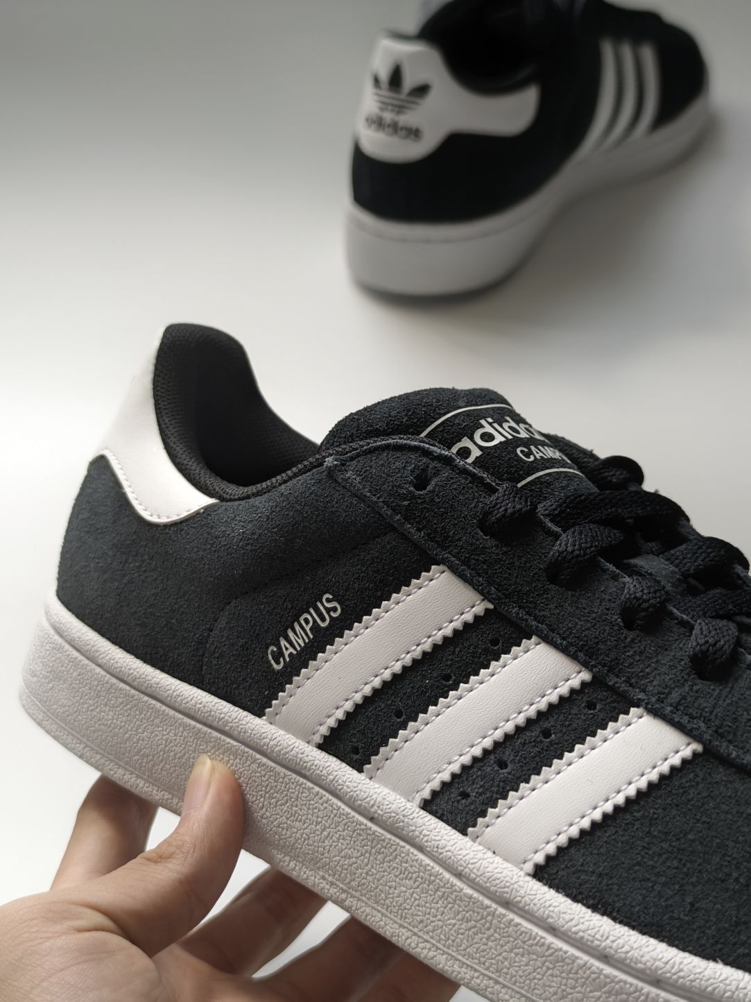 👟球鞋名称:阿迪达斯campus2.0 🔍分享理由: 感觉比一代有所提升太多了 颜值更帅一步。 黑白熊猫配色十分耐看, 橡胶大底防滑耐磨 整体厚度冬天很合适 🤔整体感受: 上脚舒适,搭配各种裤子也不易出错,挺不错的穿搭单品