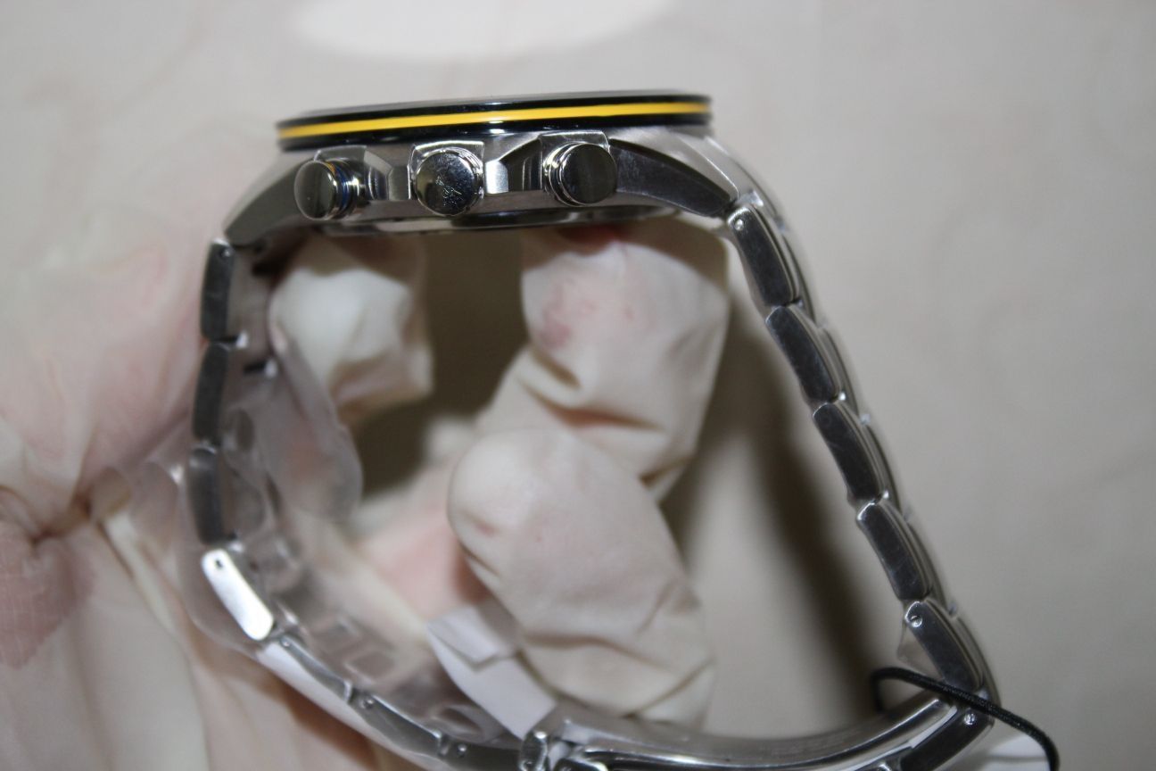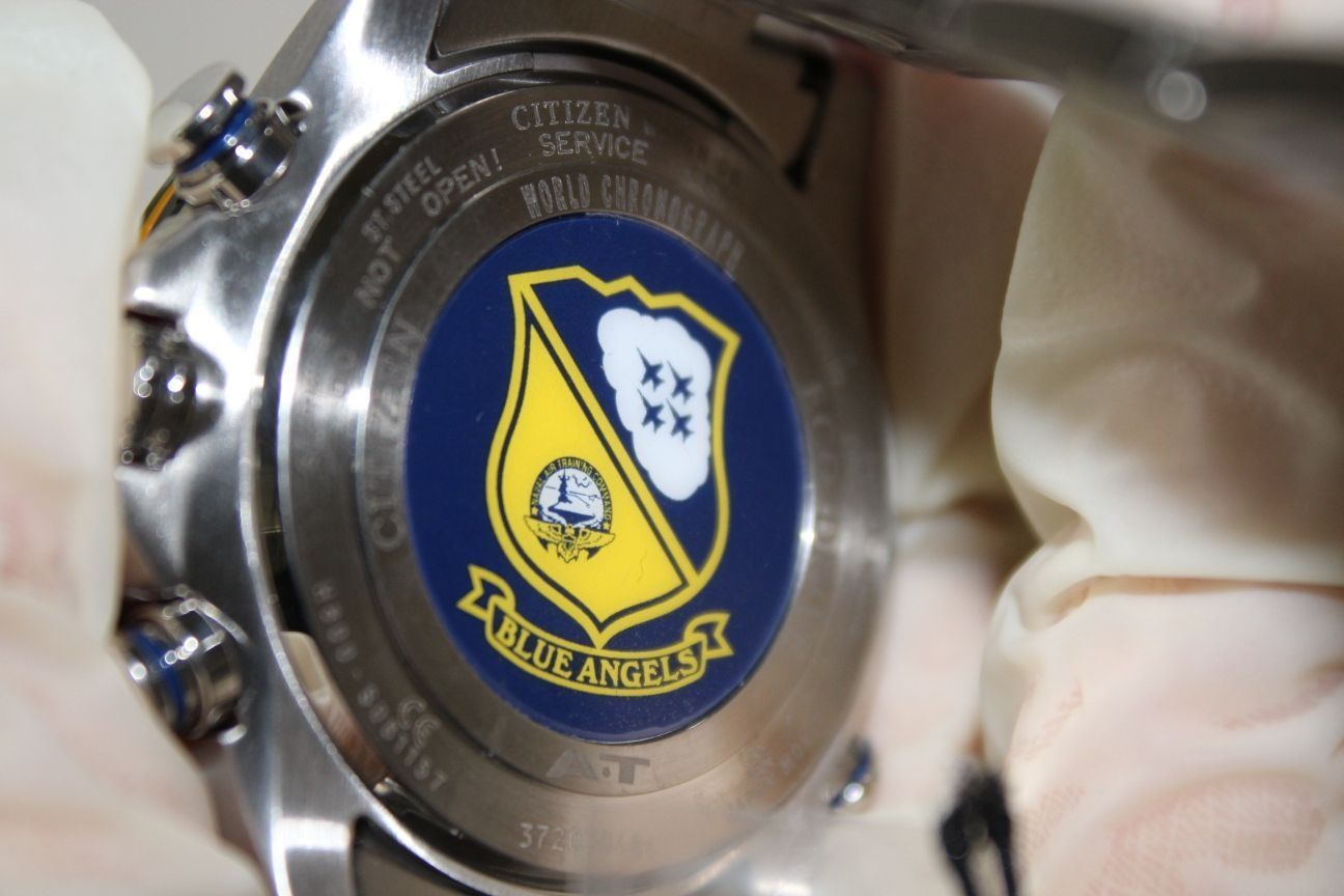 西铁城蓝天使表演队的联名,帅气的蓝表盘搭配黄色元素很吸睛,三眼表盘非常的运动风,表盘玻璃是人工合成的蓝宝石玻璃,大家都知道,,蓝宝石玻璃耐磨损,防划痕,表盘外圈是可以旋转的,可以进行一些乘除法的计算,表盘背后是蓝天使的徽章, 表径是43,表带是钛合金表带,这款手表是可以更换蓝色皮带的 该款光动能电波手表,简单理解,就是没有误差,只要有光就不需要调整日期和时间,续航180天,这里的光不止包括太阳光,...