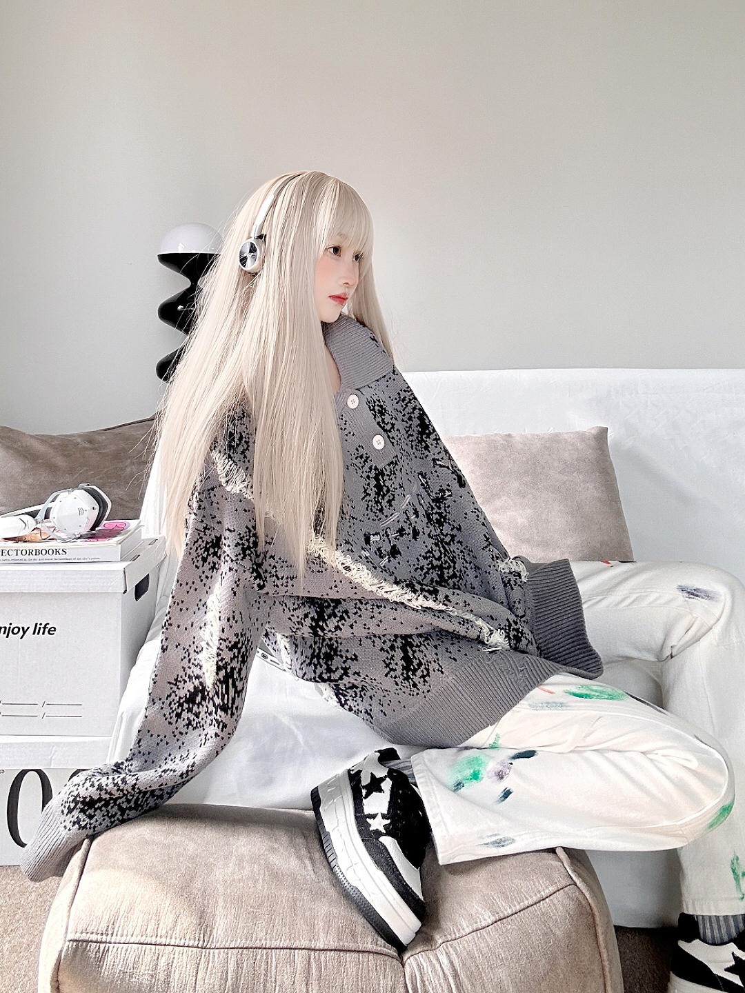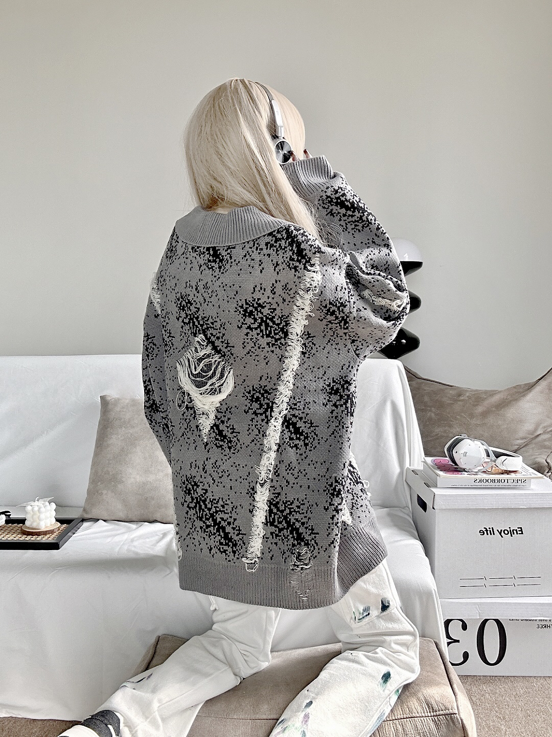 初秋真的少不了针织衫啊 这件polo领针织衫必须拥有姓名! 大v领的设计显得脖子细长细长的 面料柔软舒适 宽松的版型好藏肉 好显瘦 独特的细节设计和原创图案 敲与众不同的! 上身很慵懒的感觉~~ 质感好 穿着舒适还能提升整体品质感~~!! 没有一件Polo针织衫的姐妹们可以入手啦