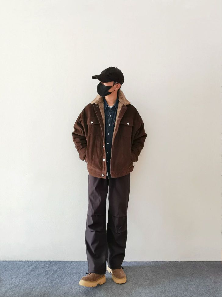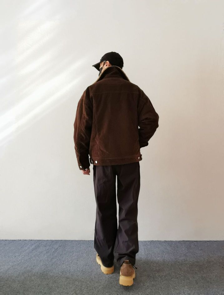 📝今天来套冬季氛围感的美拉德穿搭🍁 📝上衣选择加绒加厚的灯芯绒棉服外套, 加入了羊羔毛的内里不仅保暖性好,还有了冬季氛围感的复古味道🌞 小翻领,斜插兜的短款设计,上身利落不臃肿。宽松的版型就很适合叠穿。白T打底,深蓝牛仔衬衫呼应工装风的外套🚶 📝下身搭配宽松的工装裤,微弹的材质加上防水的机能面料,延伸工装风的硬朗感。来双呼应外套颜色的马丁靴,这冬季的美拉德氛围感不就来了吗🤗 👔 上衣:bodyd...