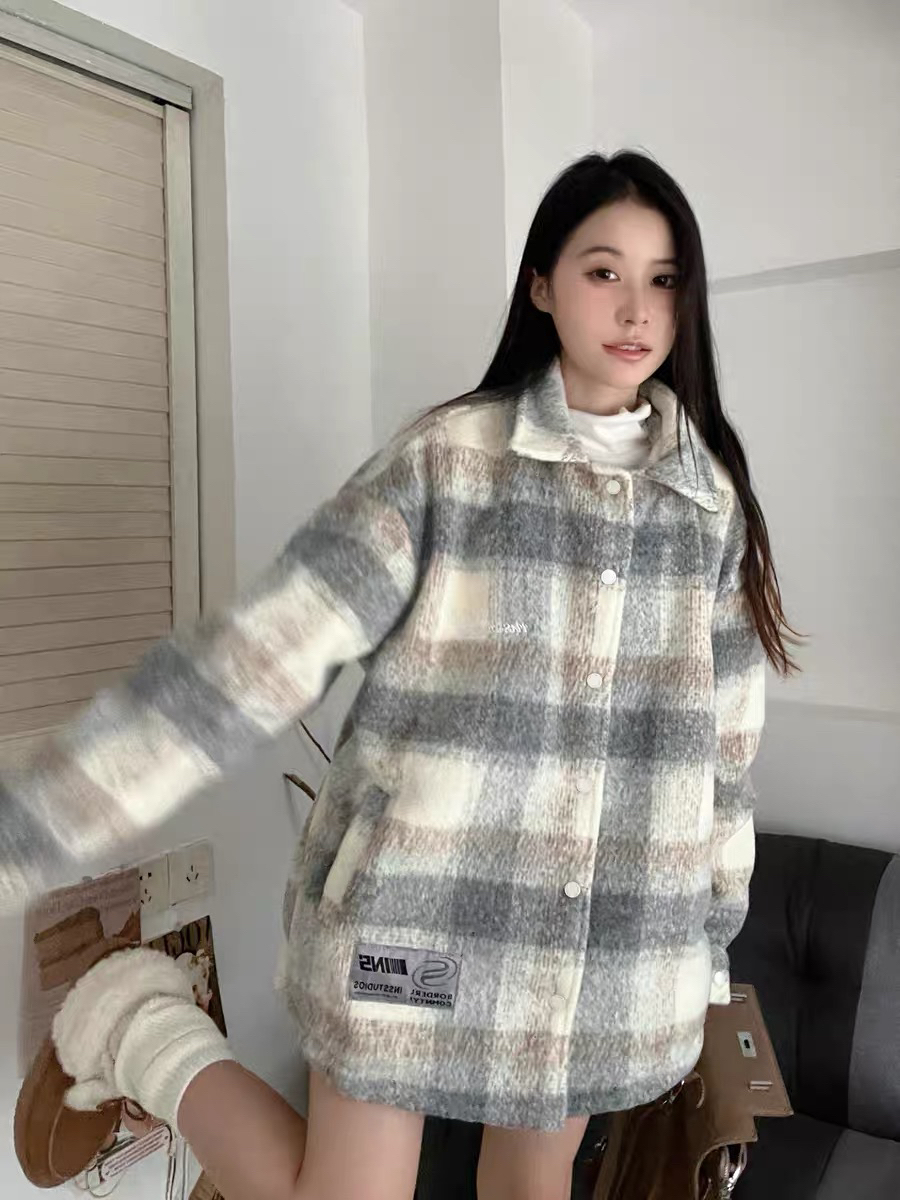 🎉本小个子的日常通勤穿搭首选保暖和舒适 衬衫款式的格子毛呢外套比一边呢子外套更有休闲感 📧配上灰色连帽毛衣和宽松牛仔裤 很有韩系慵懒感 蓝白色系清新显白 又有温暖感 🎁男女都可穿 可情侣搭配 适合喜欢宽松搭配的