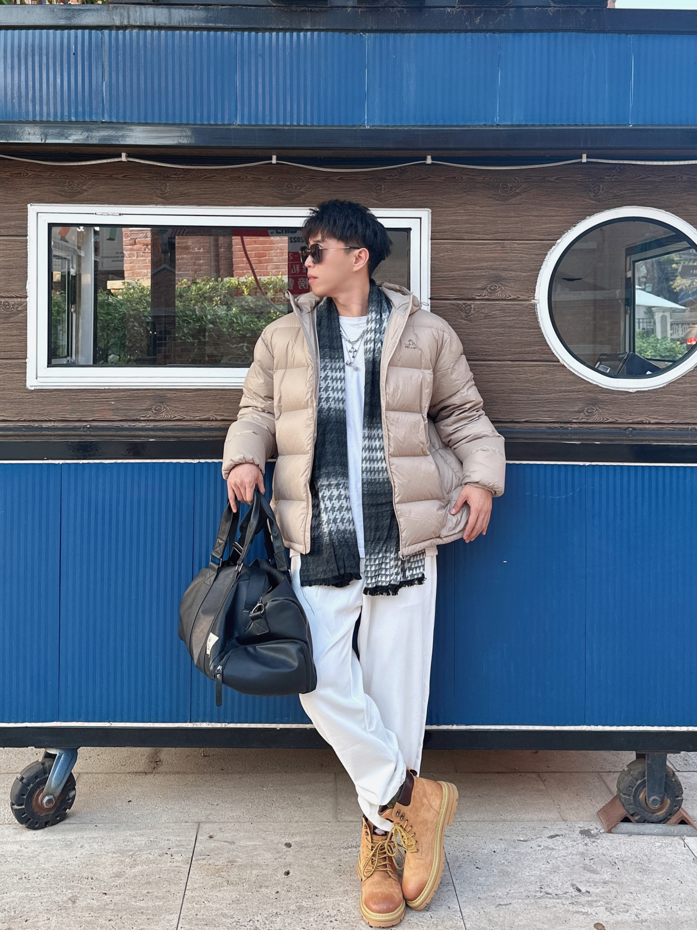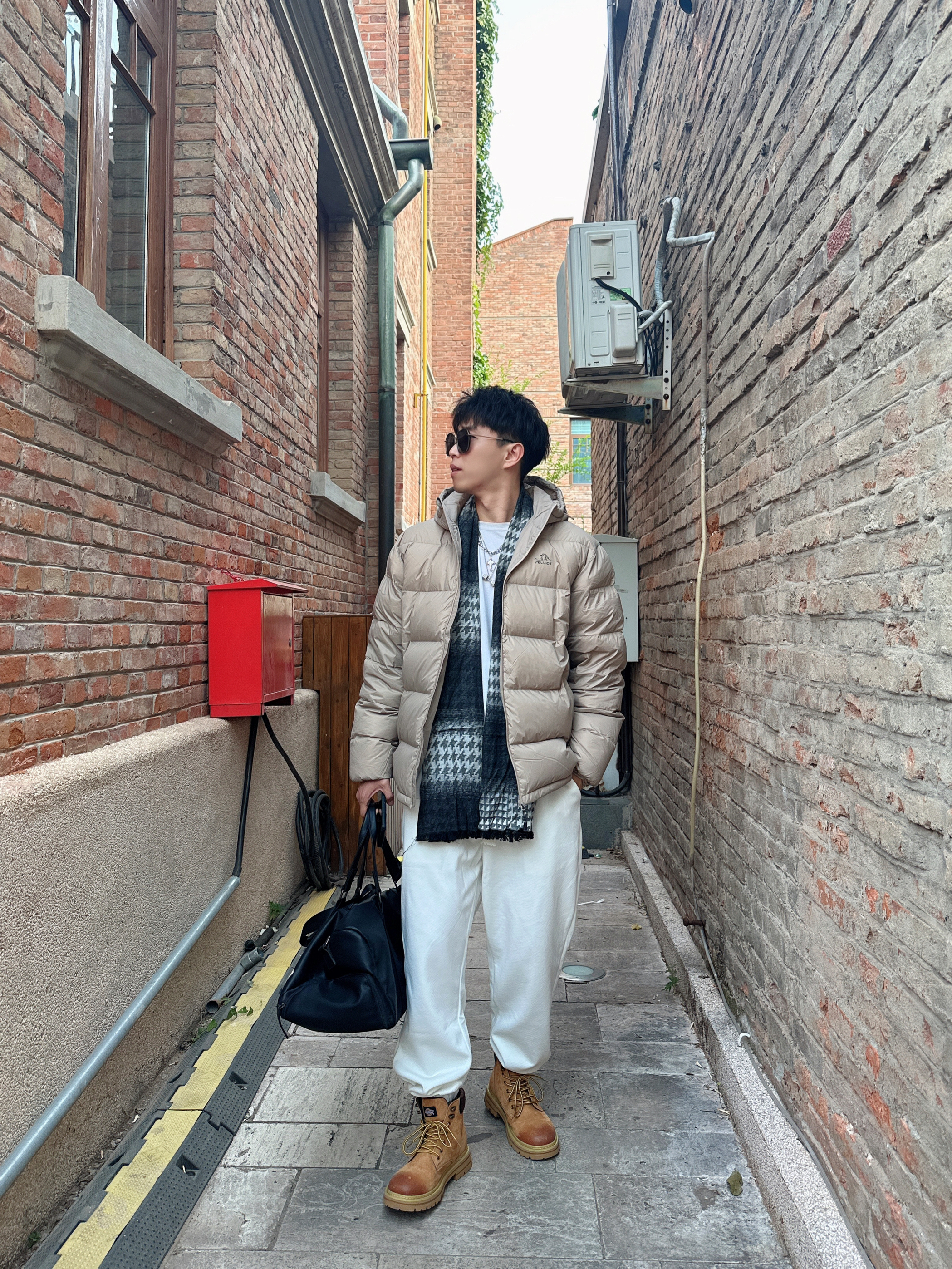 日常缓解压力的方式莫过于去户外走走了(方便还省钱😜) 吃点小吃 看看景色 享受快乐,好心情升3度✔️ — 低饱和度还是很适合冬天的❄️色系好搭不挑人 卡其色羽绒服,高蓬松度➕高密面料,虽然是轻量型 但保暖度丝毫不逊色,很适合冬季户外活动穿着,舒适不臃肿 搭配户外必备大黄靴,裤装选择白色休闲裤或卫裤做过度,再来一条围巾做氛围感点缀,整套保暖性强且实用度高,冬季也不显沉闷 — 👔:伯希和/PEL...