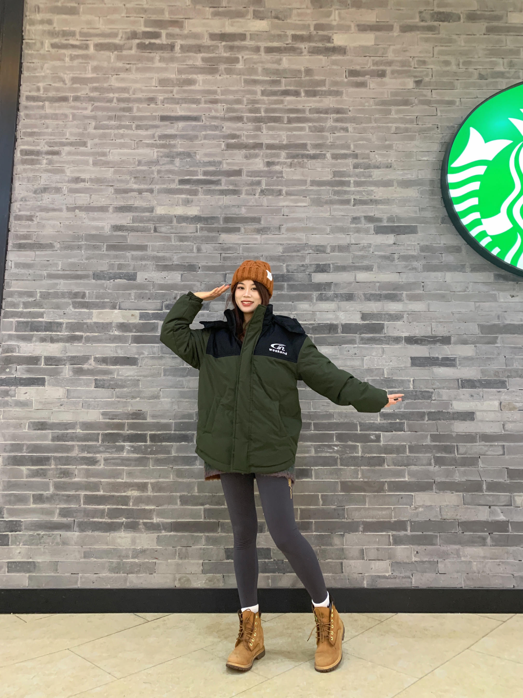 156/40 嗨喽嗨喽!这里是爱穿搭的亦小木吖~ 最近夜间气温最低已经降到零下🥶 御寒的压力给到羽绒服这边 🧥今天推荐这款LA'T weekend 家的拼色羽绒服 版型略宽松,内里加90鸭绒超保暖 这么冷的天气出门也能给我十足的安全感 帽子可以拆卸,满足多种需求😌 防风防水的面料下雪天也不怕~ 上身尺码s 👒搭配一顶棕色🏾系的毛线帽 与这双 Timberland 马丁靴的颜色相呼应 超级适合秋冬...