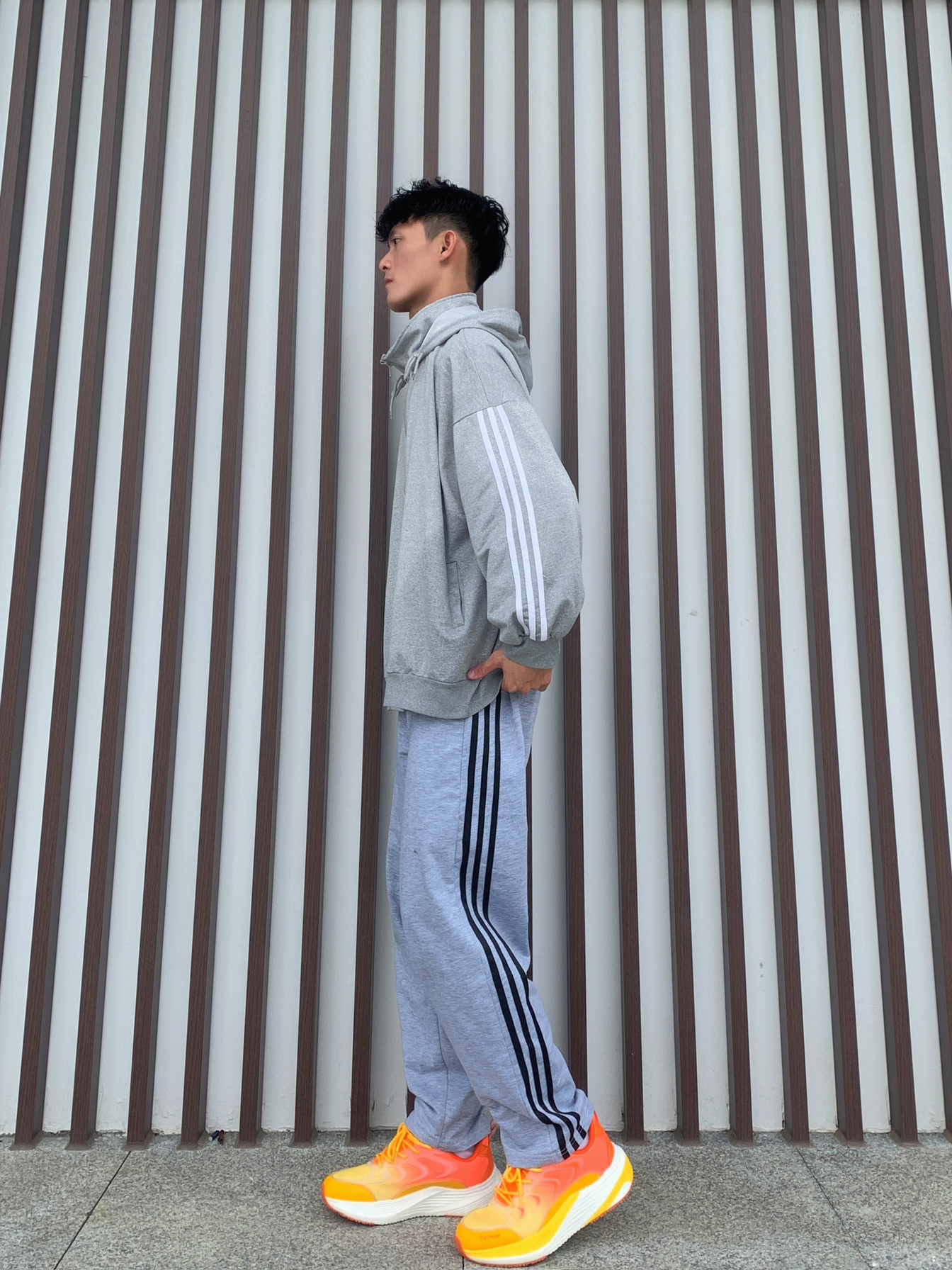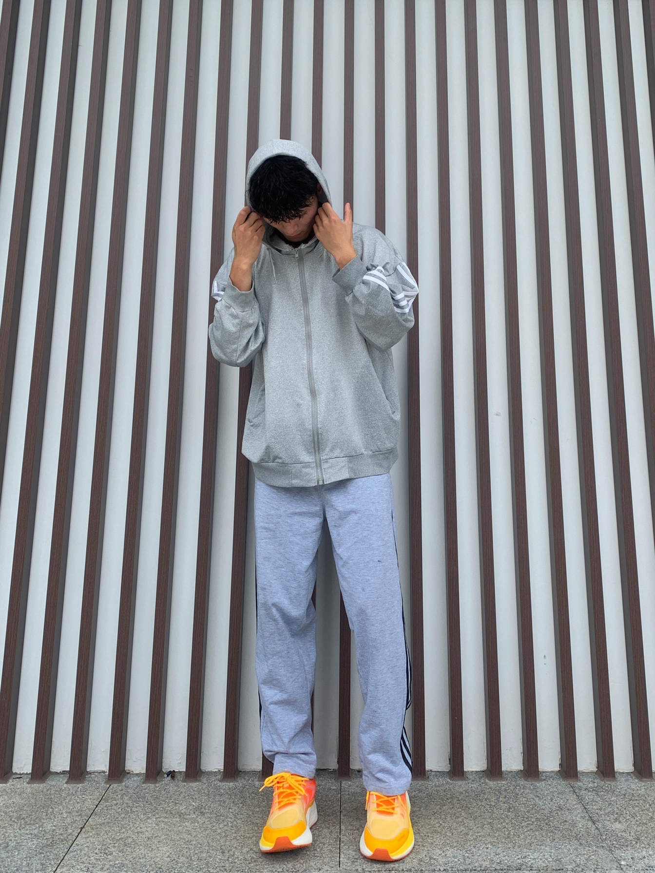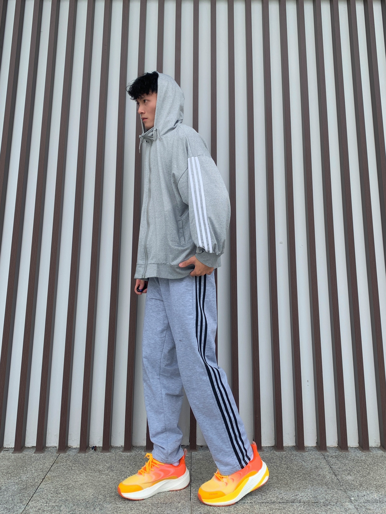 🏃🏻秋冬出门运动,肯定要得穿的运动慵懒风啦💪🏻 💁🏽♂️身高170|180 体重55|60接可驾驭🫵🏻 📸灰色日系慵懒运动风连帽卫衣➕浅灰色Logo印花纯色针织加绒休闲裤➕爱玛橙运动训练跑鞋✅ — — — — — — — — — — — — — — — — — — 1️⃣👔 🧩仓石一树的春秋灰色日系慵懒运动风连帽卫衣,开衫宽松休闲风格,即使非常简约可真的很舒适百搭,面料舒适柔软有弹性,日常运动...